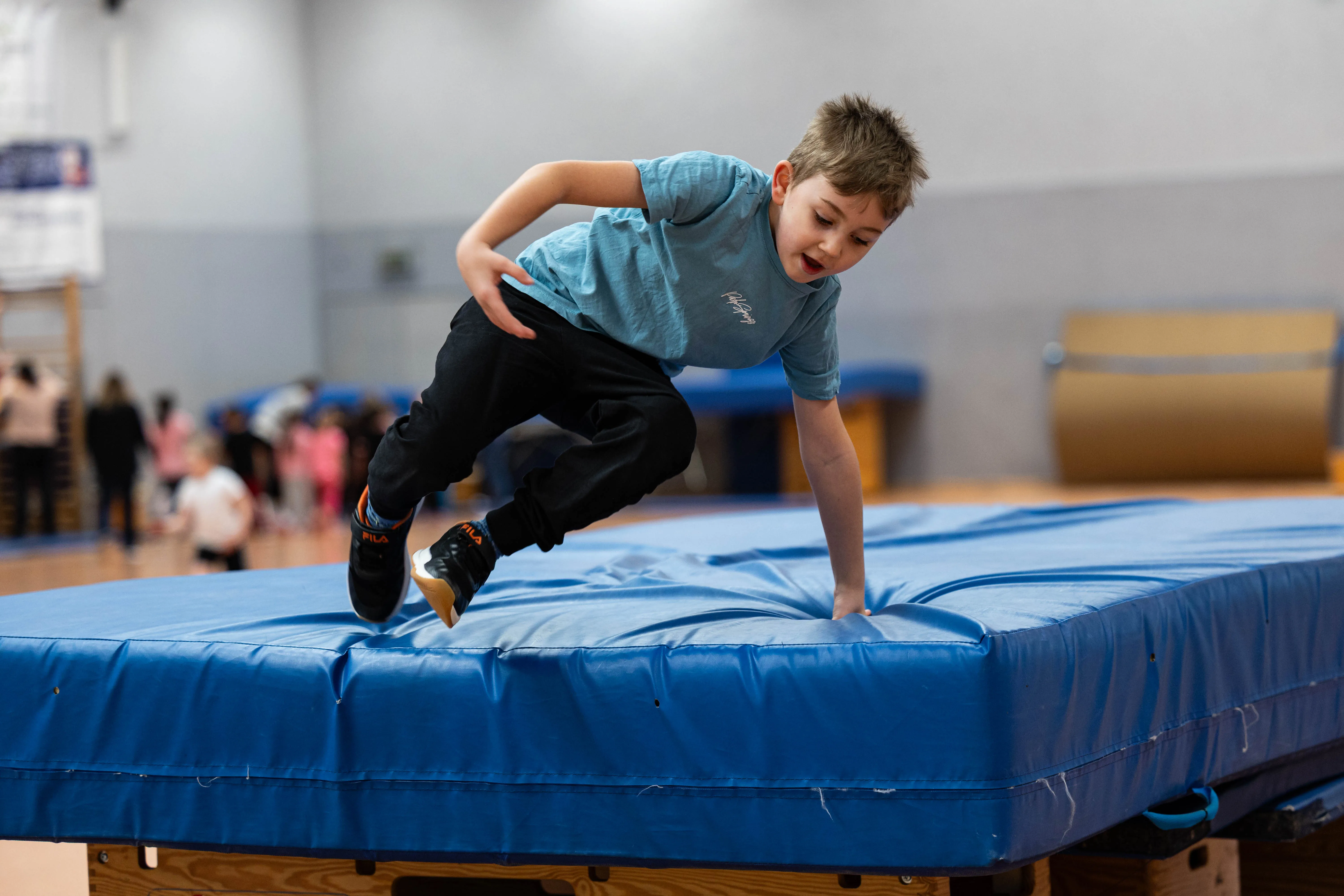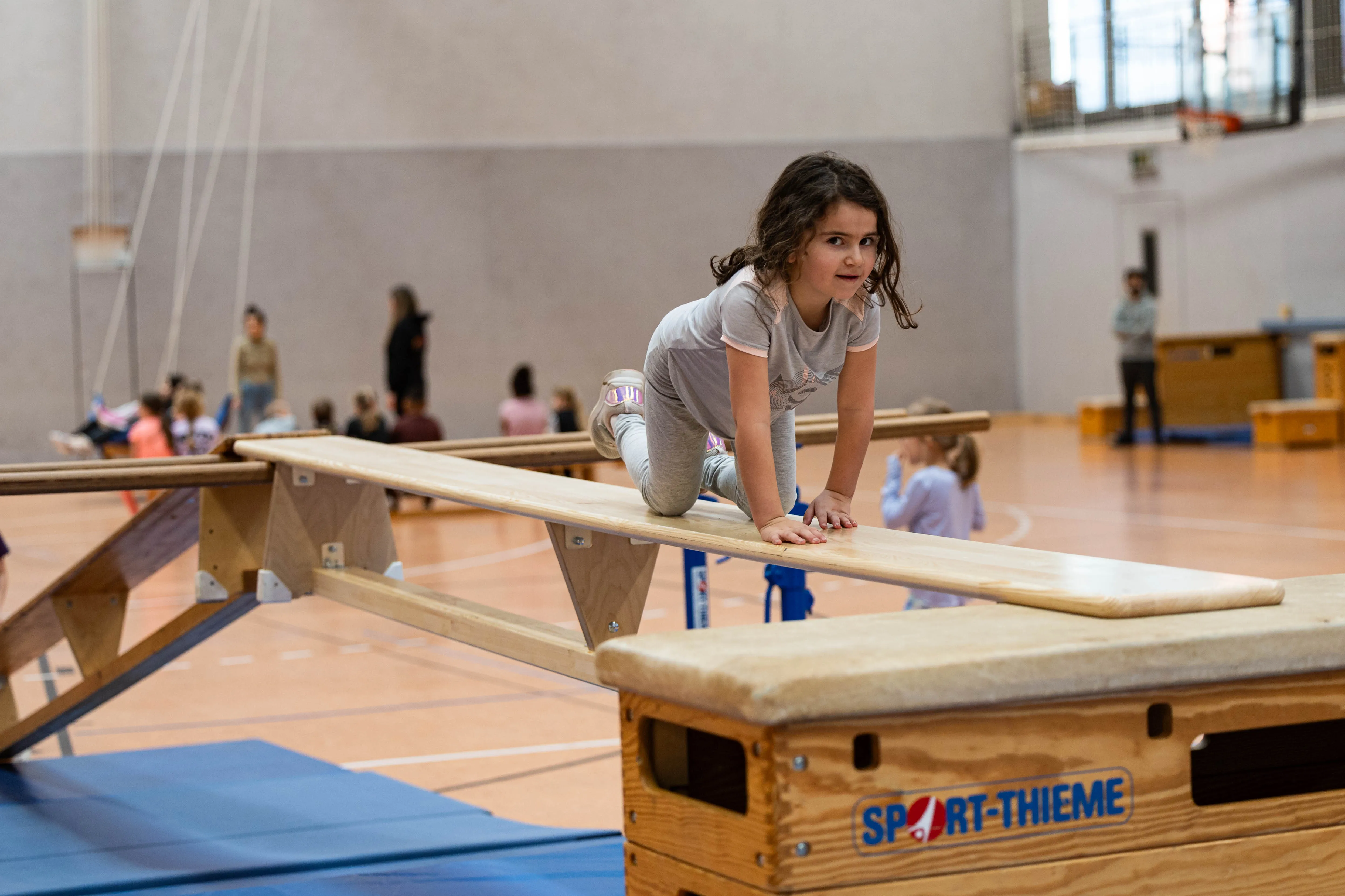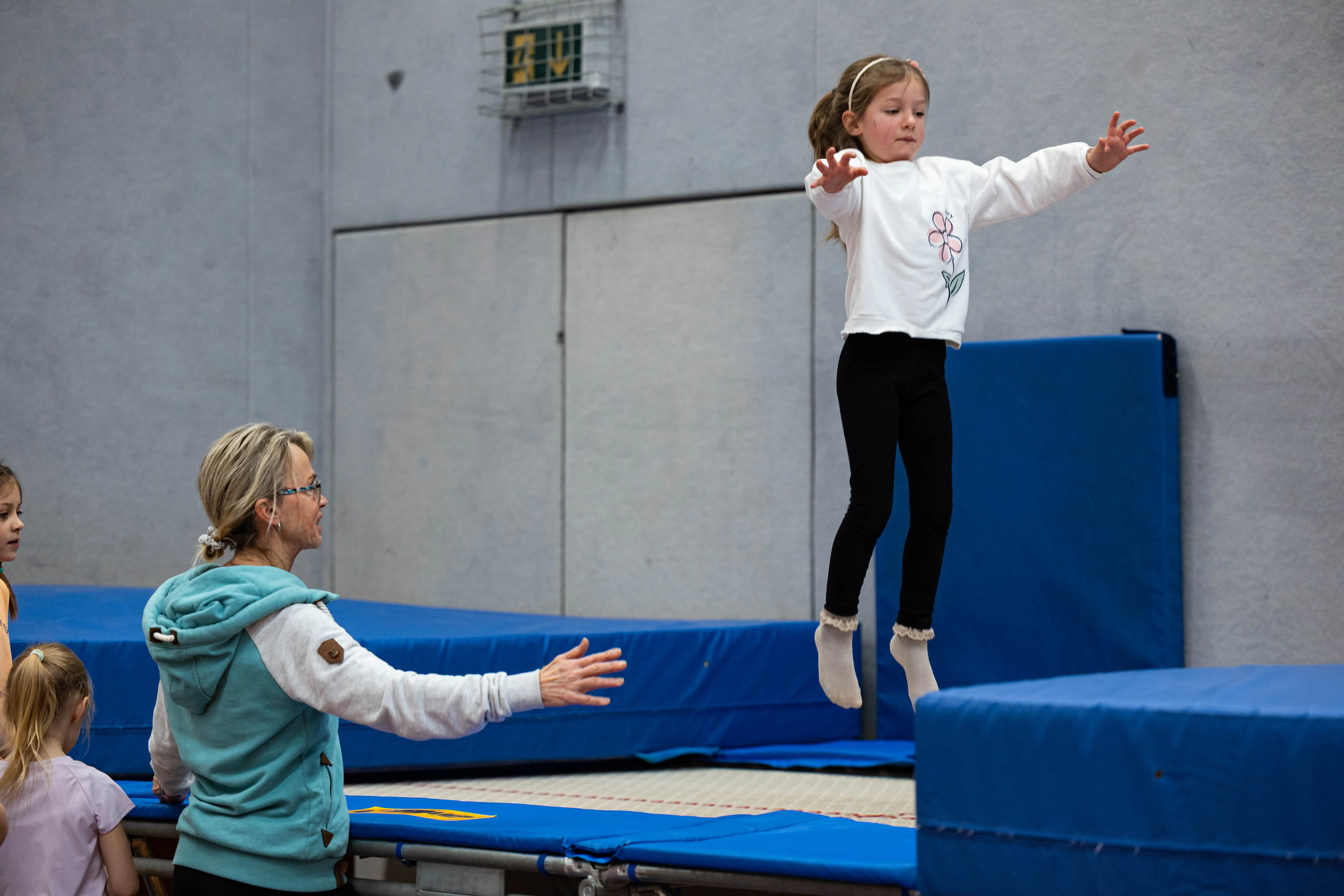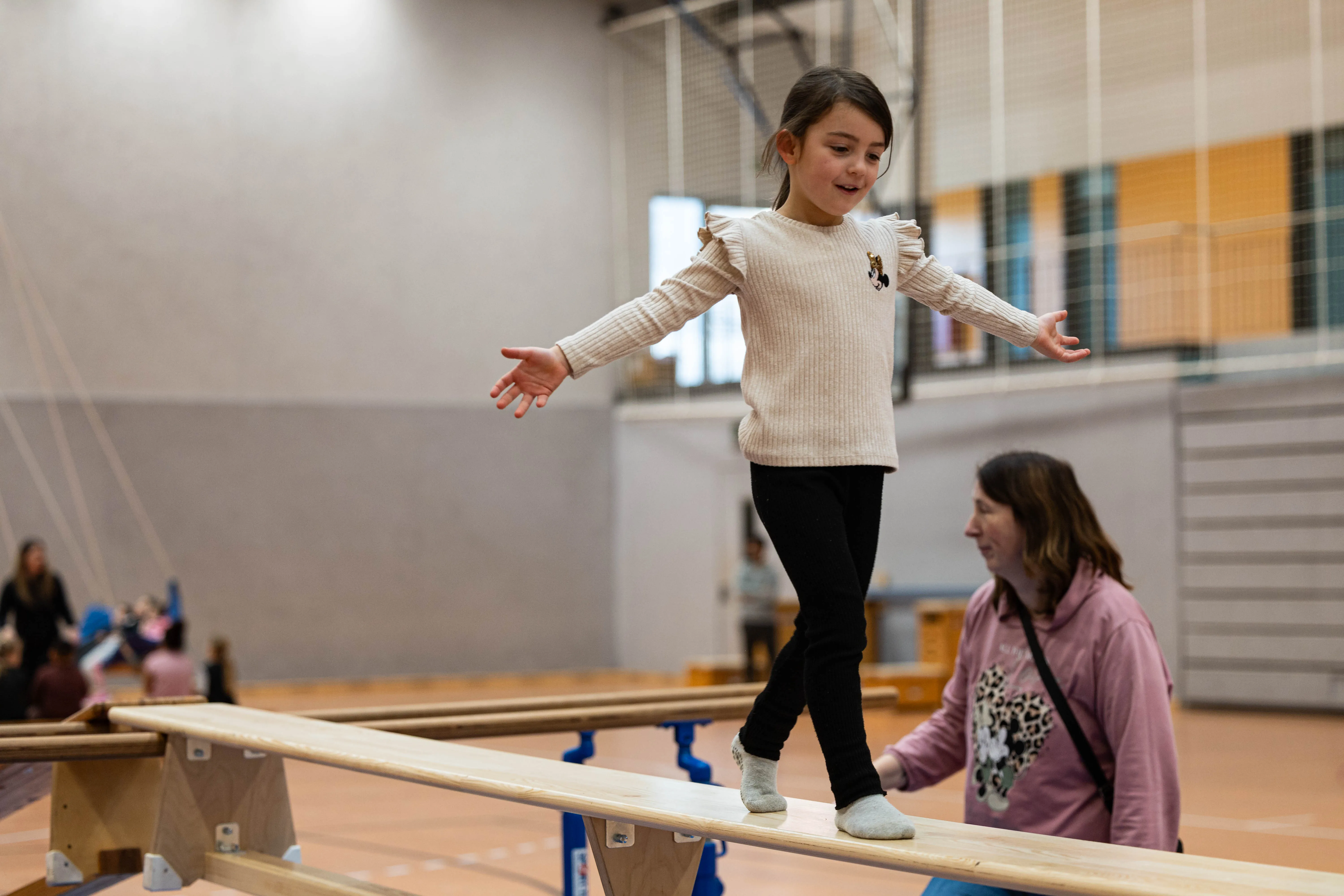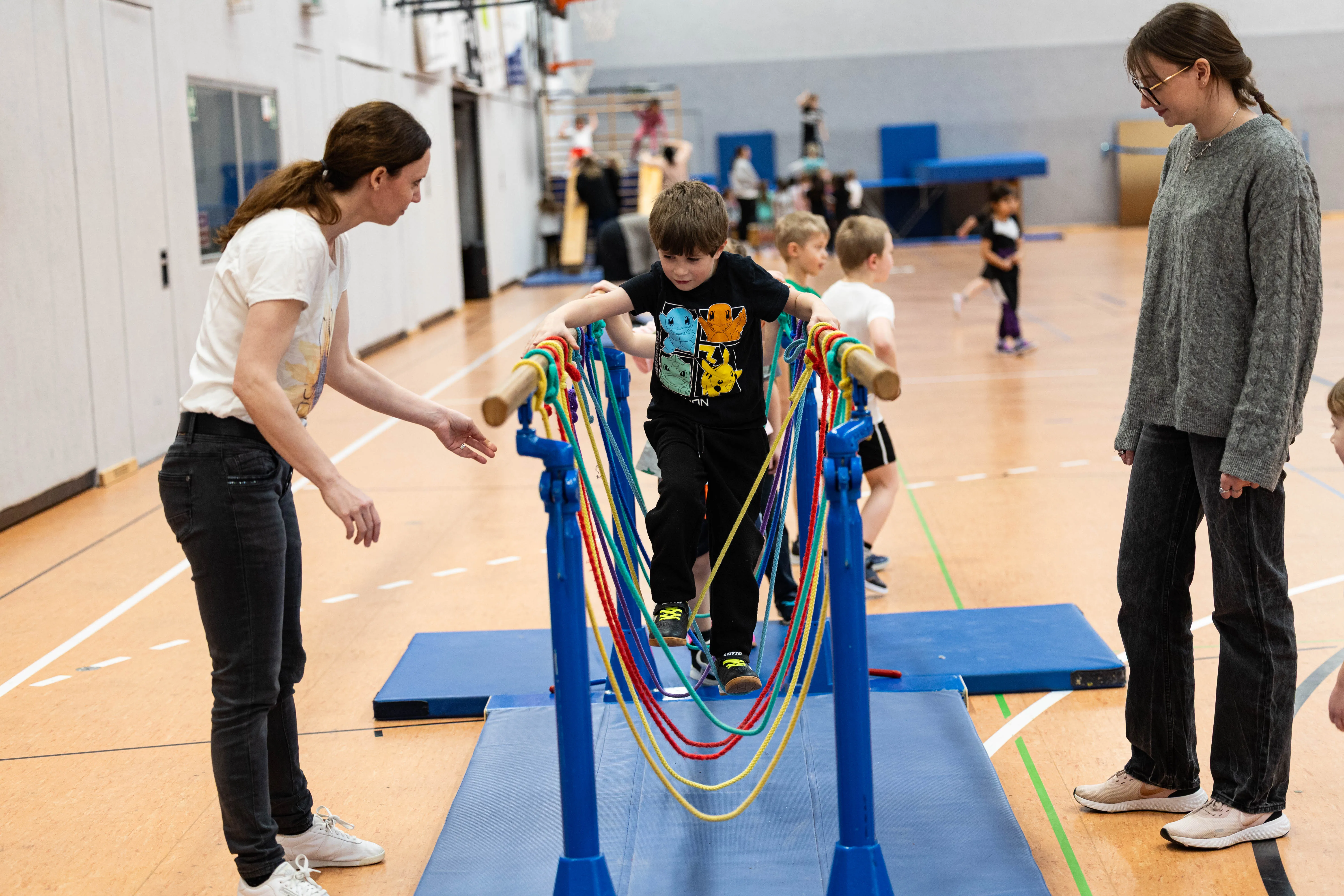 Denn neben den künftigen "i-Dötzchen" waren auch die jetzigen Erst- und Zweitklässler eingeladen, am Wintersportfest teilzunehmen. So füllte sich die Sporthalle Felderhof schnell mit zahlreichen Kindern, die am Sprossenwandklettern, an den Balancier-Inseln oder dem Trampolinsprung teilnehmen wollten. Dabei konnten sie sich frei in der Halle bewegen und selbst entscheiden, welche Station sie machen wollten. Sportlehrerin Silke Wiegräbe erklärte lachend: "Die Kinder können auch zehnmal hintereinander zur gleichen Station, wenn sie das möchten."