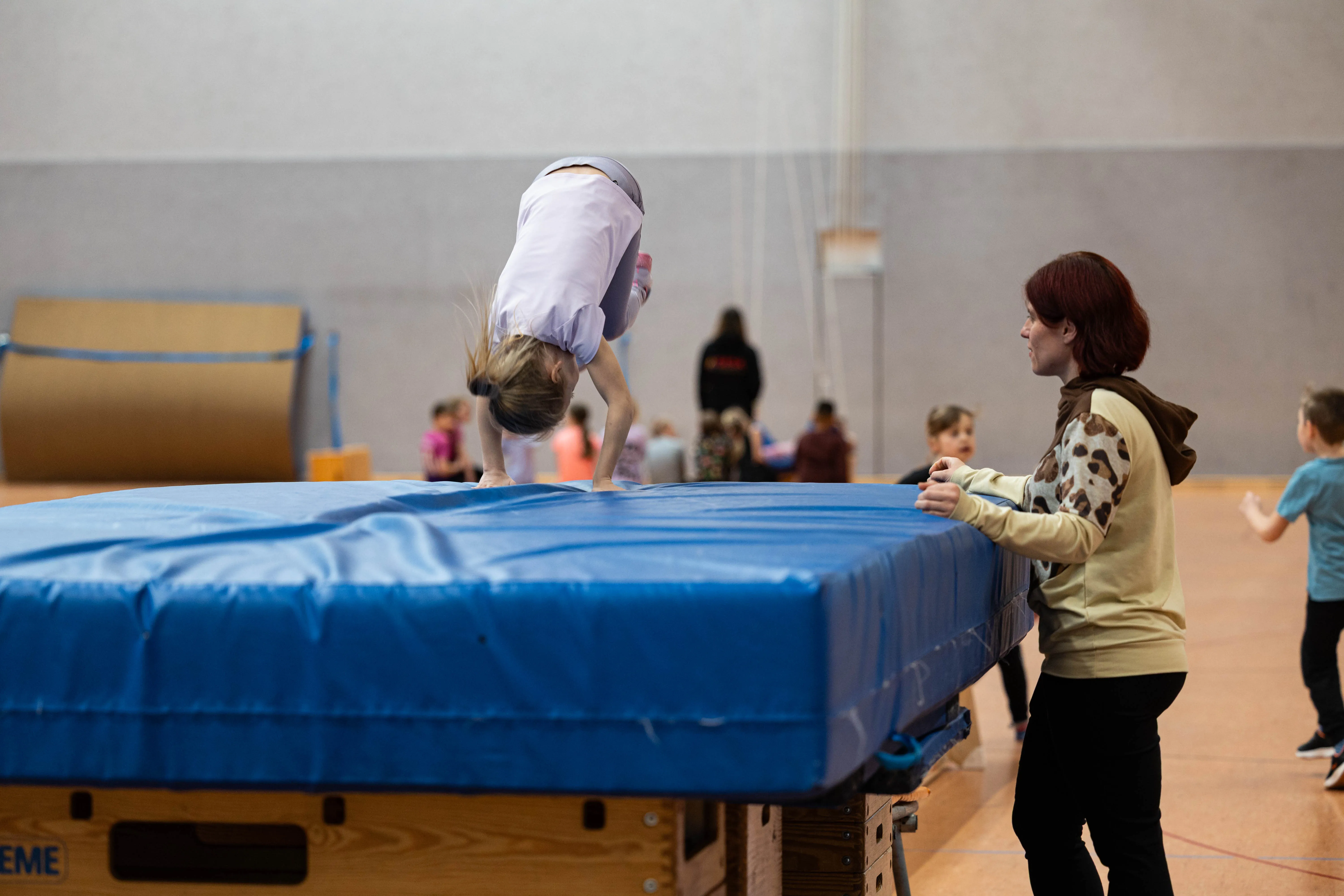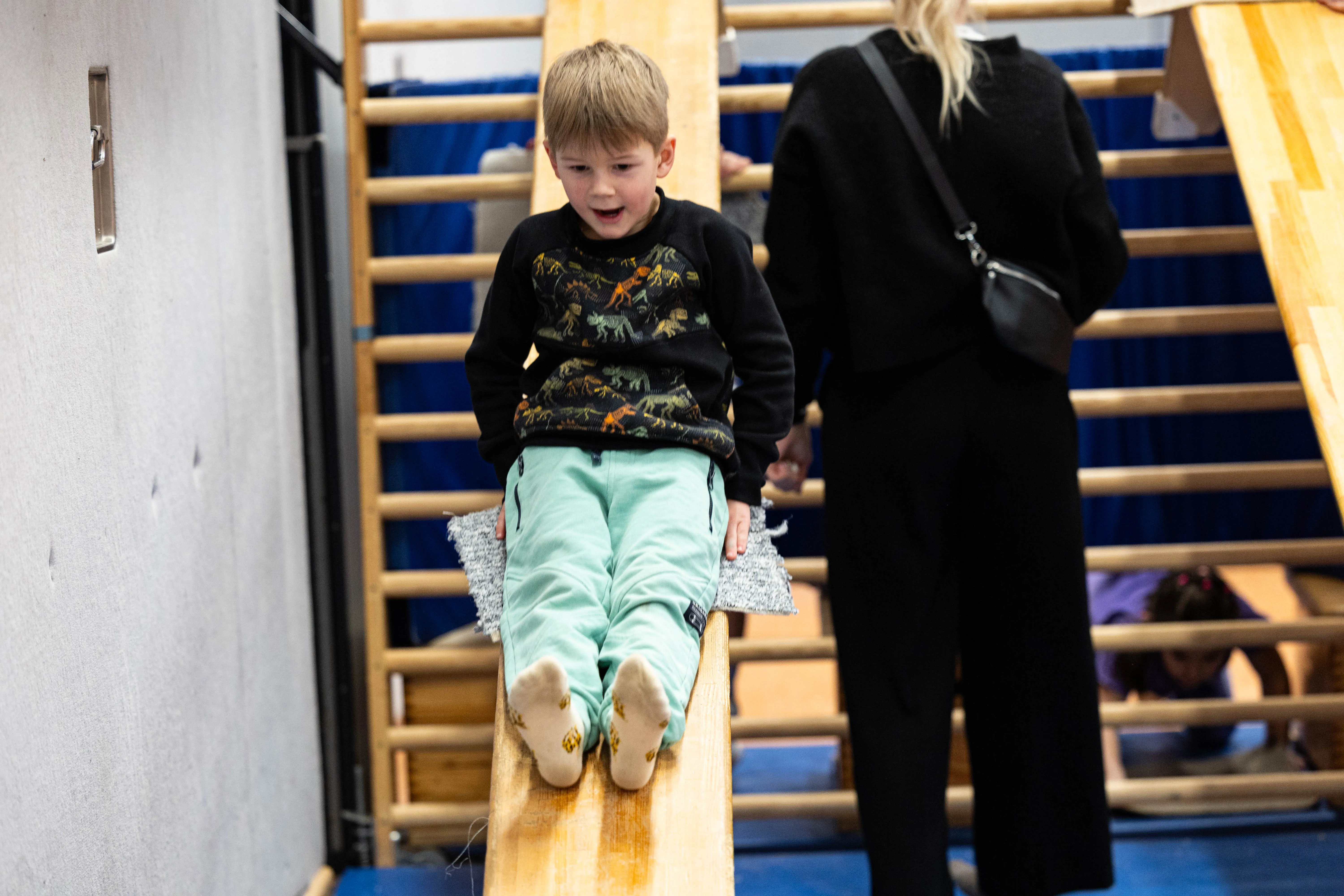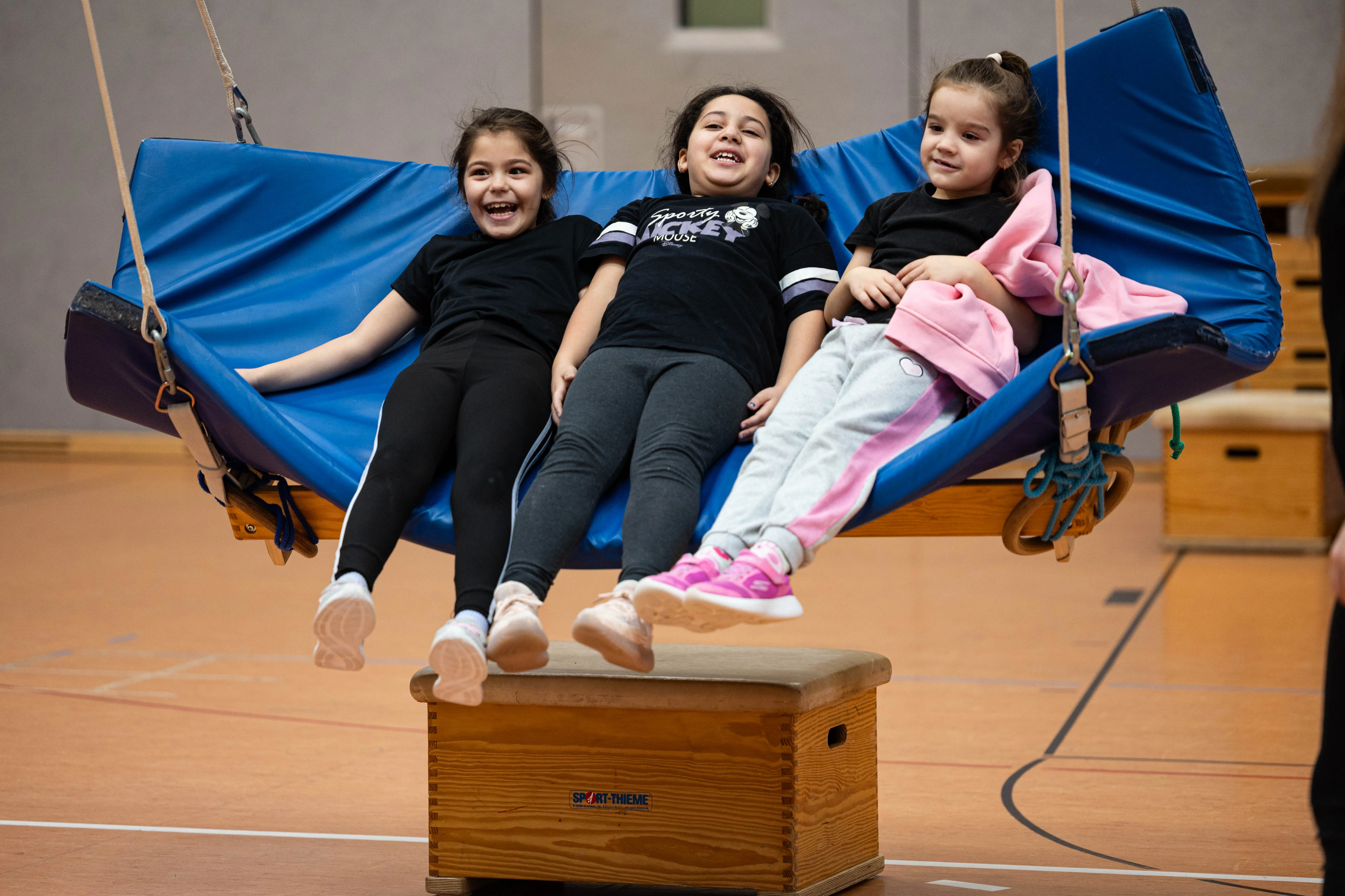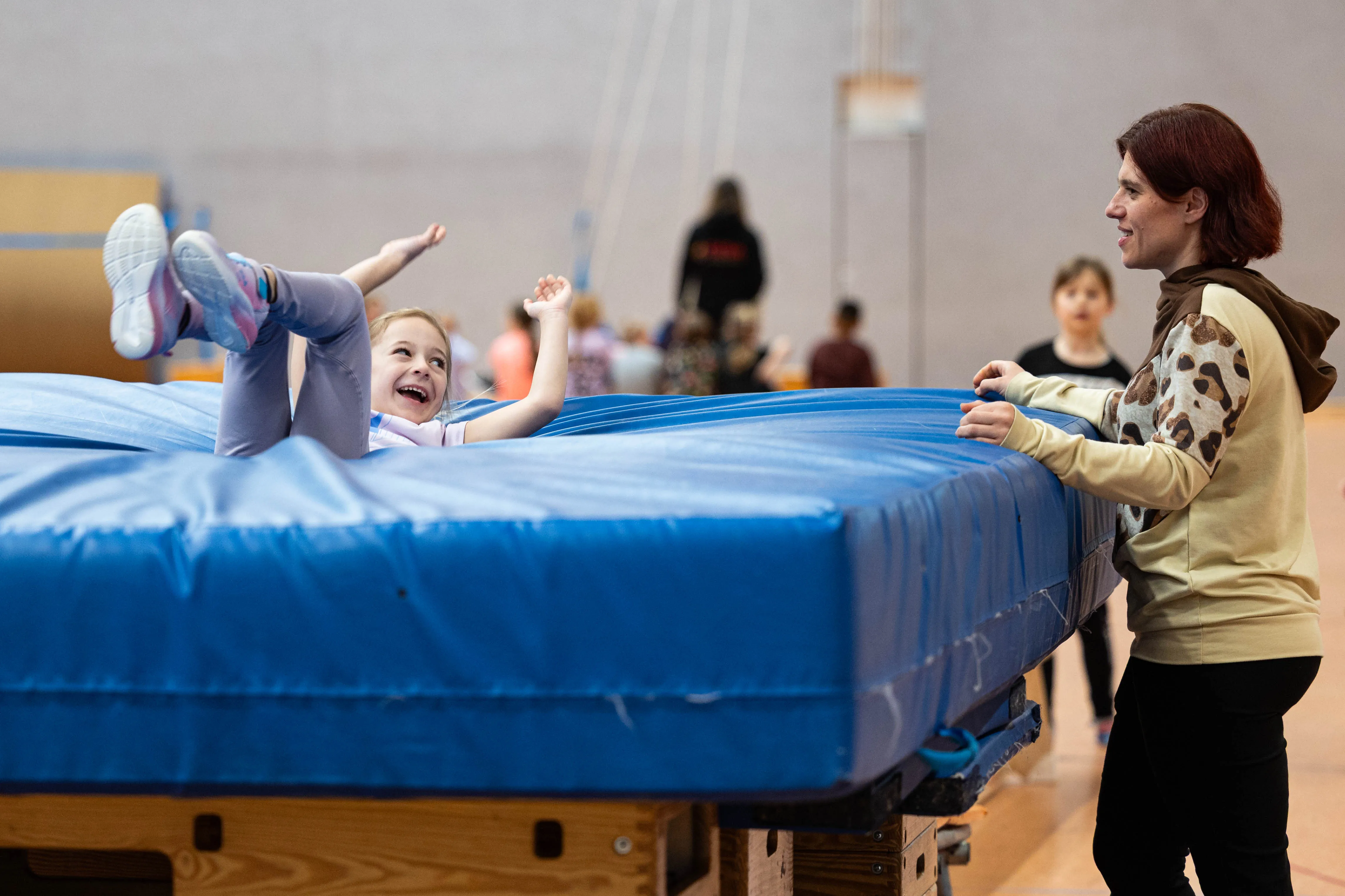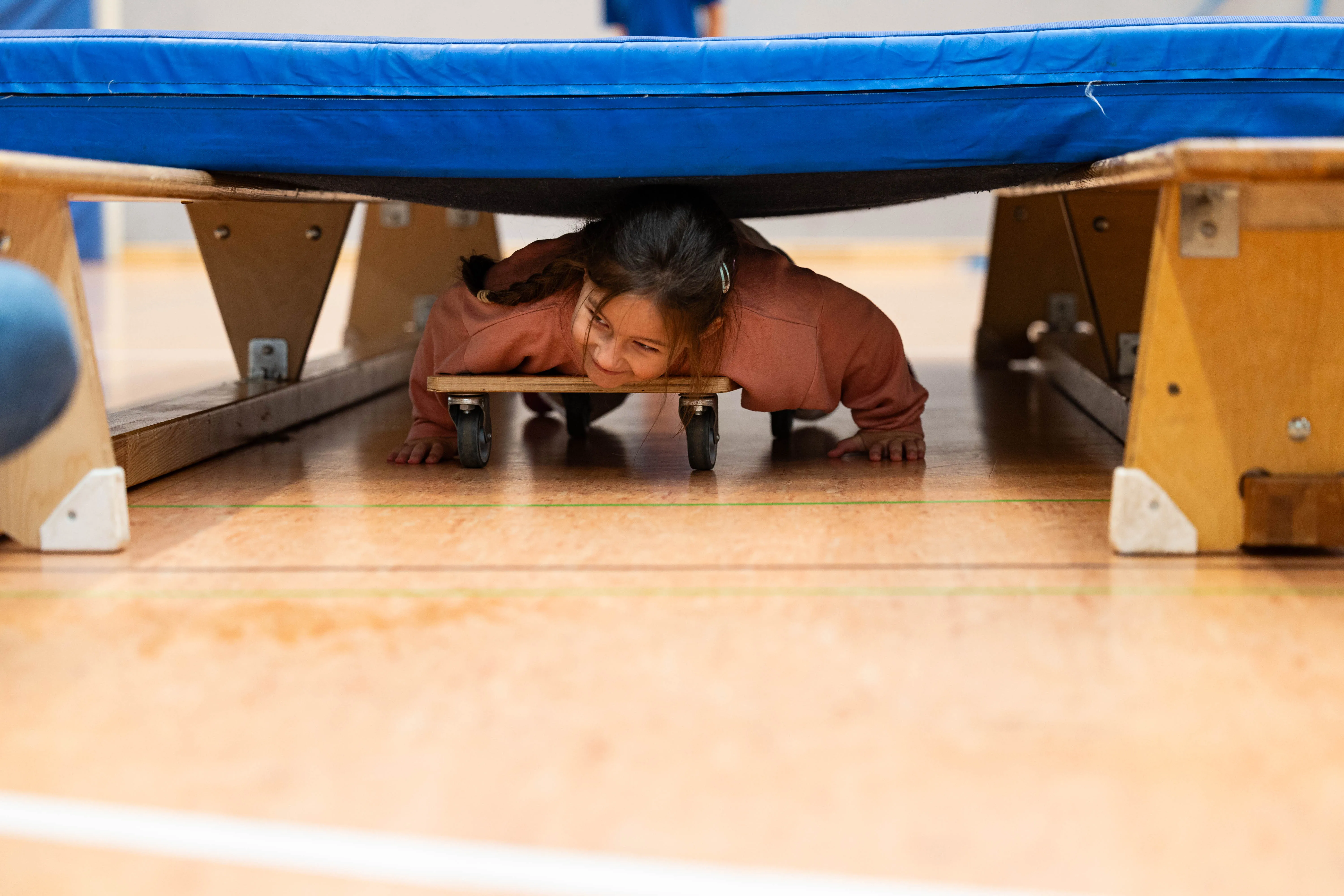 Denn neben den künftigen "i-Dötzchen" waren auch die jetzigen Erst- und Zweitklässler eingeladen, am Wintersportfest teilzunehmen. So füllte sich die Sporthalle Felderhof schnell mit zahlreichen Kindern, die am Sprossenwandklettern, an den Balancier-Inseln oder dem Trampolinsprung teilnehmen wollten. Dabei konnten sie sich frei in der Halle bewegen und selbst entscheiden, welche Station sie machen wollten. Sportlehrerin Silke Wiegräbe erklärte lachend: "Die Kinder können auch zehnmal hintereinander zur gleichen Station, wenn sie das möchten."