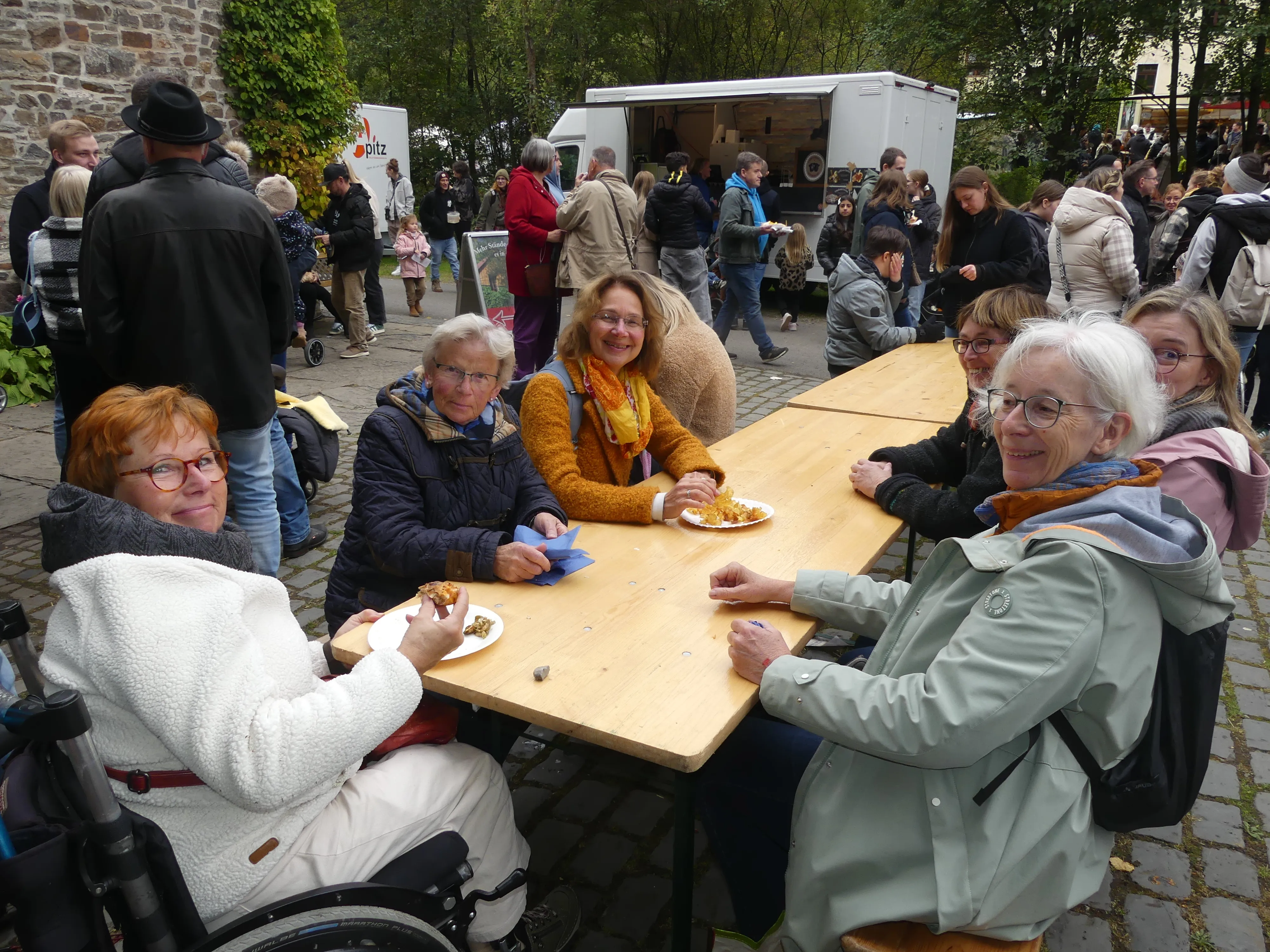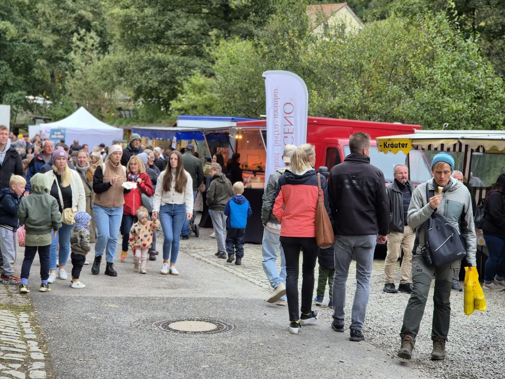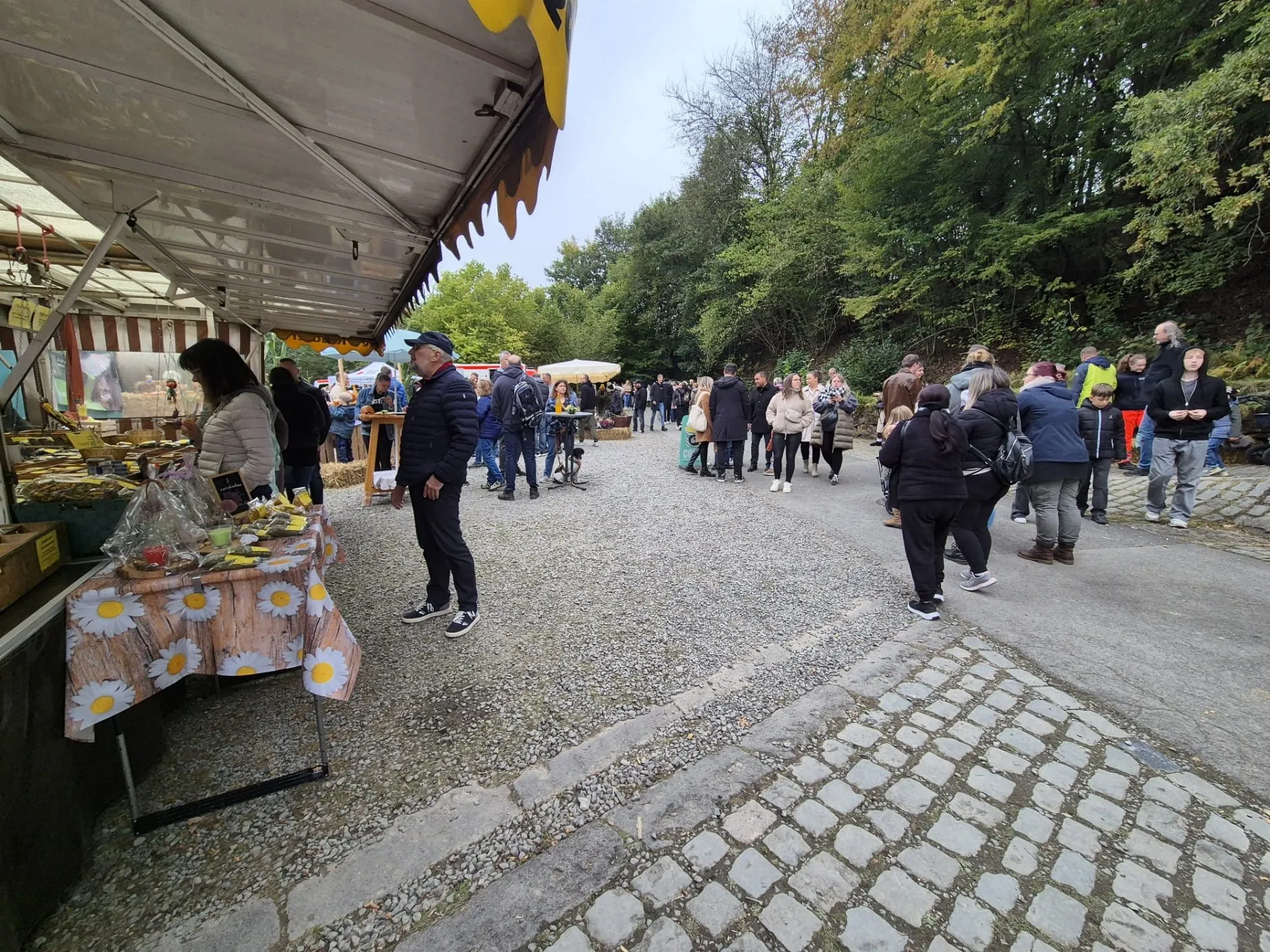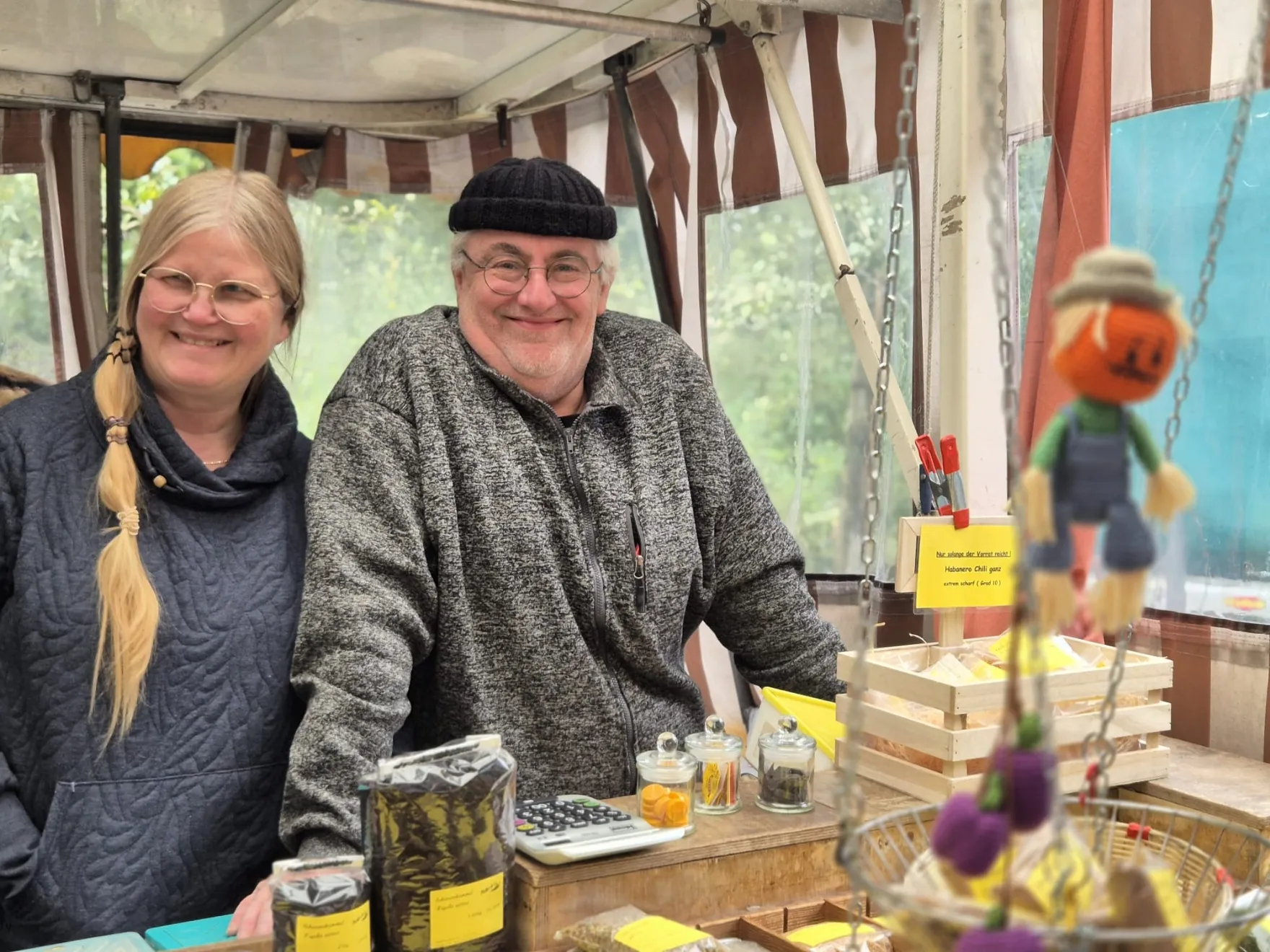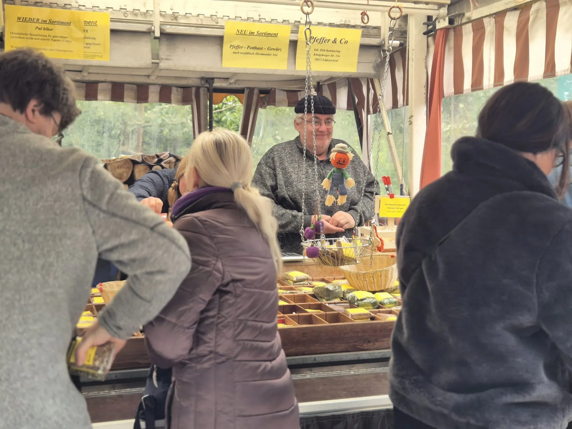 Doch auch die Erwachsenen kamen auf ihre Kosten. Bei mehr als 50 Ausstellern gab es allerlei zu entdecken: Die Kürbisfarm „Köpke“ aus Halver bot nicht nur Kürbisse, sondern auch Kürbissekt und Kürbiseis an. Von kunstvollen Schnitzereien über Honig und Gewürze bis hin zu gebrannten Mandeln und Glühwein – für jeden Geschmack war etwas dabei.