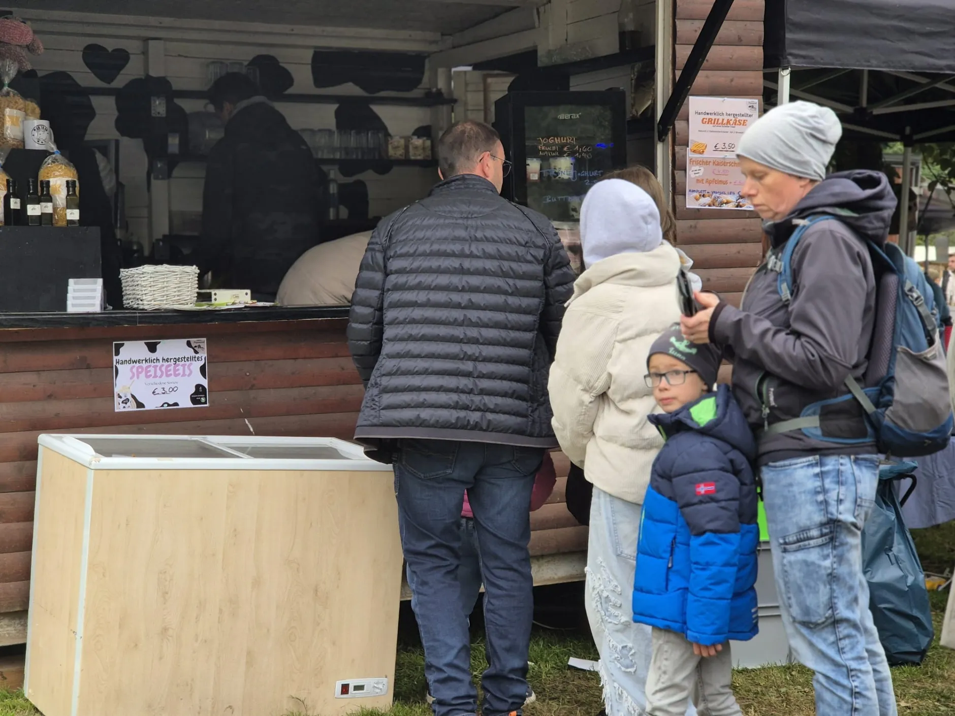 „Es ist eine unserer drei Großveranstaltungen hier“, betont Brunsmeier. „Alle schlendern hier gemütlich über das Gelände – die Stimmung ist trotz des Wetters super“. Ob Kürbisschnitzen, Kerzenziehen oder Kinderschminken – besonders für die jüngsten Gäste war viel geboten. „Das wurde mega gut angenommen“, sagt Brunsmeier zufrieden. Bereits zur Halbzeit des Markttages waren über 80 Kürbisse geschnitzt.