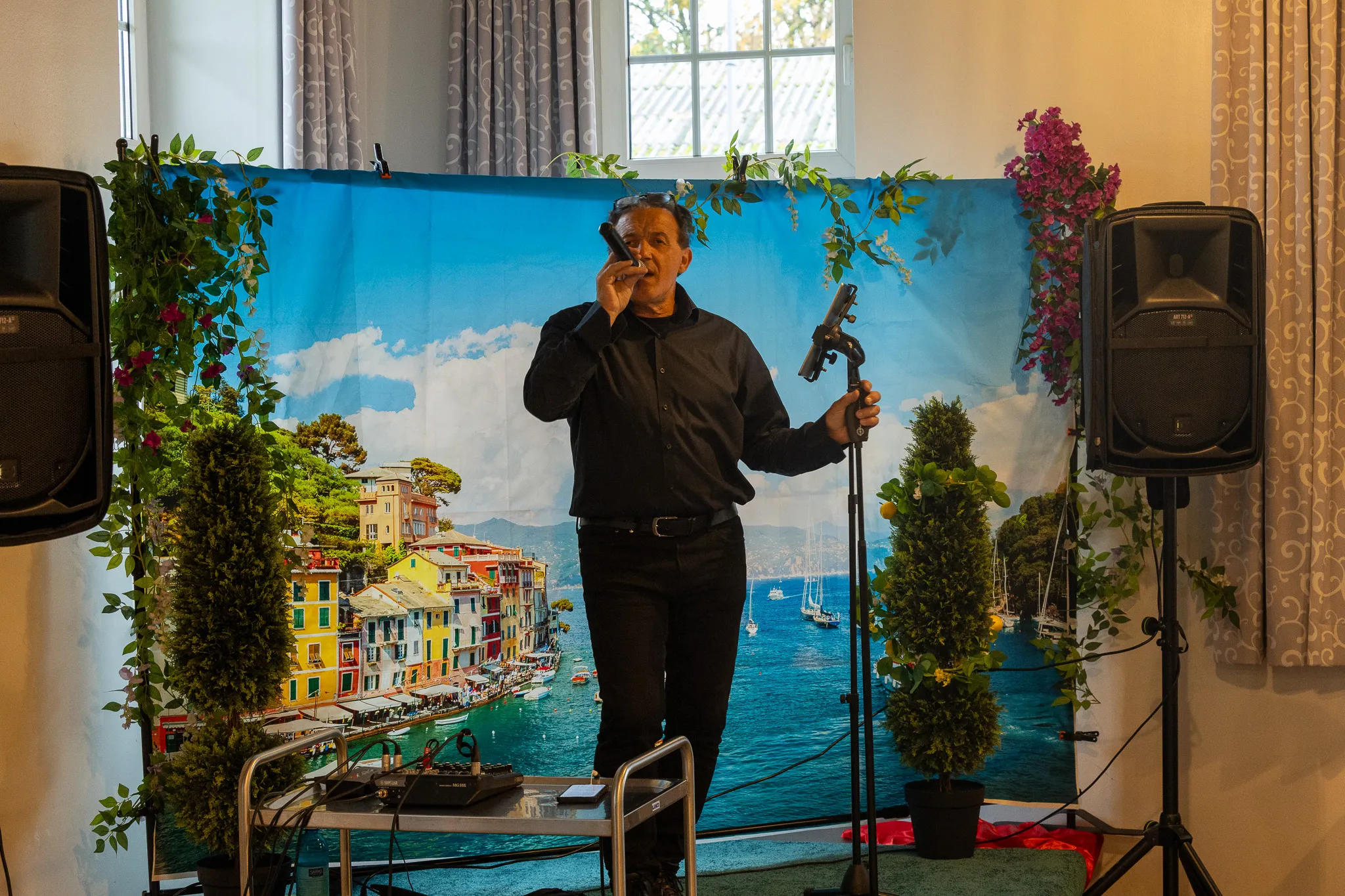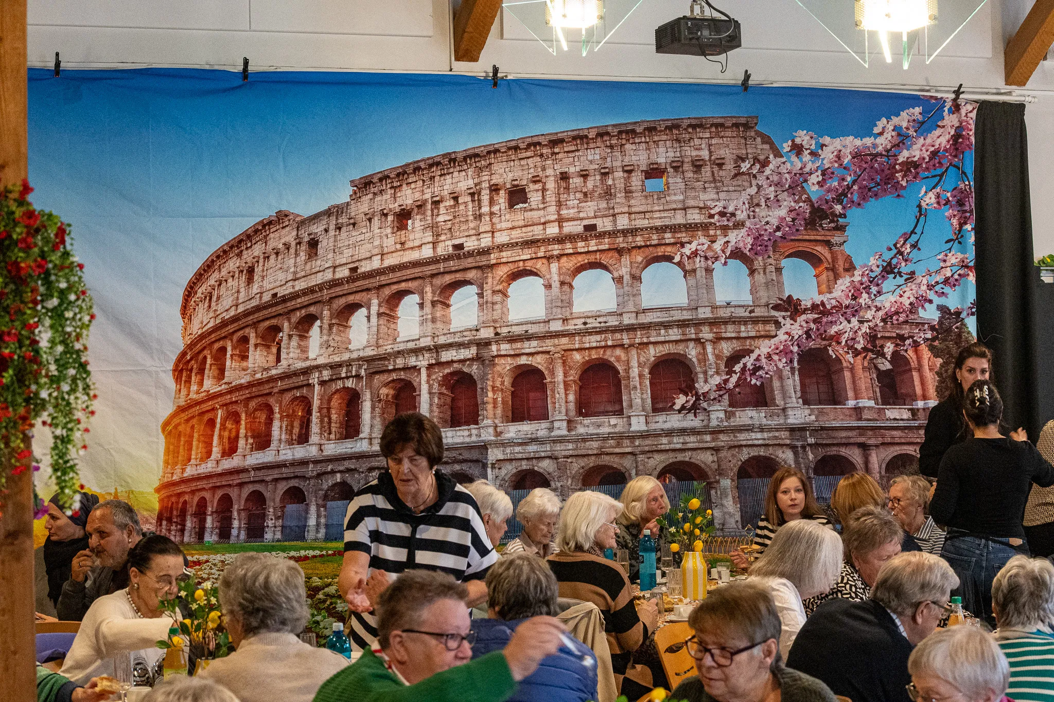 "Solange ich rede, gibt es keinen Kaffee. Also rede ich jetzt nicht Stunden lang; lasst uns sofort anfangen". Nach der Begrüßung durch Rüdiger Potthoff, Gründer der gleichnamigen Stiftung, ging es los. Neben Essen und Trinken sollte vor allem getanzt werden. Für die Livemusik war Sänger Luciano della Libera zuständig. Als dieser "Tu Vuo Fà L'Americano" sang, füllte sich unaufgefordert die Tanzfläche.