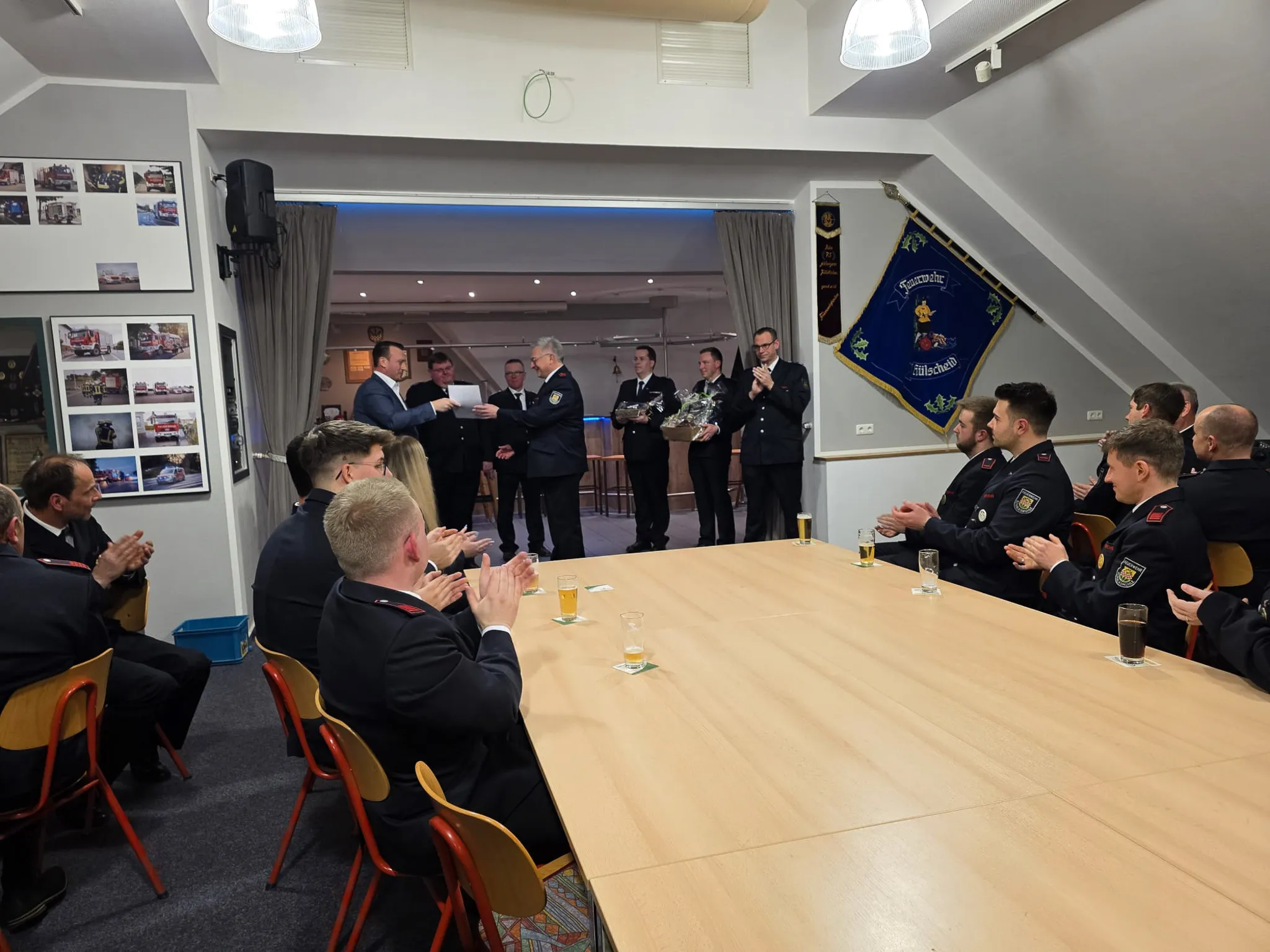Im Rahmen einer feierlichen Veranstaltung am Gerätehaus an der Spormecke wurden am Samstag, 24. Januar, fünf Mitglieder des Löschzuges Hülscheid nach Jahrzehnten engagierten Dienstes in die Ehrenabteilung überführt. Bürgermeister Christian Breddermann würdigte den Einsatz der Kameraden und überreichte ihnen Urkunden als Zeichen des Dankes und der Anerkennung.