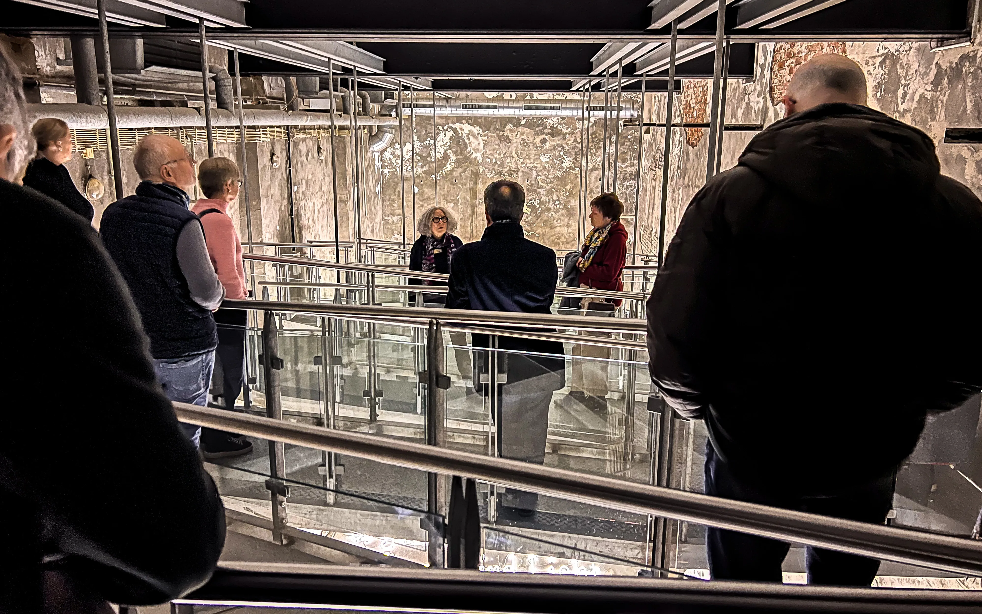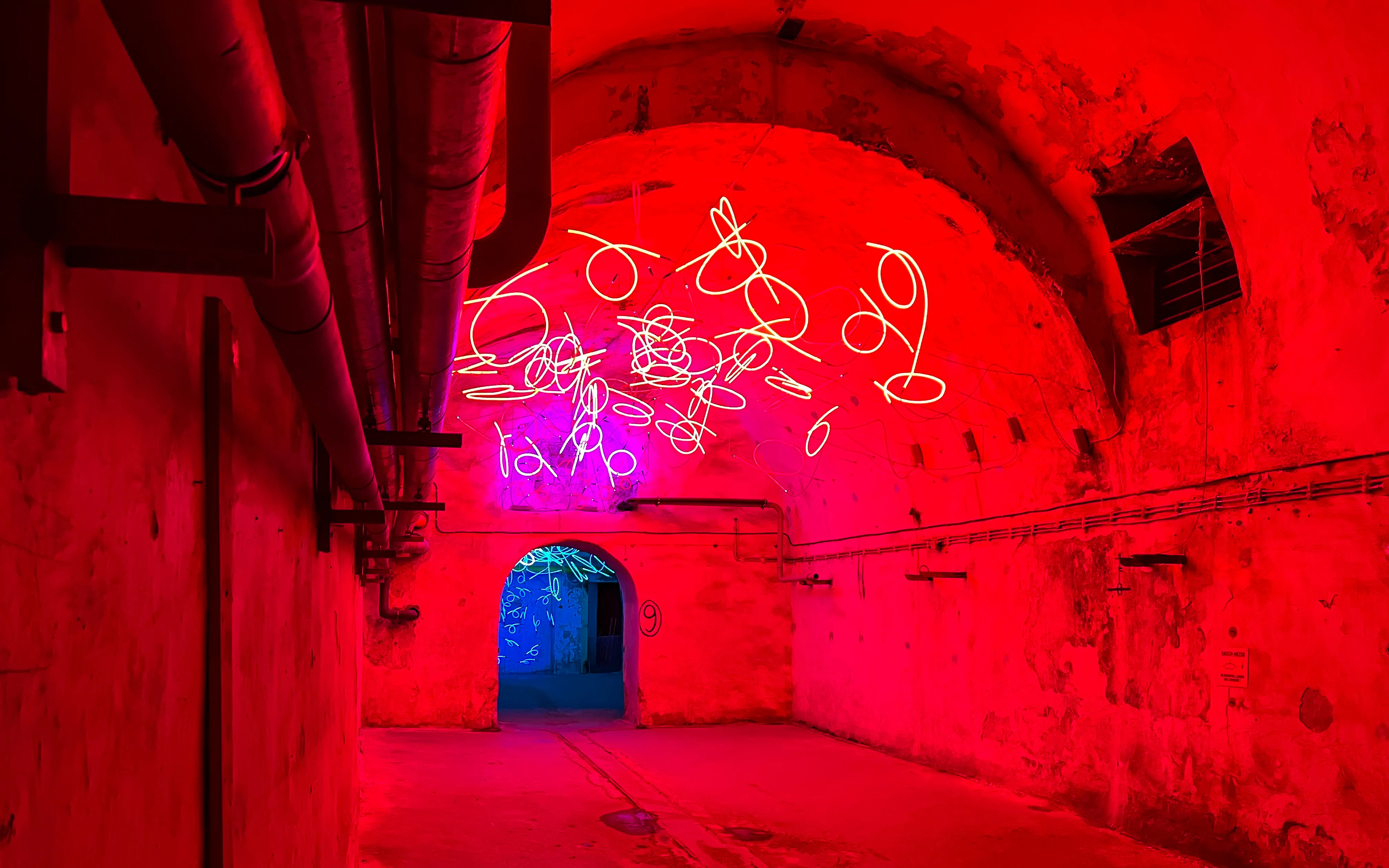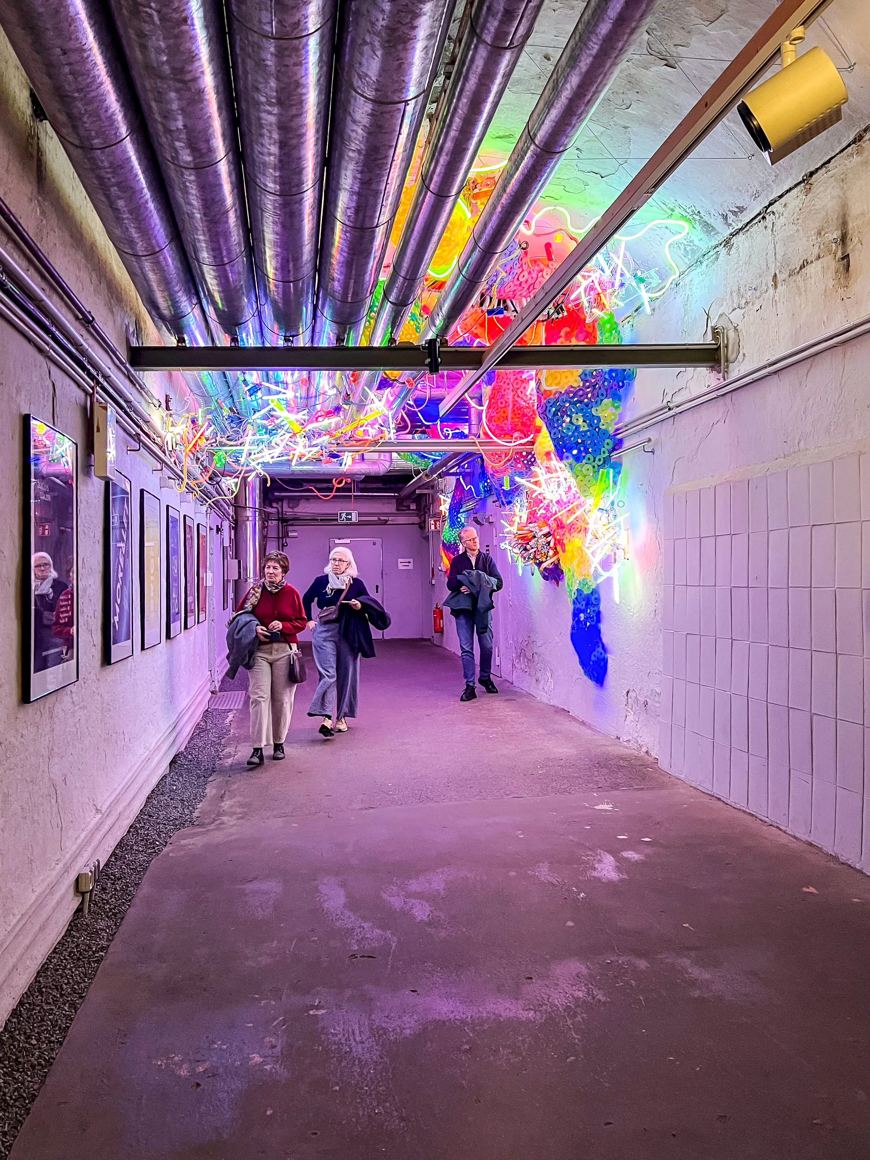 Bei der 90-minütigen Führung sah die Gruppe aus Lüdenscheid Arbeiten von Andreas Schmid (DEU), Jeongmoon Choi (KOR), Yoana Tuzharova (BGR), und Atelier Rosalie/Thomas Jürgens (DEU). Alle Werke interagieren mit der vorhandenen Umgebung und schaffen eine neue Landschaft, die erst durch das Licht sichtbar wird. Das Hindurchbewegen durch die Licht-Landschaften kommt einem nächtlichen Spaziergang gleich, der Besucherinnen und Besucher durch die Abwesenheit von Tageslicht und der Anwesenheit von Kunstlicht einen eigentlich bekannten Ort mit anderen Augen sehen lässt.