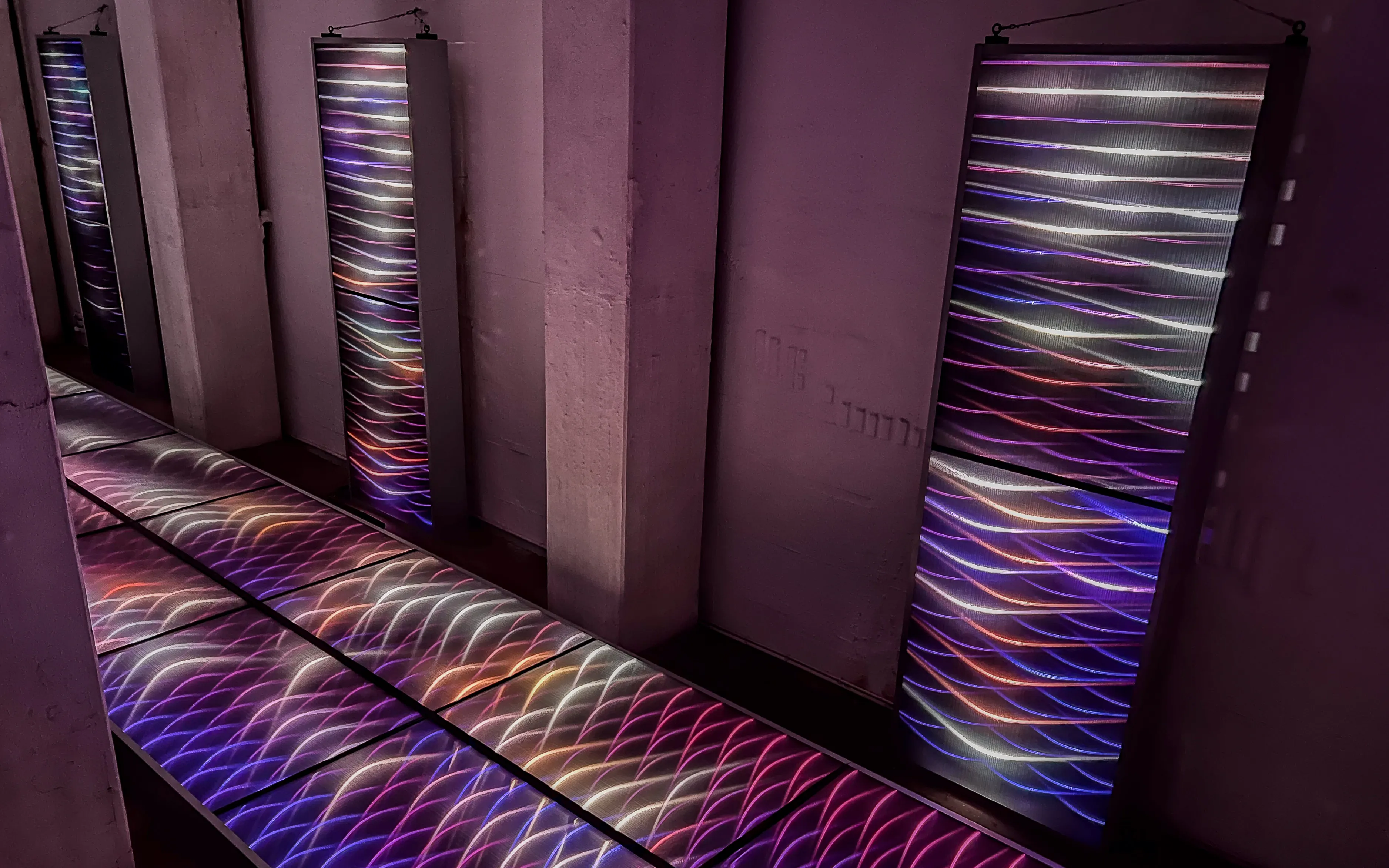 Im größten Einzelraum des Museums ist die aus mehreren modularen Paneelen zusammengesetzte Lichtskulptur STREAM I. – III. des Ateliers Rosalie | Thomas Jürgens zu sehen. Zwischen den gereihten Pfeilern formt sich auf der gesamten Raumlänge ein fließendes, vielfarbiges Gewässer aus Licht - Farbigkeit, Helligkeit, Intensität und Rhythmus befinden sich dabei in stetiger Veränderung.