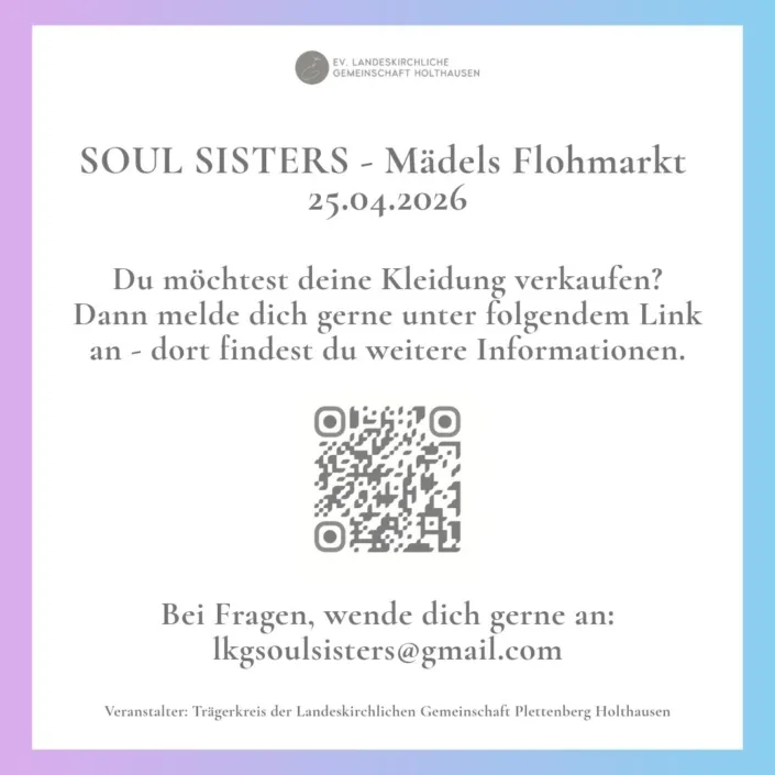 Die Landeskirchliche Gemeinschaft (LKG) Holthausen veranstaltet am 26. April einen Flohmarkt für Mädchen und Frauen.