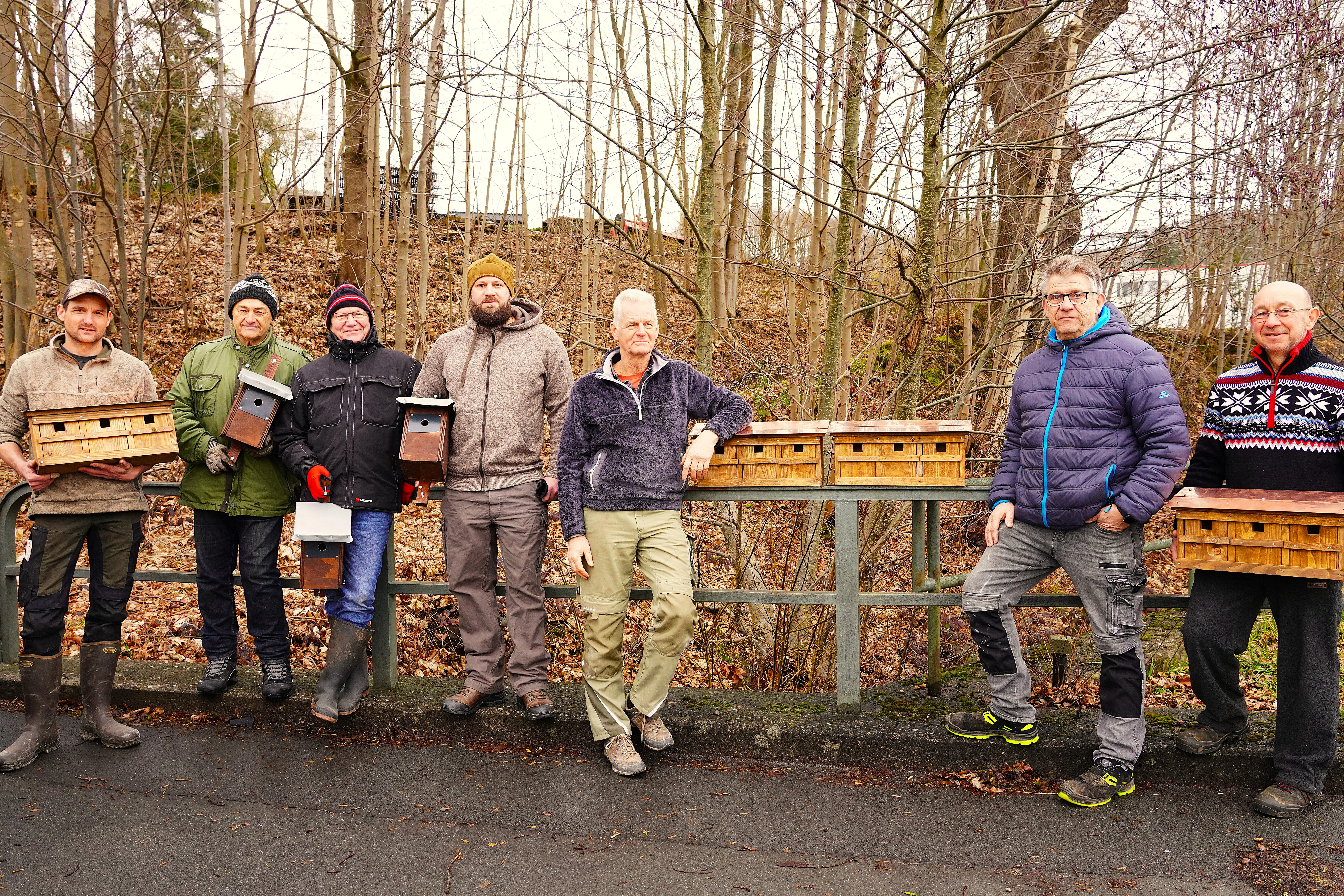 Die Angelfreunde konnten für elf Vogel-Reihenhäuser die Firma Schulte Verpackungsprofis aus Hemer als Sponsor gewinnen. 30 Einzelnisthilfen fertigten die Angler mit Enthusiasmus und handwerklicher Geschicklichkeit in etlichen Stunden in den hauseigenen Werkstätten an.