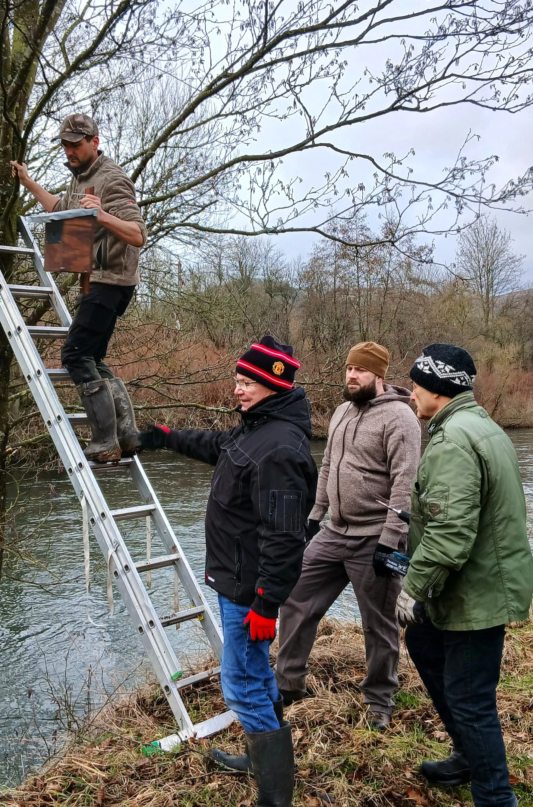Angelvereine wie die Plettenberger Maipiere übernehmen einen bedeutenden Beitrag zum Naturschutz: Sie unterstützen u. a. Wildvögel wie Kohl- und Blaumeisen, Spatzen, Kleiber und Spechte durch das Anbringen von Nisthilfen an Gewässern. Diese Maßnahmen fördern die Artenvielfalt in Uferbereichen. Eine dieser Aktionen fand am vergangenen Samstag, 21. Februar, im Bereich Leinschede statt. Die Plettenberger Maipiere hatten sich zum Ziel gesetzt, die Brutmöglichkeiten am Lenneabschnitt in Höhe Leinschede attraktiver zu gestalten.