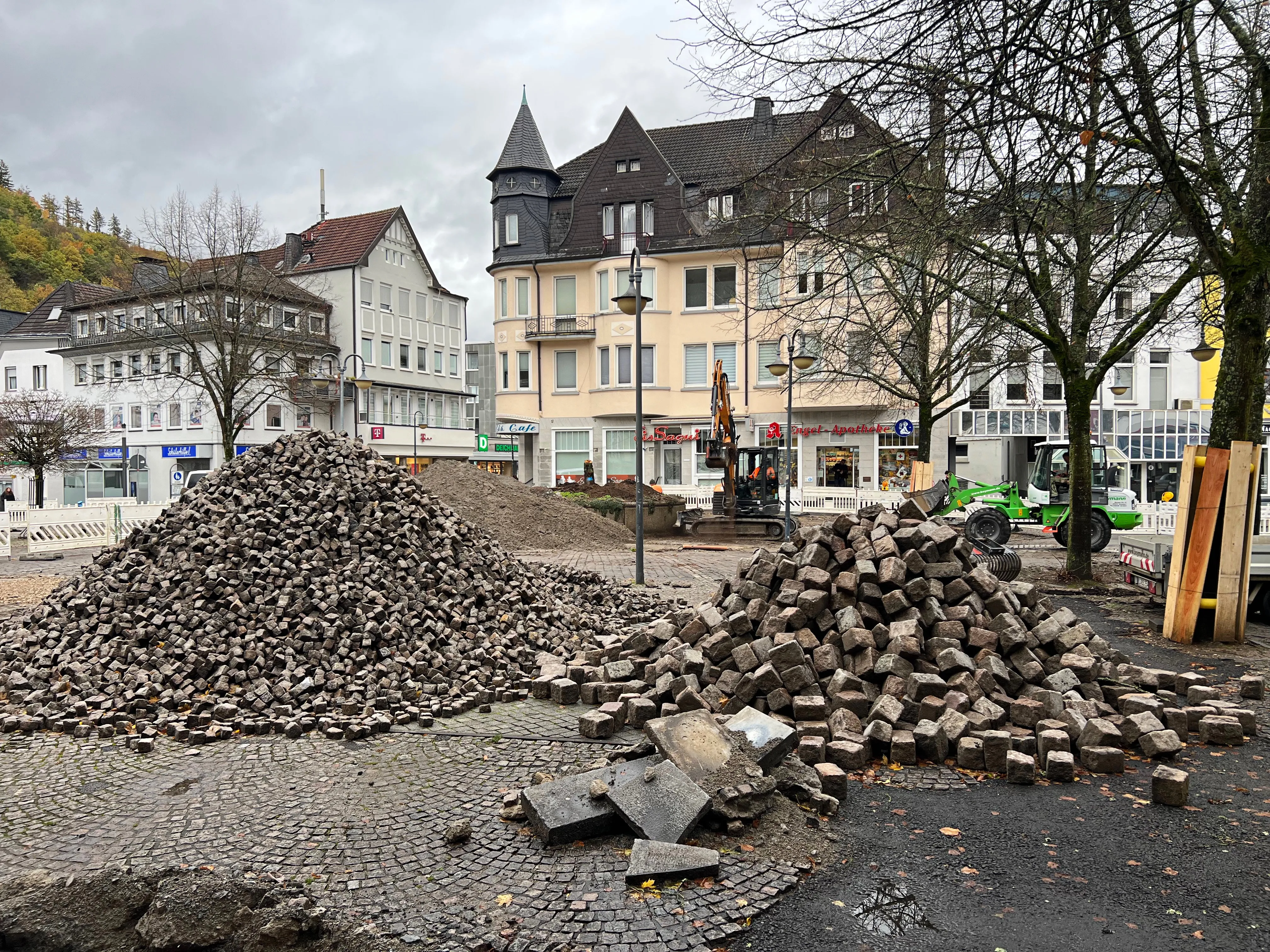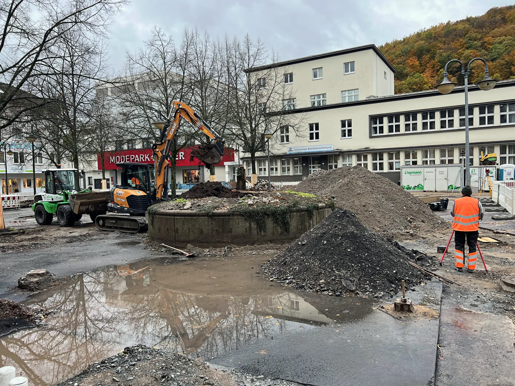 Der Umbau des Maiplatzes nimmt Fahrt auf. Wenn alles nach Plan verläuft, wird die Fläche vor dem Eiscafé Sagui rechtzeitig zu dessen Wiedereröffnung Anfang März wieder bespielbar sein. Die komplette Baumaßnahme dauert voraussichtlich bis Dezember 2026.
