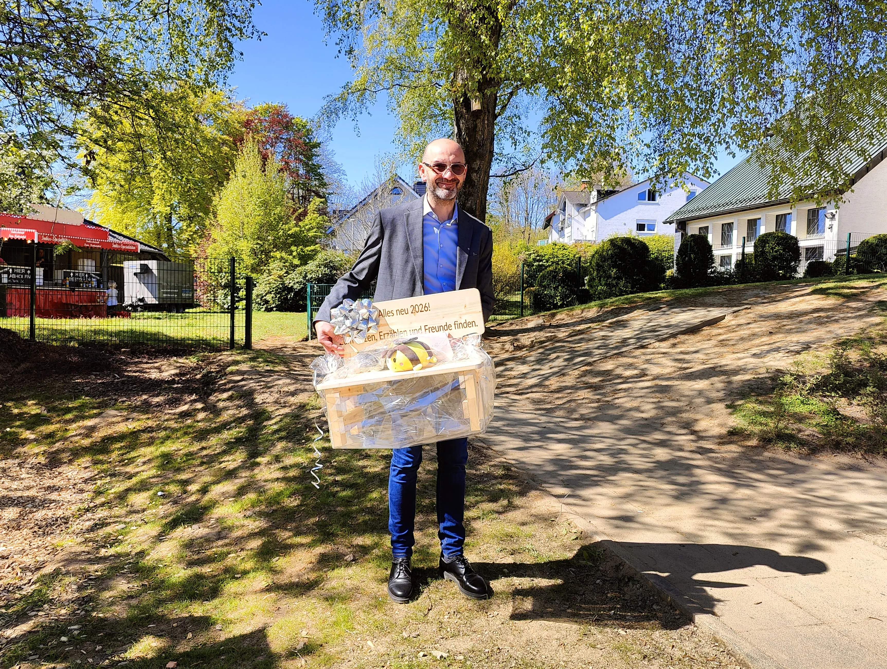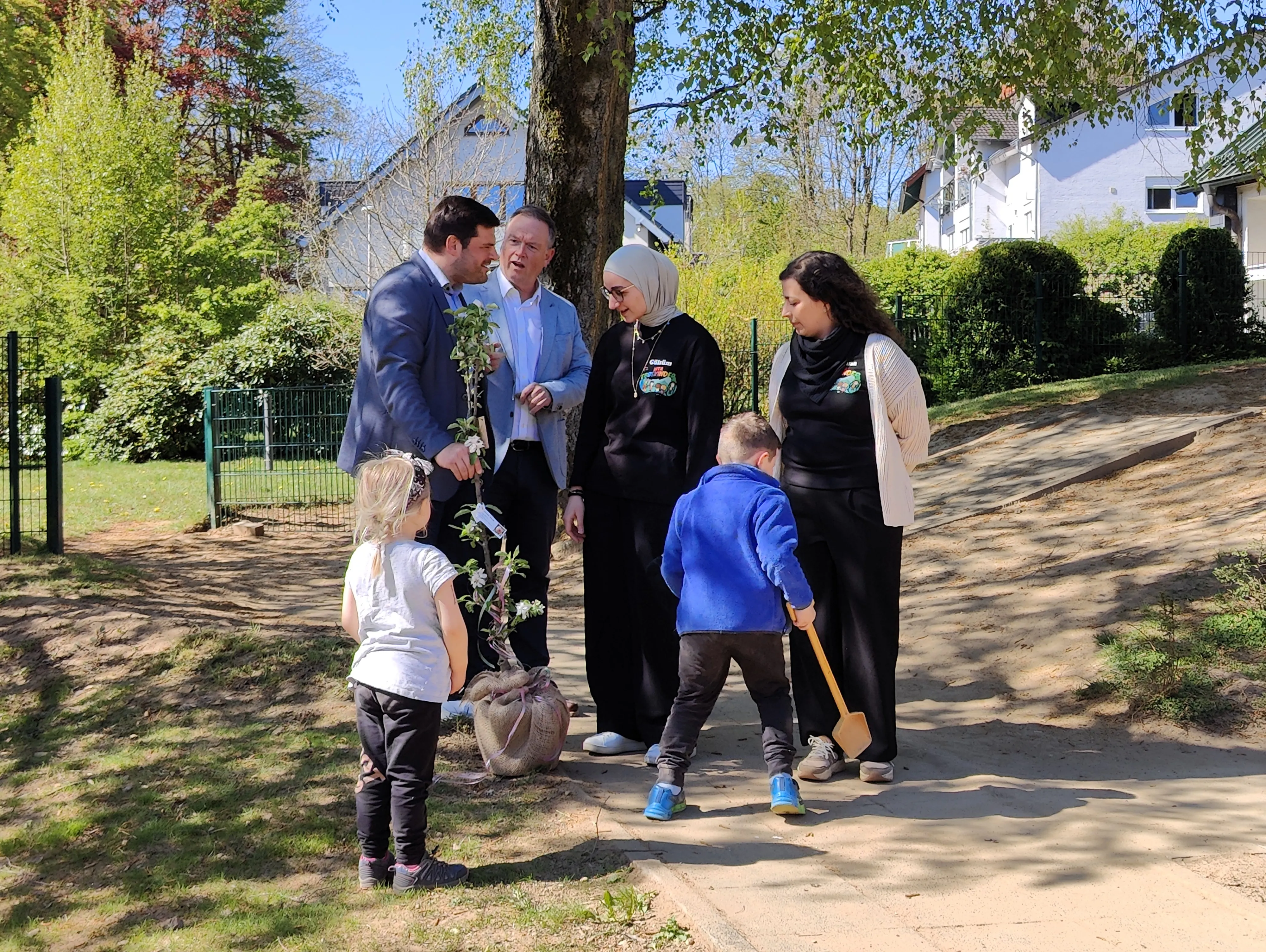 Die Kinder wurden im Vorfeld von den Erziehern befragt, was ihnen am Umbau besonders gefallen habe. Der wohl am häufigsten genannte Satz war: „dass der Bagger gebuddelt hat“ – ein absolutes Highlight. Gleichzeitig freuten sich die Kinder aber auch über die Fertigstellung der Bauarbeiten: „Die Bohrmaschinen waren so laut“, berichteten einige Kinder - und auch das Betreten der hauseigenen Turnhalle war zeitweise nicht möglich. Zur Einweihung gab es zudem ein Geschenk: Dr. Bastian Kühn überreichte im Namen der Meinerzhagener Baugesellschaft (MBG) einen Apfelbaum. „Der Baum steht für die Zukunft und das Wachstum der Kita", erklärte er.