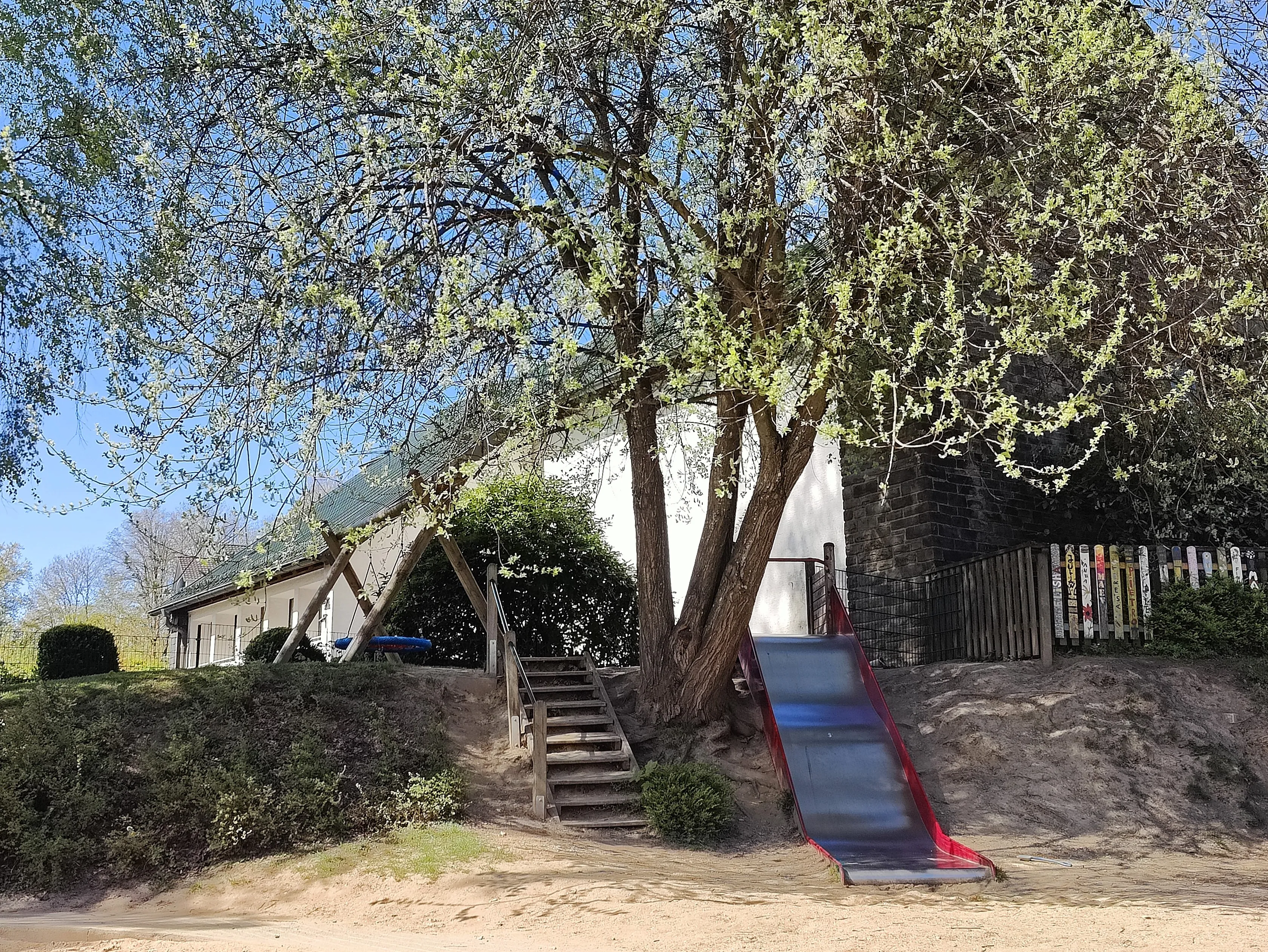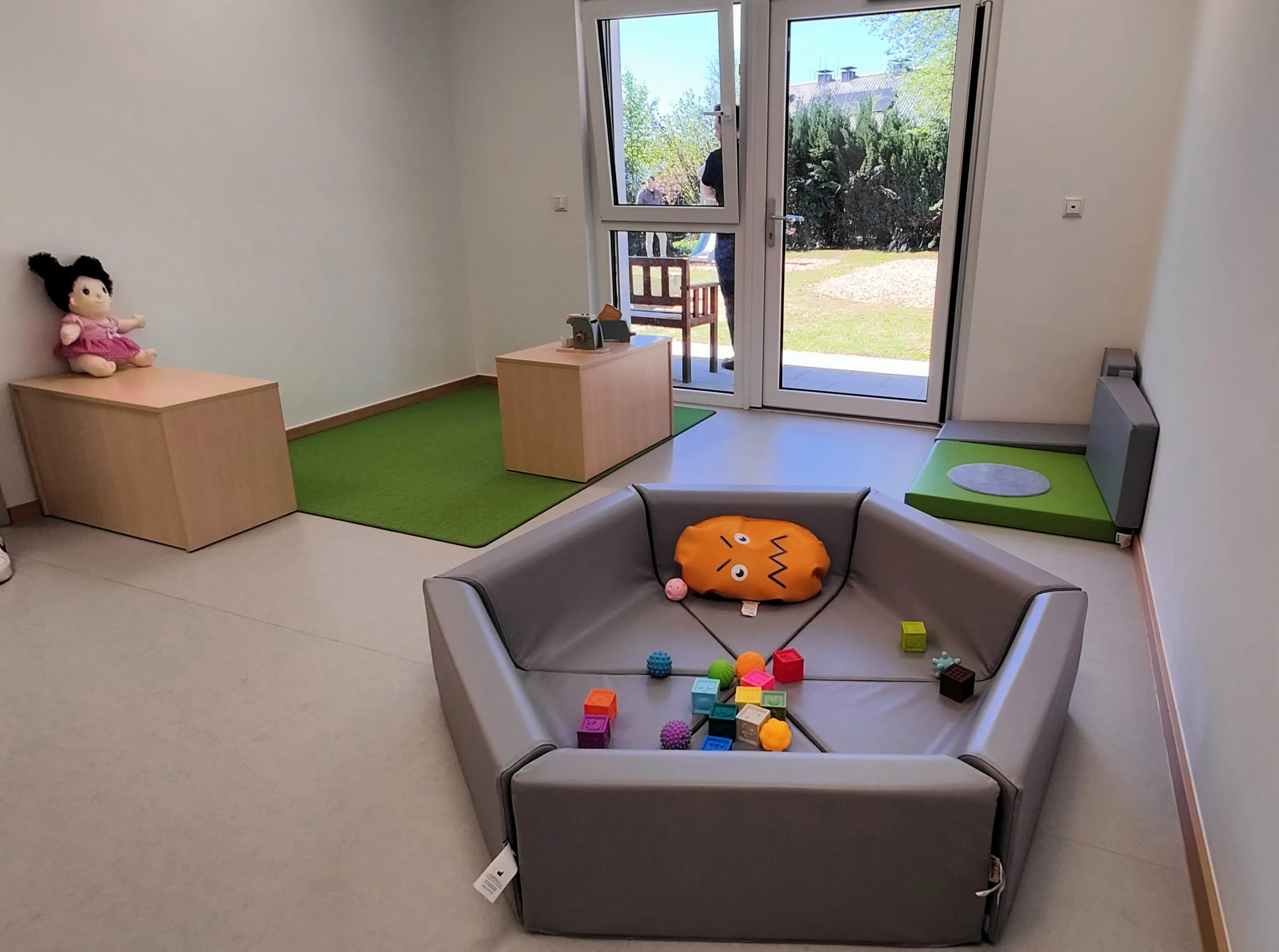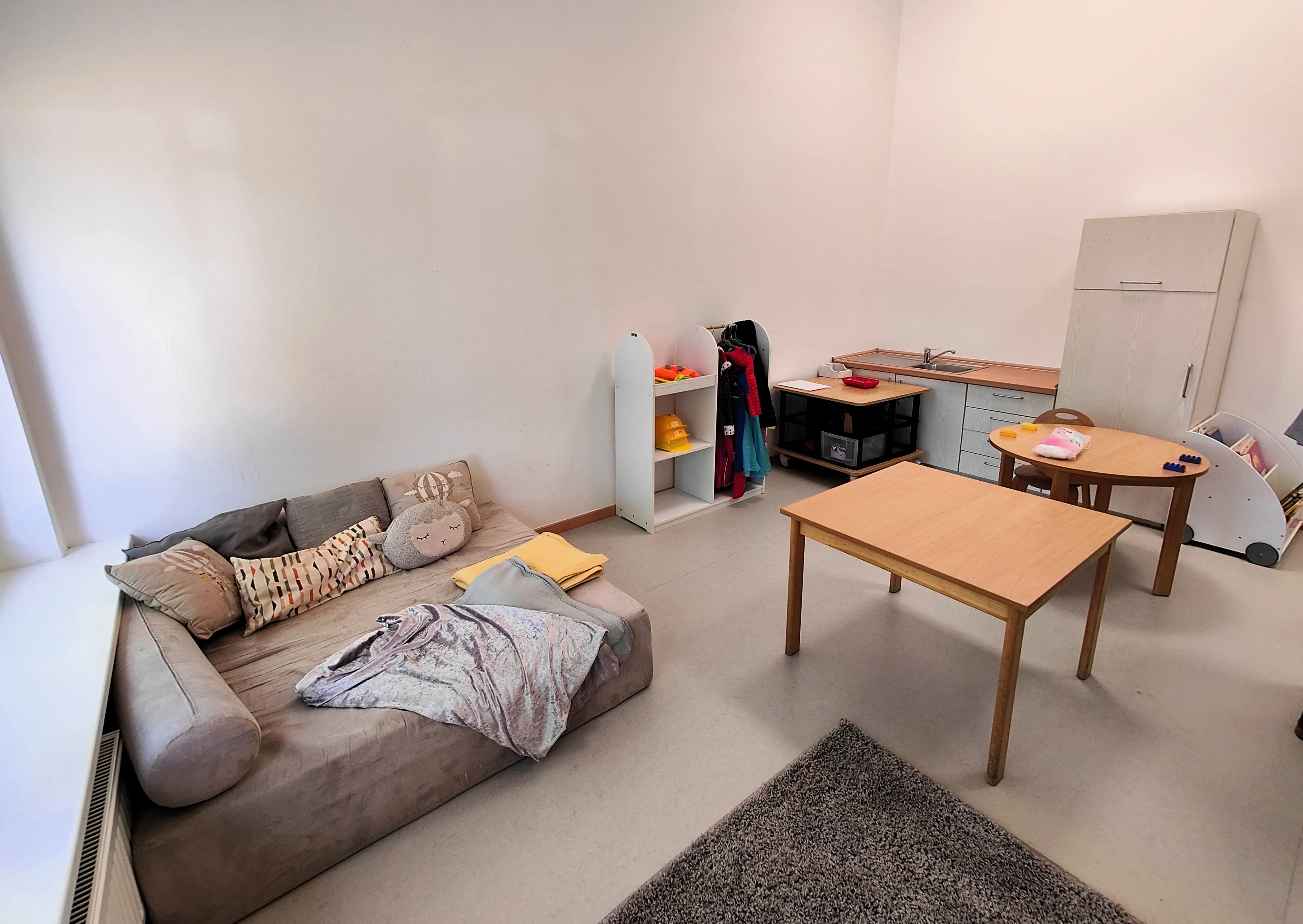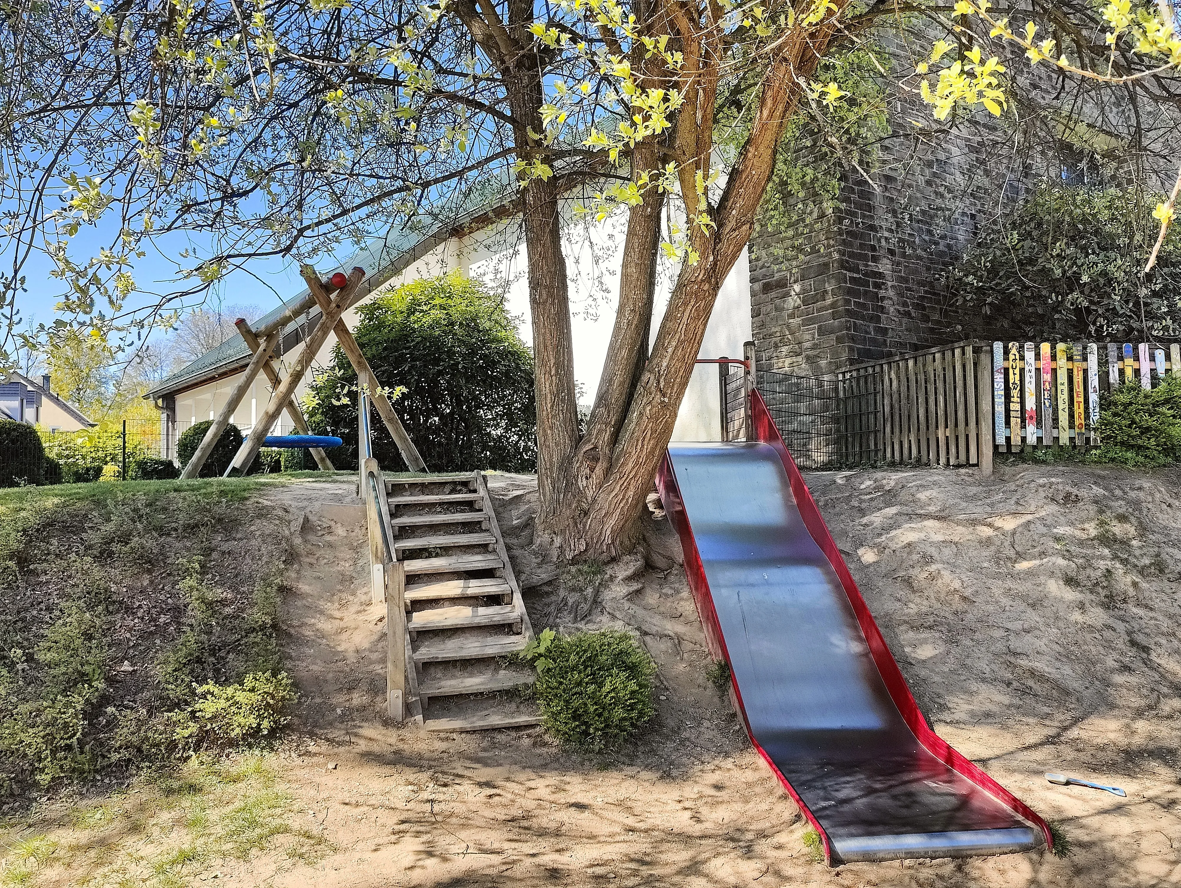 Im Zuge der Baumaßnahmen wurde das angrenzende ehemalige Pfarrhaus durch einen Durchgang mit der Kita verbunden. Dadurch entstand Platz für eine dritte Gruppe, die nun ausreichend Raum zum Spielen und Toben bietet. Gleichzeitig wurden auch die bestehenden Räume modernisiert.