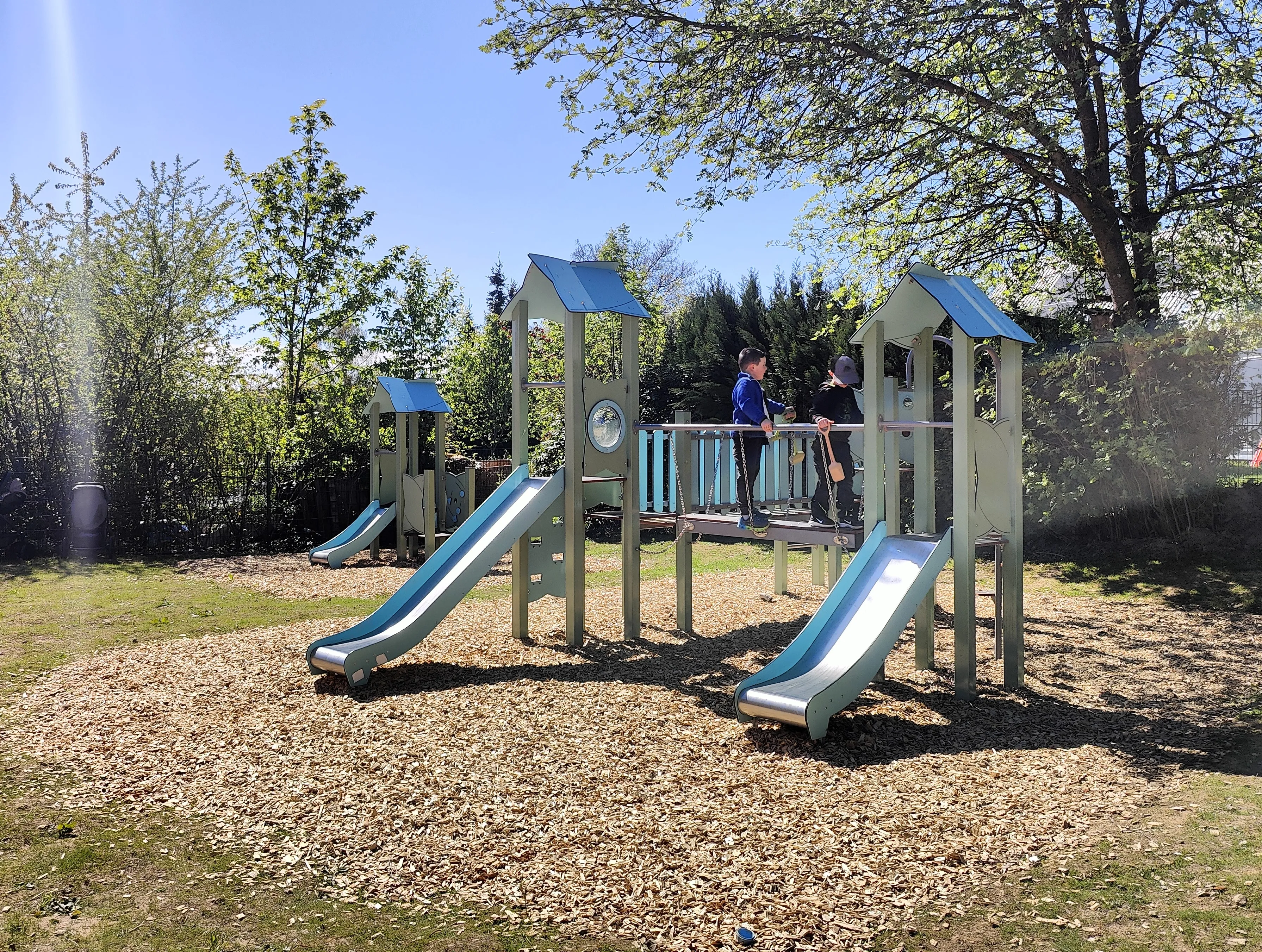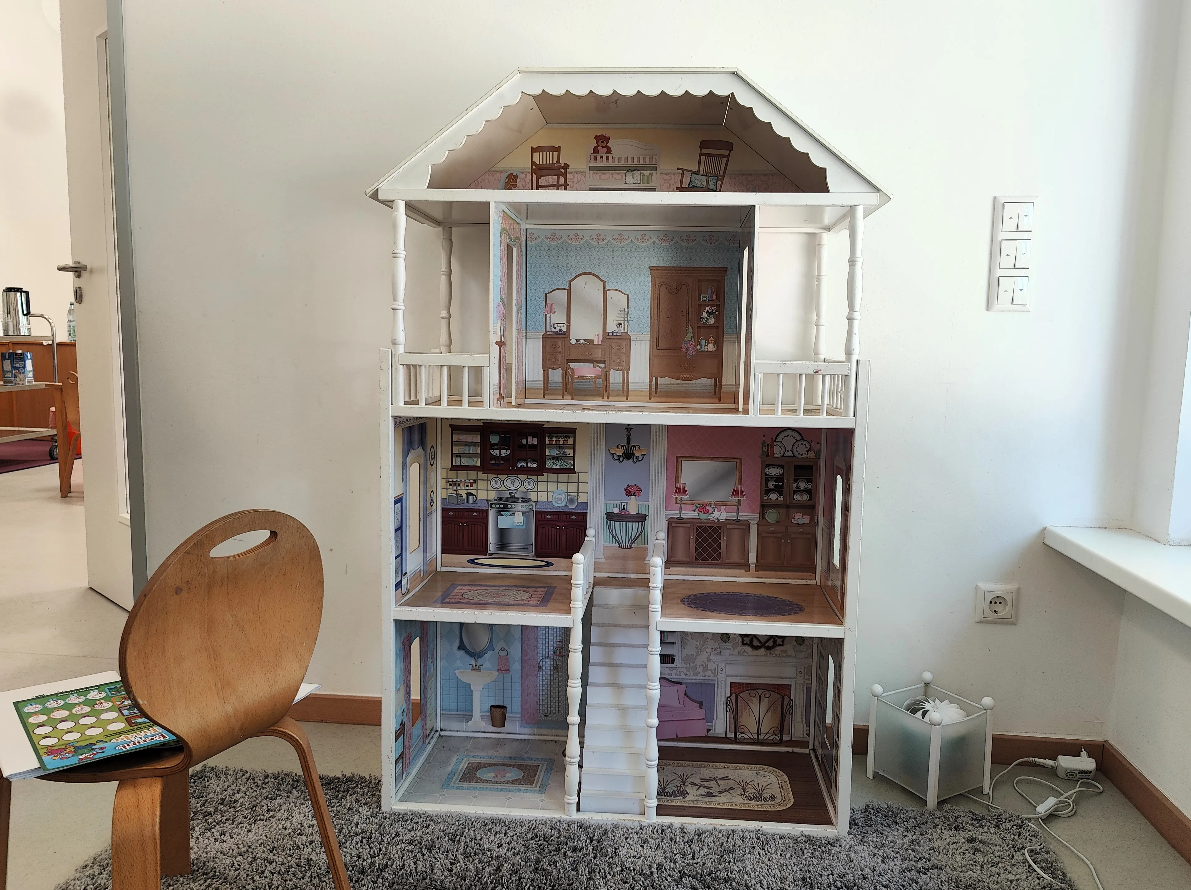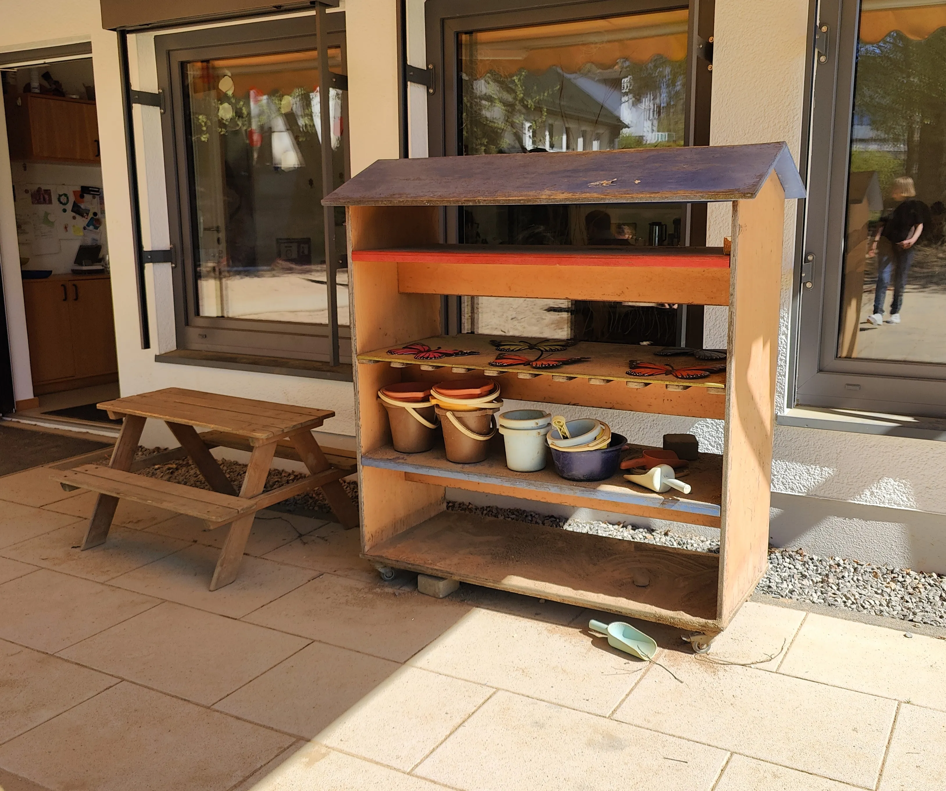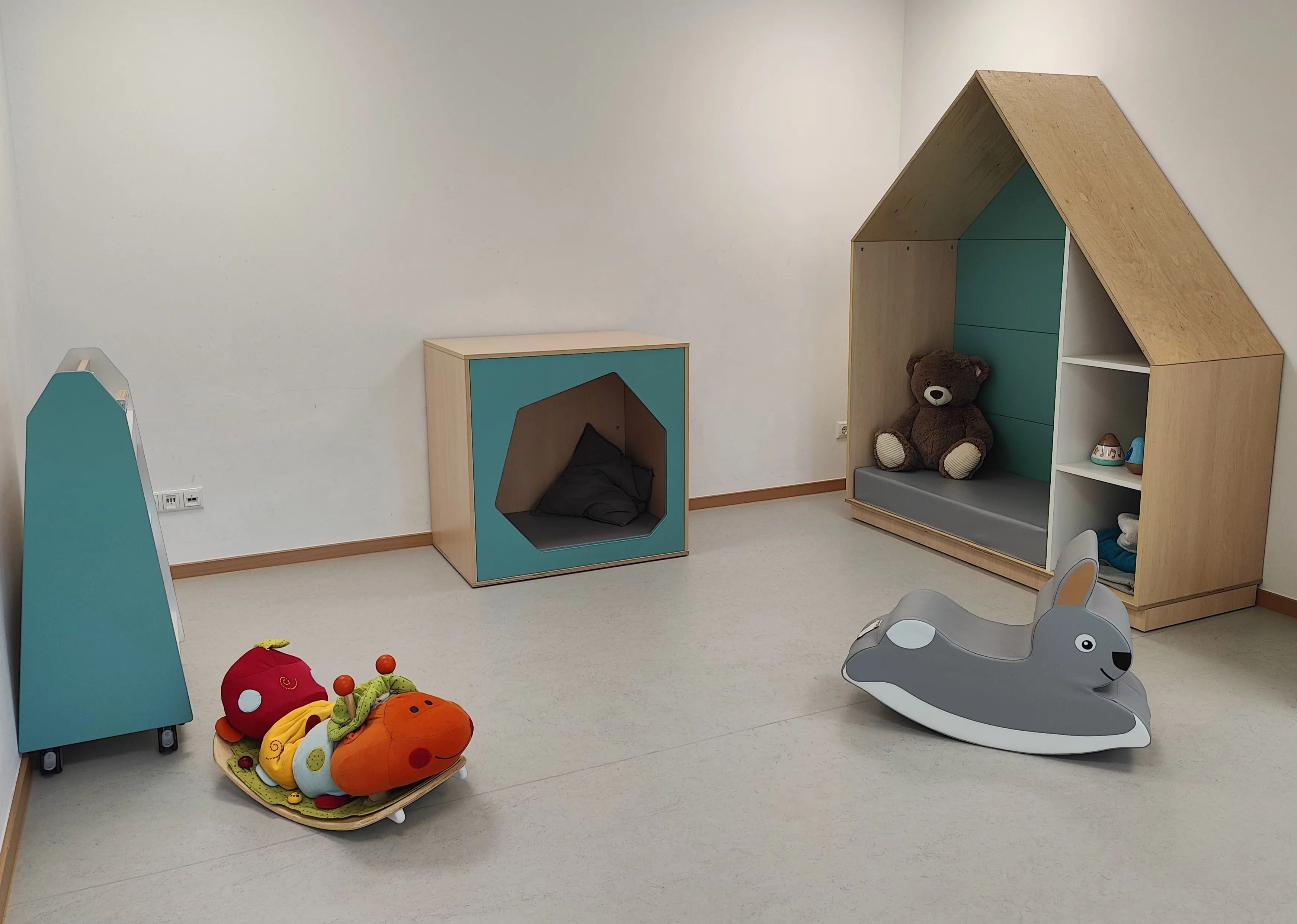 Im Zuge der Baumaßnahmen wurde das angrenzende ehemalige Pfarrhaus durch einen Durchgang mit der Kita verbunden. Dadurch entstand Platz für eine dritte Gruppe, die nun ausreichend Raum zum Spielen und Toben bietet. Gleichzeitig wurden auch die bestehenden Räume modernisiert.