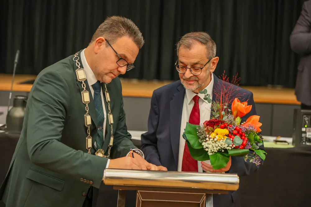 Jetzt ist es amtlich: Michael Joithe (Die Iserlohner) geht in seine zweite Amtszeit als Bürgermeister der Stadt Iserlohn. Nur wenige Tage nach seinem 52. Geburtstag wurde der Letmather in der konstituierenden Sitzung des Rates der Stadt Iserlohn vom „Alterspräsidenten“ Michael Scheffler (SPD) vereidigt. Michael Joithe hatte sich bei der Stichwahl am 28. September gegen Mitbewerberin Burcu Öcaldi, die von CDU, SPD und FDP unterstützt worden war, durchgesetzt.