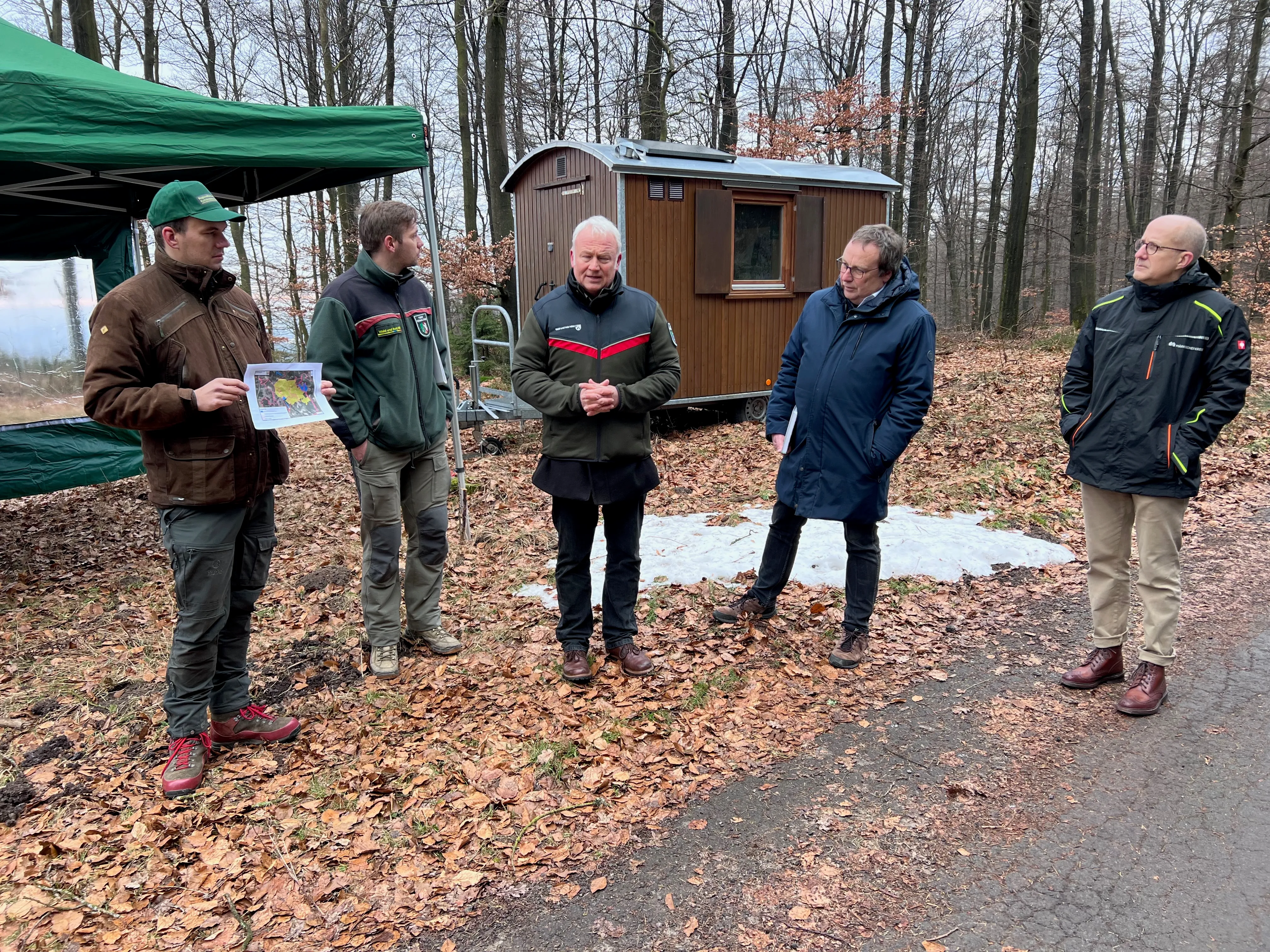 Als Biologe und Hobby-Ornithologe ist Oliver Krischer fasziniert von der Mittelgebirgslandschaft im Ebbegebirge. Als Minister für Umwelt, Naturschutz und Verkehr schaute er sich am Freitag, 23. Januar, die Fläche im Ebbe zwischen Valbert und Herscheid an, die Teil der Wildnis-Initiative des Landes Nordrhein-Westfalen wird.
