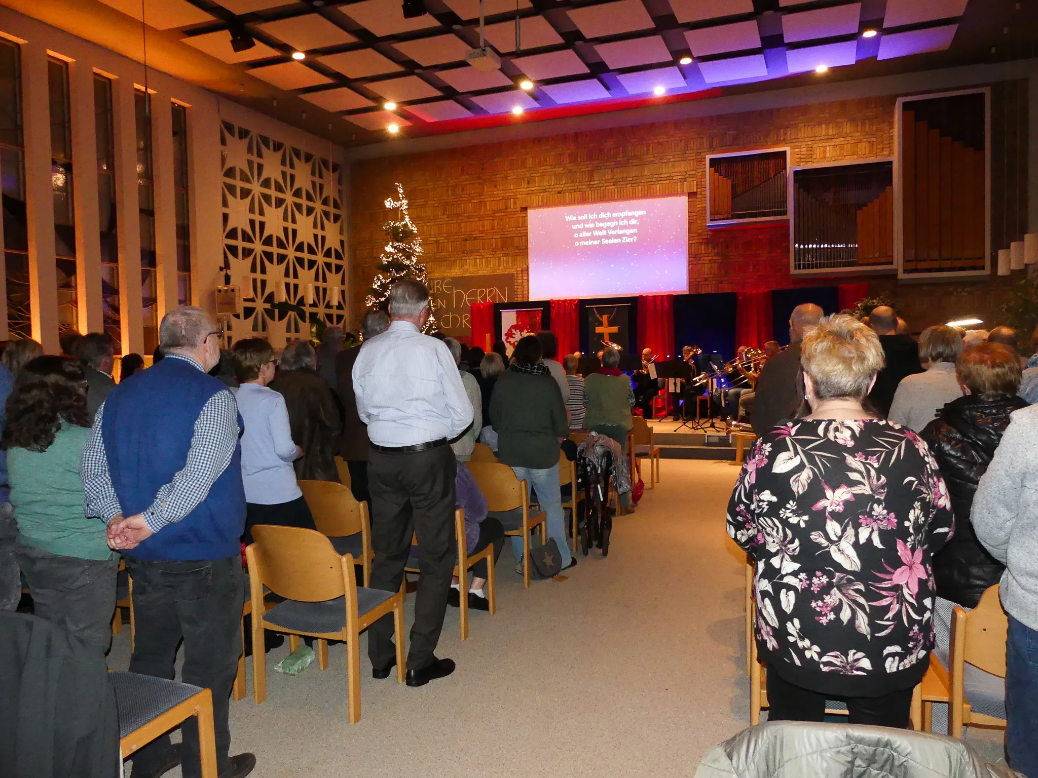 Auf dem Programm standen bekannte kirchliche Weihnachtslieder wie „Tochter Zion“, „All Bells in Paradise“ oder „Wie soll ich dich empfangen“. Die harmonischen Klänge der Instrumente, begleitet von der Orgel, erfüllten den Raum und sorgten für eine feierliche Atmosphäre.