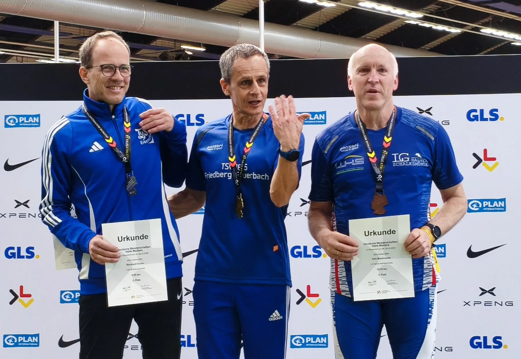 Damit wiederholte er seine Platzierung aus dem Vorjahr, als er - damals noch in seinem letzten M55-Jahr - mit 10,29 Sekunden ebenfalls den dritten Platz belegt hatte. Über die niedrigeren M60-Hürden, die zudem 50 Zentimeter enger zusammenstehen, konnte er sich also um eine Zehntelsekunde verbessern und sicherte sich im Feld der neun Starter wieder eine Medaille.