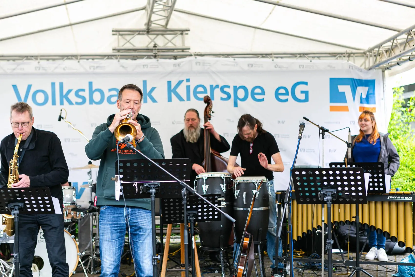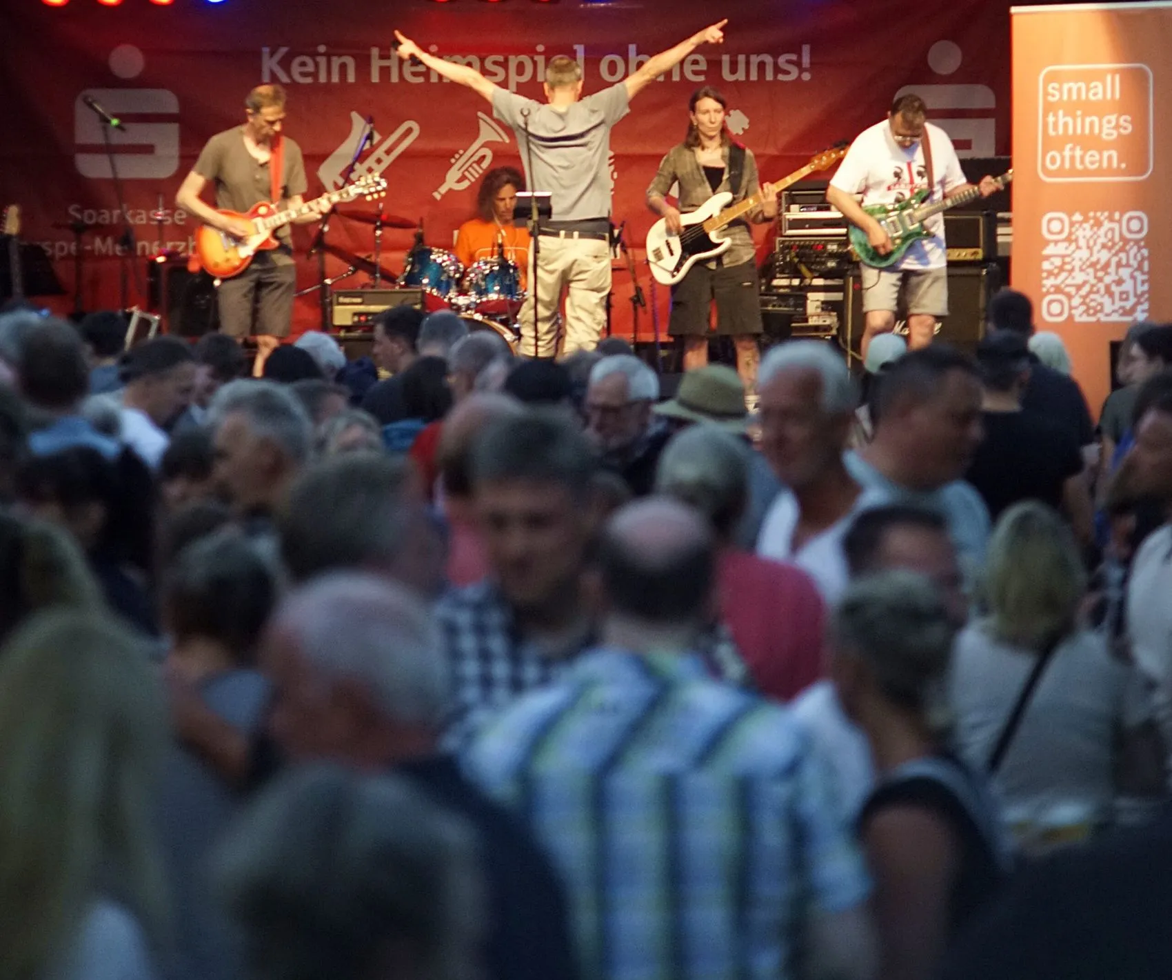 15. Juni: Es wäre kein Festival im Sauerland, wenn nicht auch etwas im Regen getanzt würde. Pünktlich zum Start um 18 Uhr setzt am Kiersper Rathaus der Regen ein. Doch die Abkühlung nach einem schwülheißen Sommertag mindert die Stimmung beim Musikfestival „Am Rathaus rappelt’s“ nicht. Ganz im Gegenteil: Das Publikum feierte die Bands und Interpreten und die wiederum gaben auf der Bühne ihr Bestes und lieferten richtig ab.