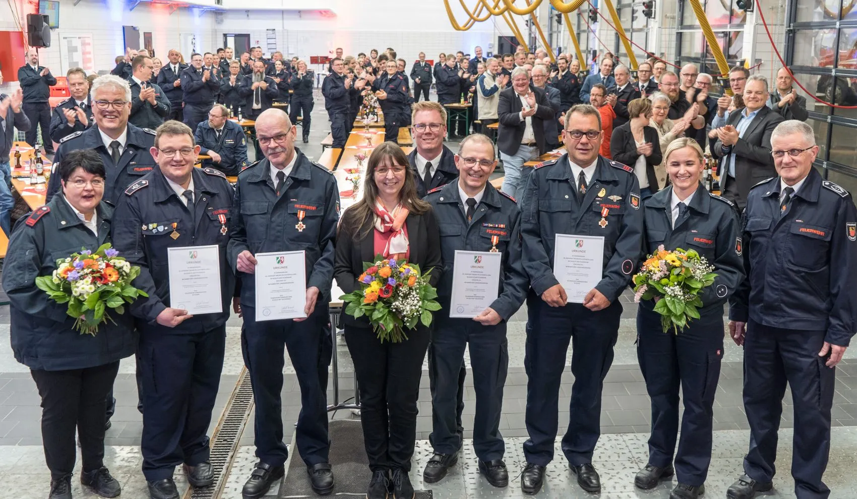 30. März: Vier Stunden dauert der Stadtwehrappell in Kierspe. Die Feuerwehr erfährt viel Dank und Anerkennung für die geleistete Arbeit beim Großbrand vor wenigen Tagen, bei dem mehr als 70 Menschen ihr Zuhause verloren.
