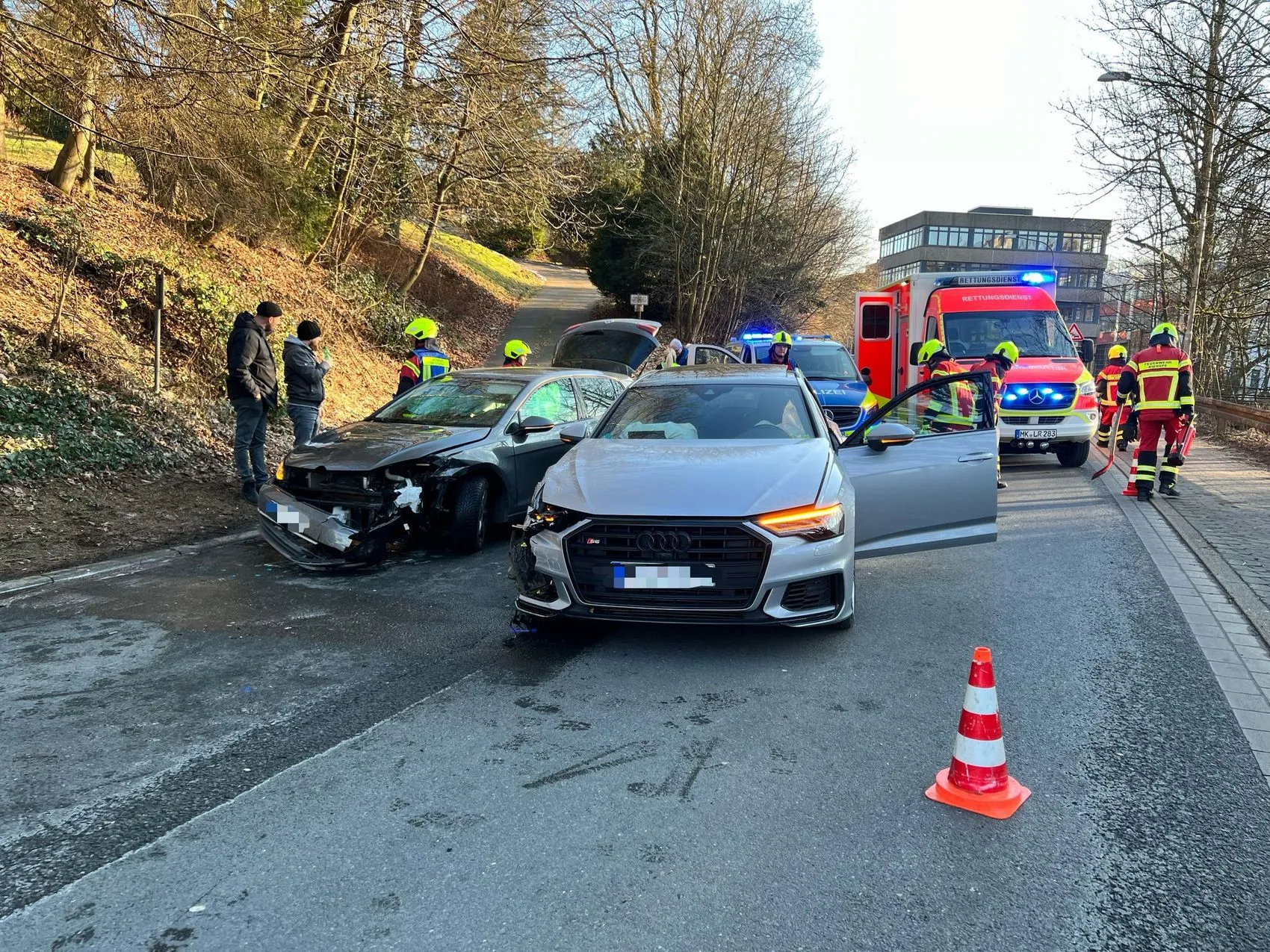 17. Februar: Auf der B54 im Bereich der Kreuzung Tannenbaum kracht es am Montagnachmittag. Das E-Call-System eines der Fahrzeuge alarmierte die Einsatzkräfte, darunter der Löschzug Stadtmitte der Freiwilligen Feuerwehr Kierspe. Zwei Fahrzeuge waren frontal miteinander kollidiert. Die Fahrer blieben unverletzt.