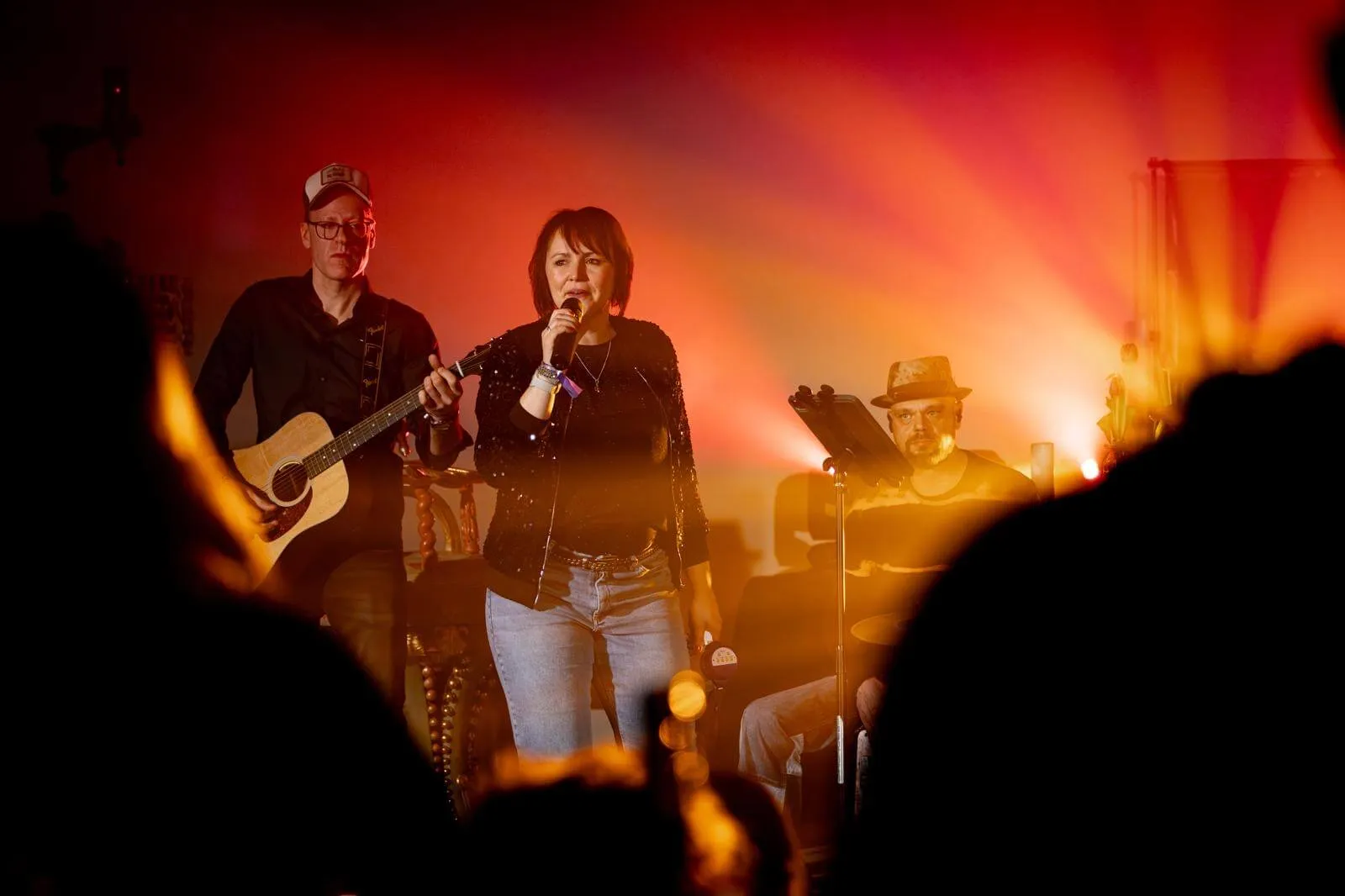 Musikalisch begann der Abend ruhig und intensiv: Zunächst stand der Gitarrist allein auf der Bühne, später erklang Julia Peuß´Gesang von der Empore — nur begleitet von einer Gitarre. Mit dem dritten Lied kam dann die komplette Band zusammen. Gesang, Gitarre, Bass und Cajón sorgten für wachsende Dynamik, zwischendurch gab es persönliche Worte und eine emotionale Rede. Auch die neunjährige Tochter des Ehepaars setzte sich ans Klavier, später folgte ein gemeinsamer Auftritt mit Pianist Martin Kaptein. Das große Finale des Benefizkonzerts mit „Angels“ von Robbie Williams sorgte mit vielen leuchtenden Taschenlampen dann nochmals für eine besondere Stimmung im Kirchensaal.
