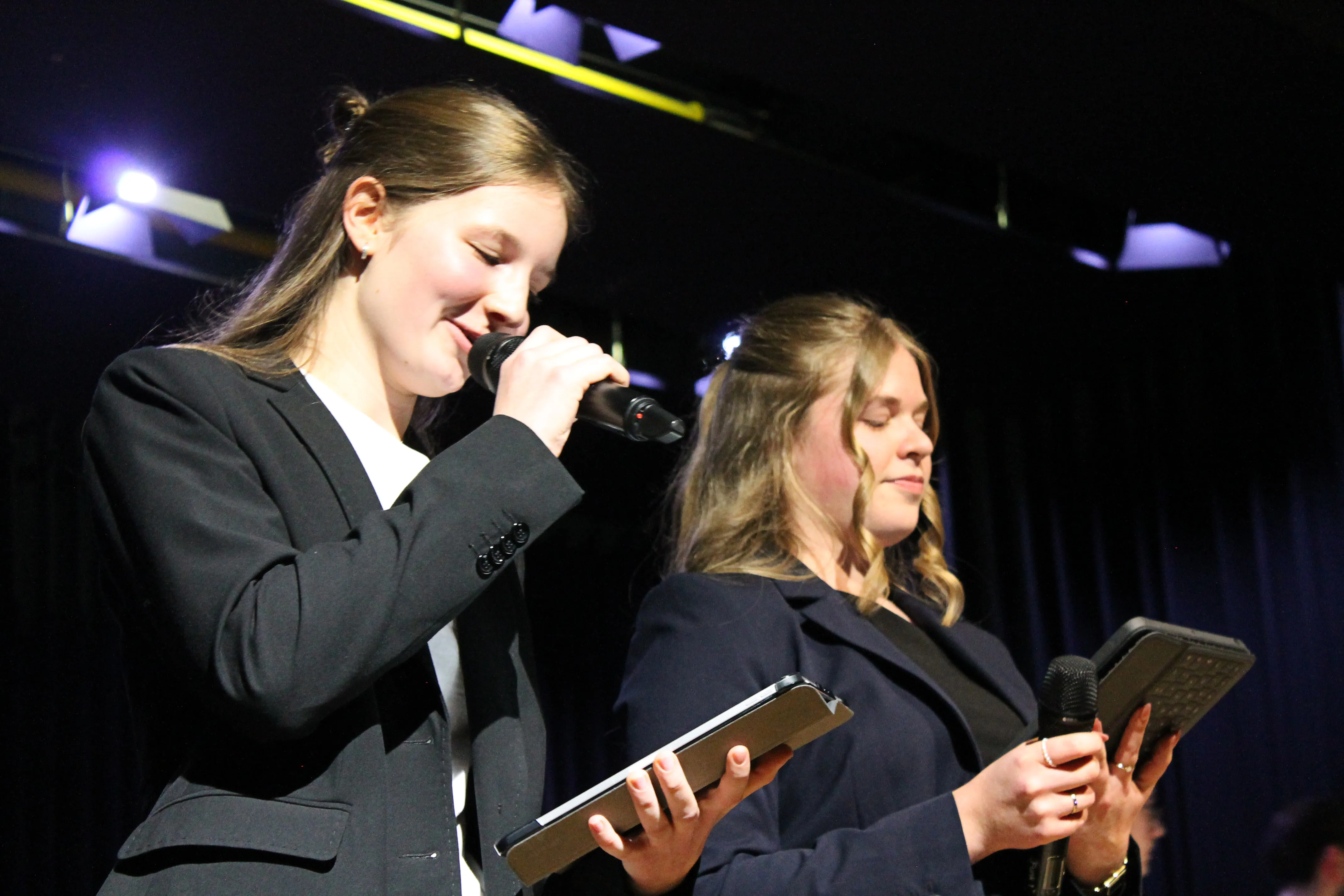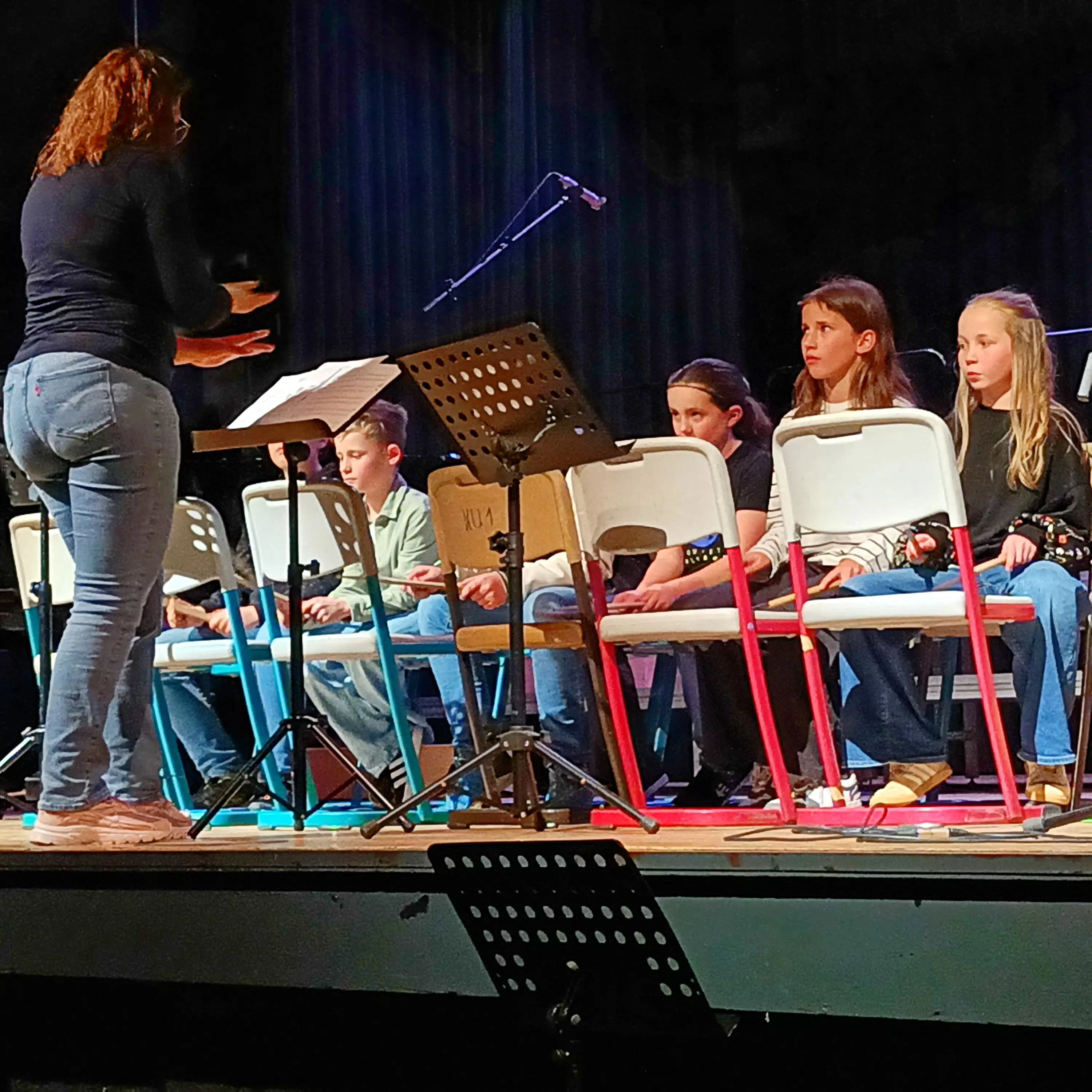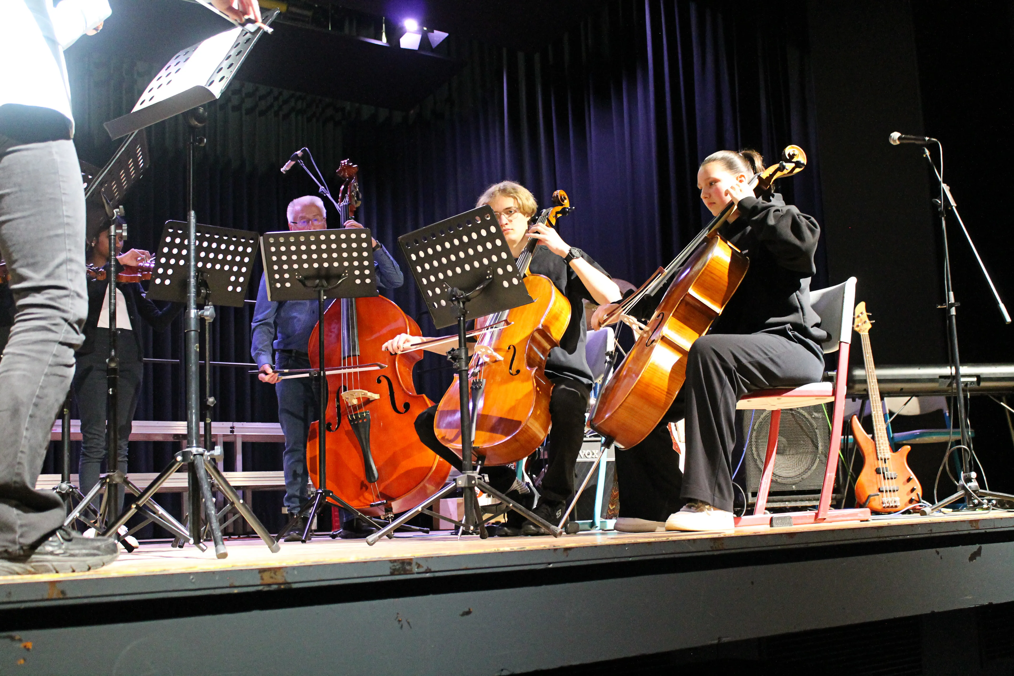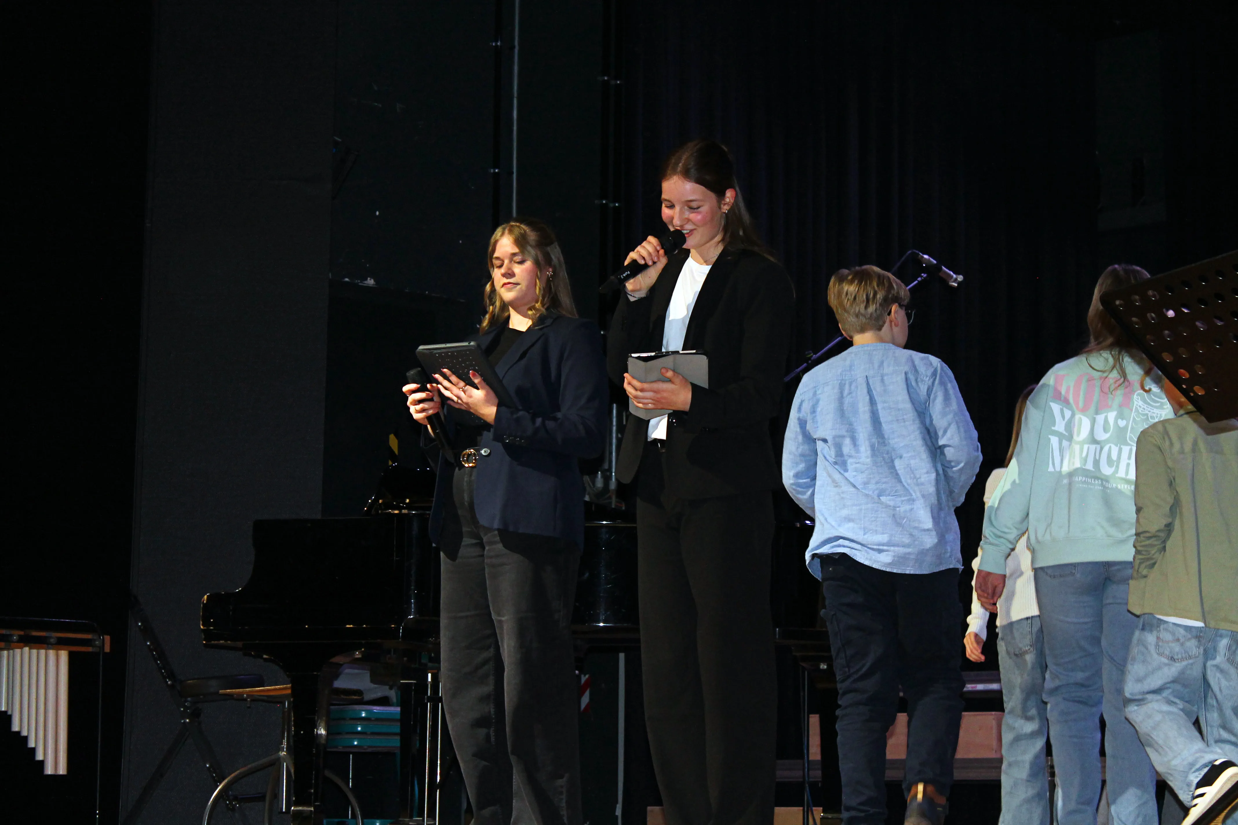 Das erste Musikstück der Band mit Lena (Gitarre und Gesang) und Iven (Gitarre) war „I Can See You“ von Taylor Swift. Danach hatte der Unterstufenchor unter der Leitung von Antje Bauer mit „Major Tom“ und „Tanz der Moleküle“ die Bühne für sich. Die zur Erprobungsstufe gehörende Percussion-AG präsentierte das Stück „Day One“ von Hans Zimmer. Nadine Busch leitete diese Vorführung und die AG.