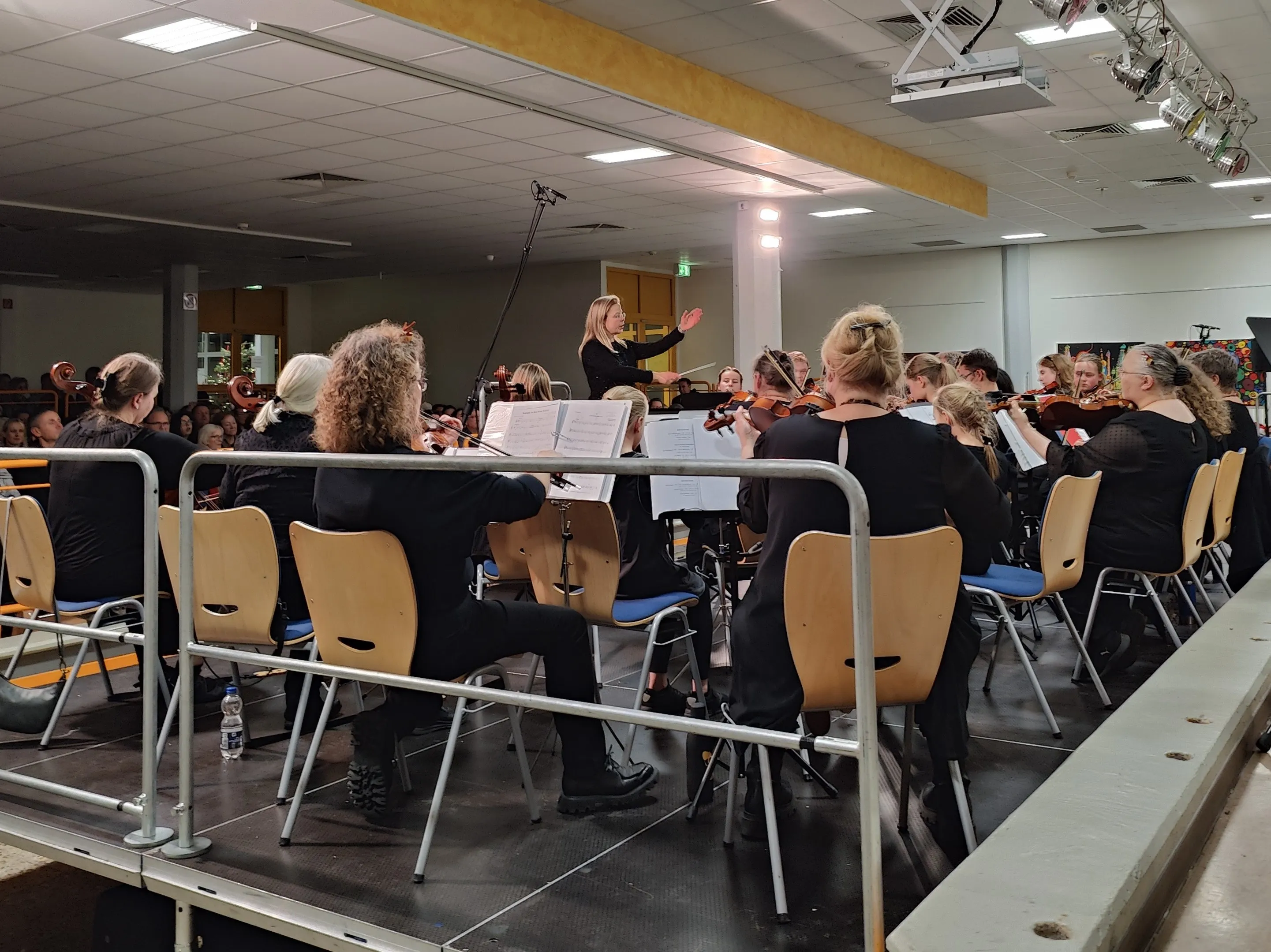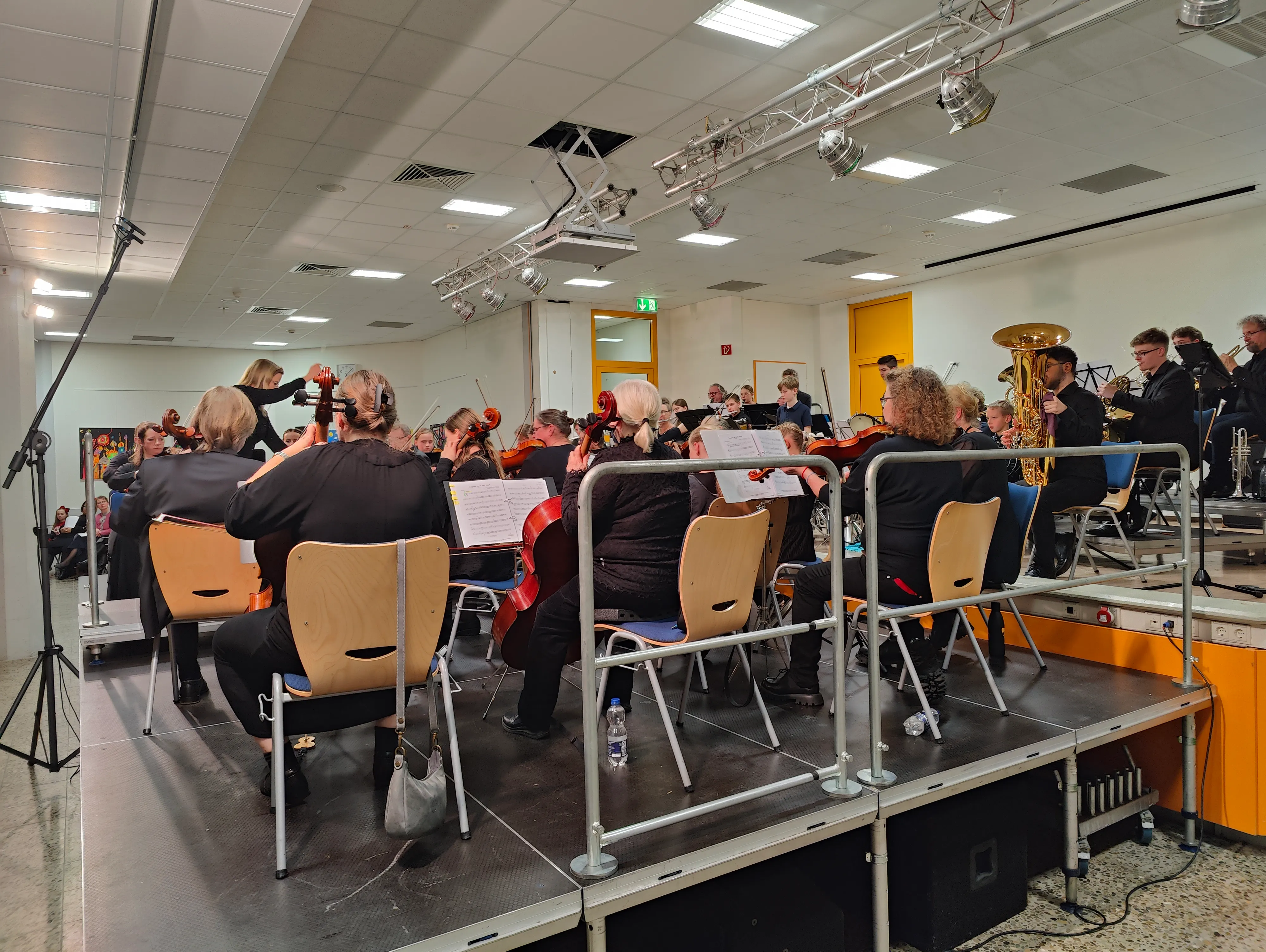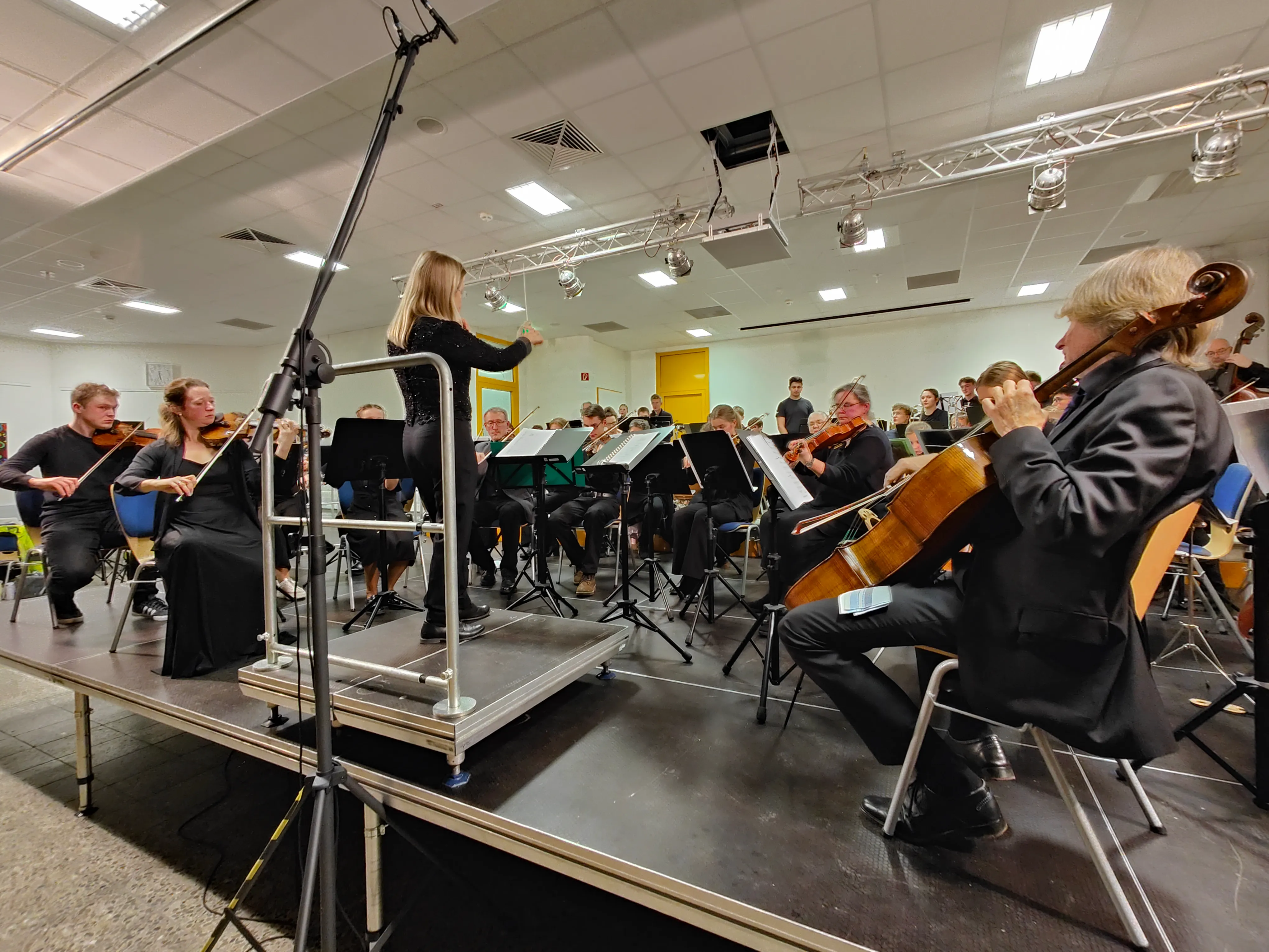 Wegen der Sanierung der Stadthalle erfolgte die Verlegung es Konzerts in die Rothensteinschule. Der Bühnenraum der Schule bietet sich gut an, da er genug Platz für alle 45 Orchestermitglieder bietet. Neben dem Orchester der Musikschule Volmetal wirkte erneut ein 19-köpfiger Auswahlchor unter der Leitung von Aleksandra Miladinovic mit.