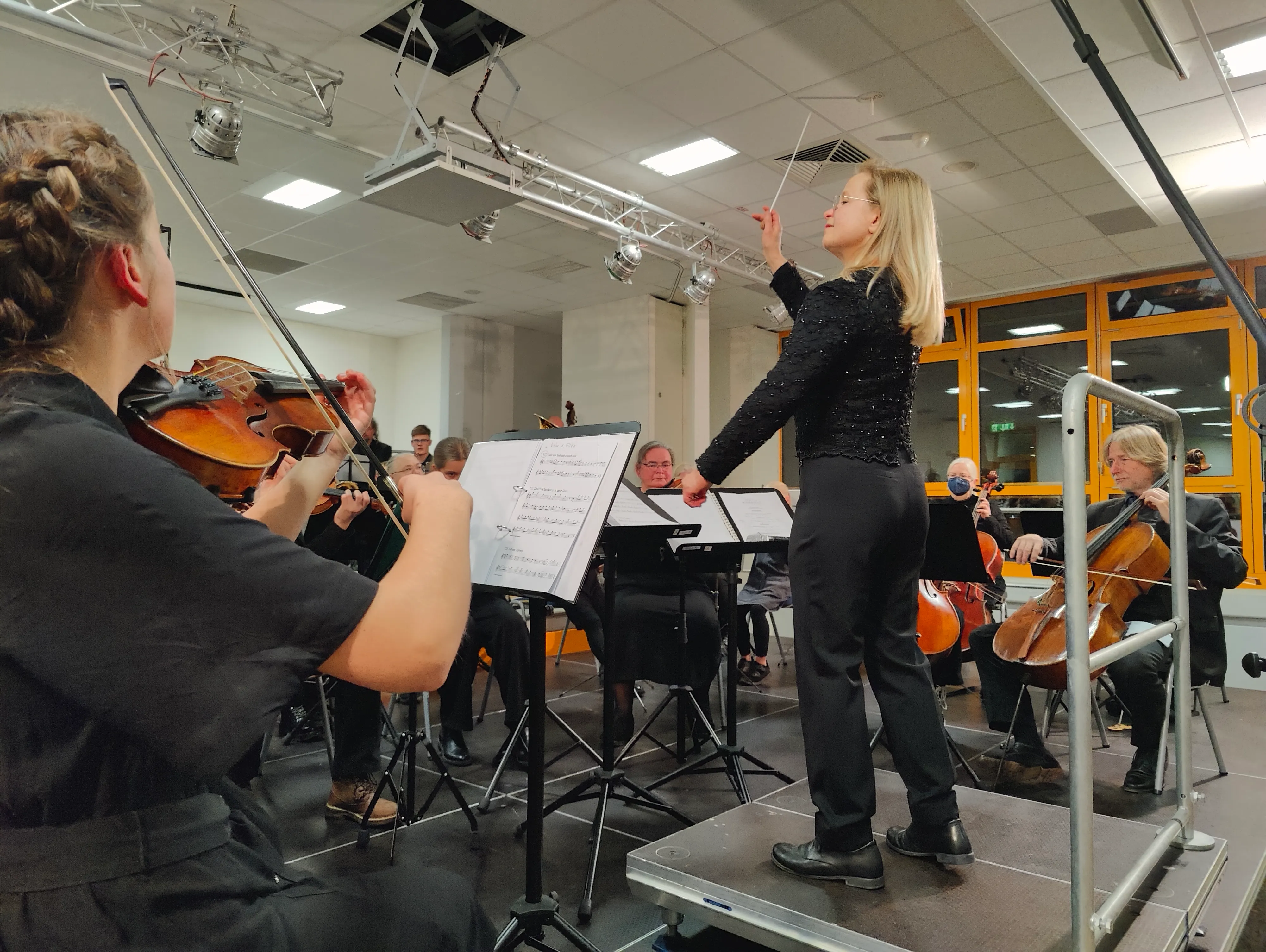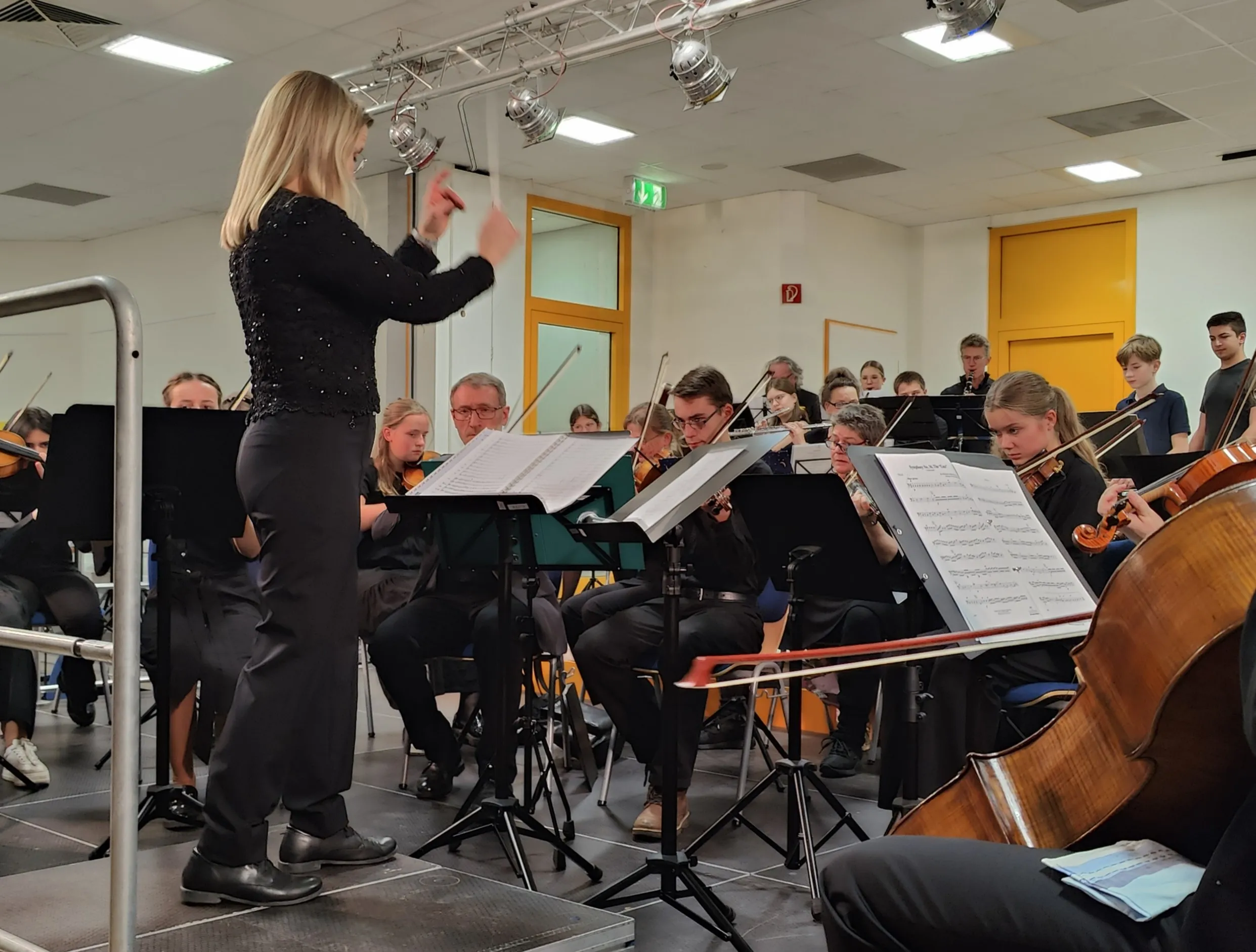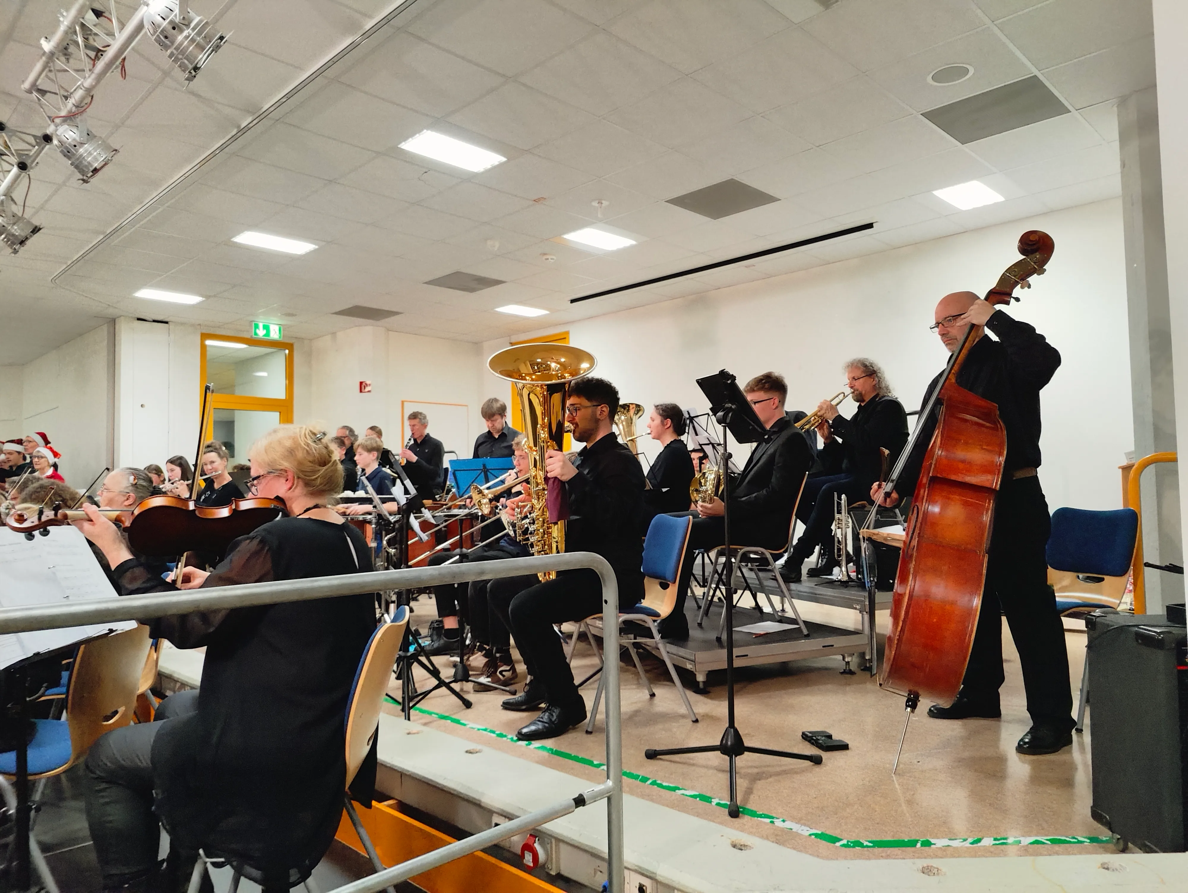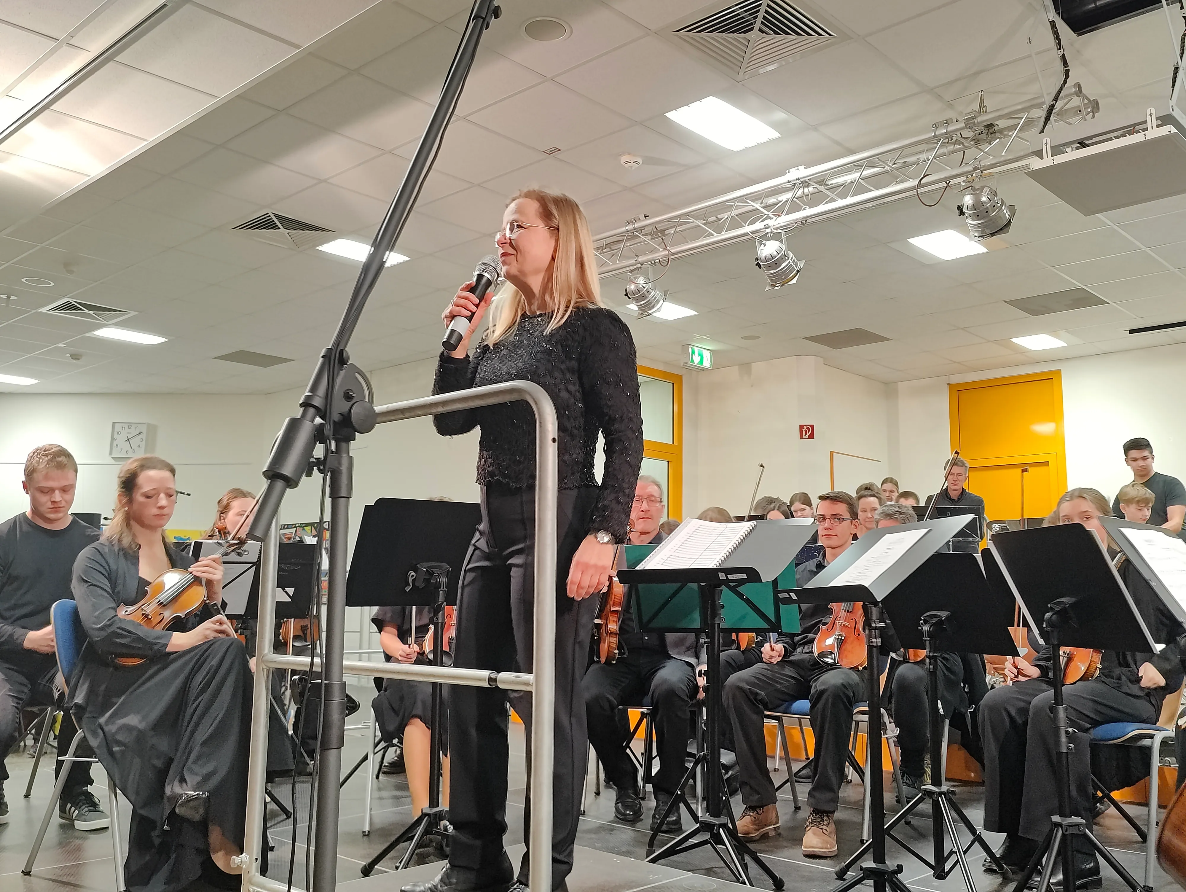 Musikschulleiterin Cosima Breidenstein organisierte und leitete die Veranstaltung. „Ich freue mich sehr, dass wir das diesjährige Winterkonzert am Nikolaus-Tag spielen. Das ist ein perfekter Moment, um Lieder wie 'Lasst uns froh und munter sein' zu spielen“, freute sich Breidenstein, die anmerkte: „Das aktuell jüngste Orchestermitglied ist gerade mal acht Jahre alt.“