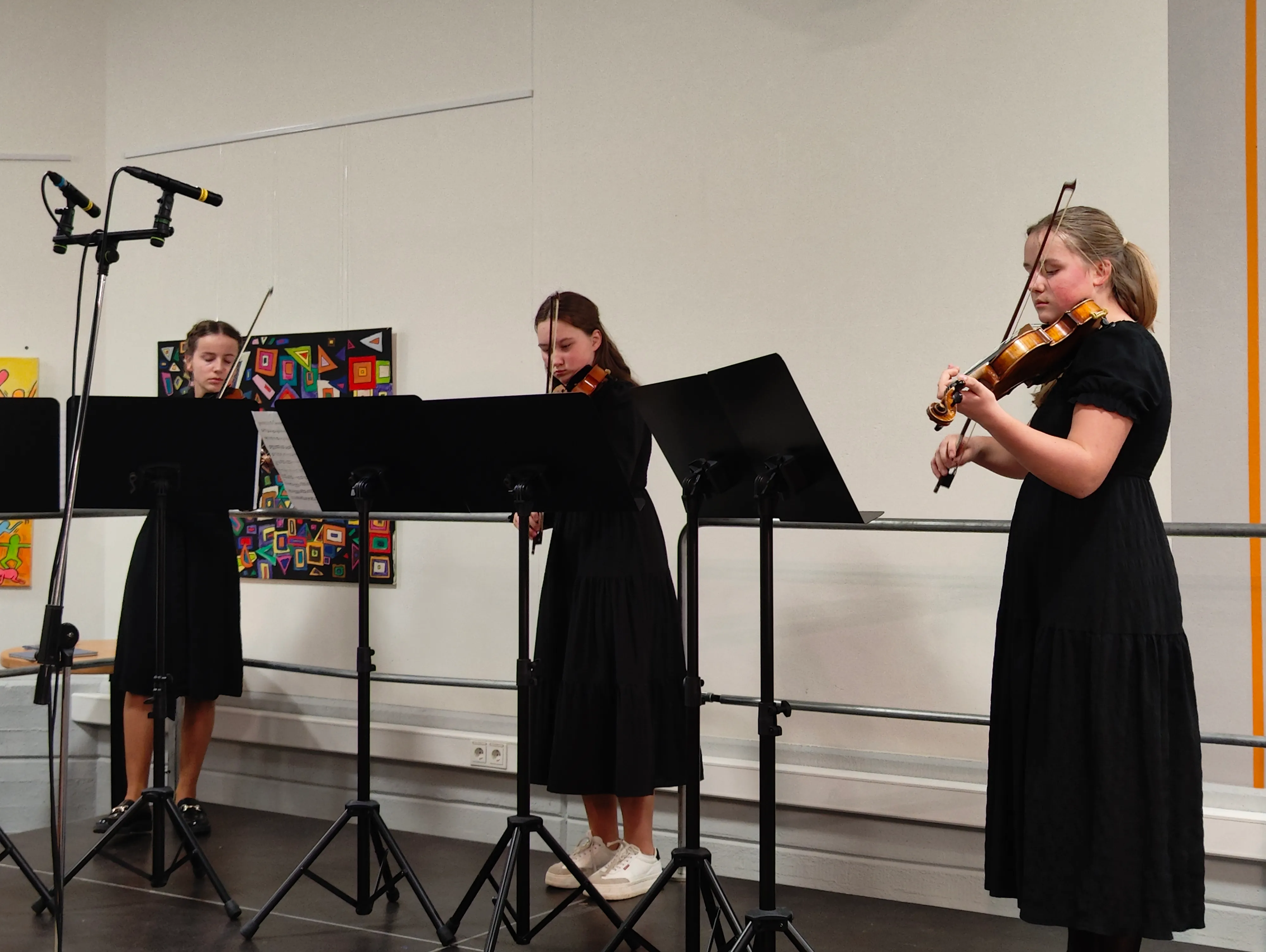 Weiter ging es mit einem Violinentrio, bestehend aus Evnika Reimer, Emily Giesler und Emily Reimer. Die jungen Talente bereiten sich aktuell auf den Wettbewerb „Jugend musiziert“ vor. Das Trio präsentierte Stücke von James Hook und Ernst Spieß.