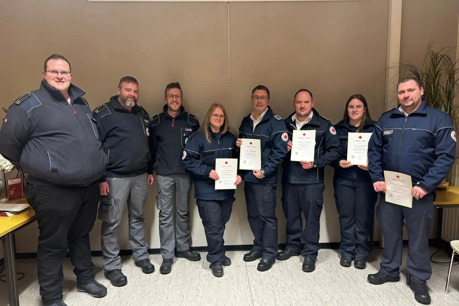Die Leitung der Sanitäts-Gruppe übernehmen als Gruppenführer Tobias Maus und Laura Schmidt. Ernennungsurkunden zum Truppführer erhielten Marvin Heß und Marcel Rittinghaus. Die Funktion des Truppführers Verpflegung übernimmt Alexander Schwarzat.