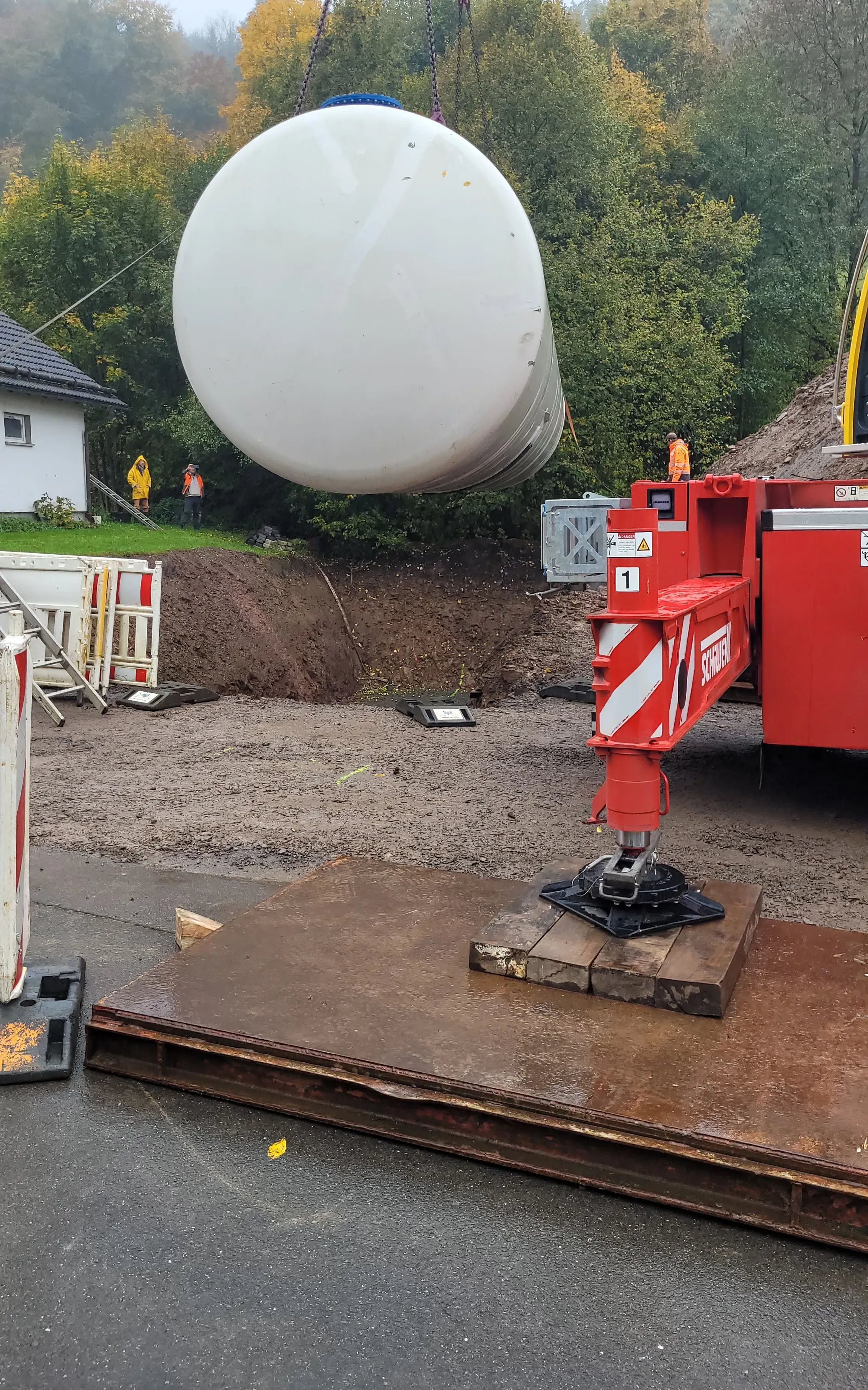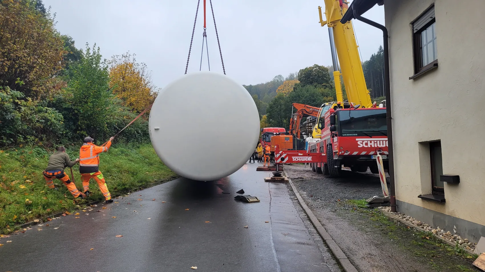 In der zweiten Oktoberwoche wurde im Ortsteil Bubbecke zwischen den Hausnummern 4 und 5 ein neuer Löschwassertank erfolgreich eingelassen, freut sich die Gemeinde Herscheid in einer Presseinformation. Der unterirdische Tank hat einen Durchmesser von rund 3,20 Metern, ist etwa 15 Meter lang und fasst rund 100 Kubikmeter Löschwasser. Mit einem Gewicht von rund 19 Tonnen sei der Einbau ein anspruchsvolles Unterfangen gewesen, das präzise Koordination und technisches Geschick erforderte.