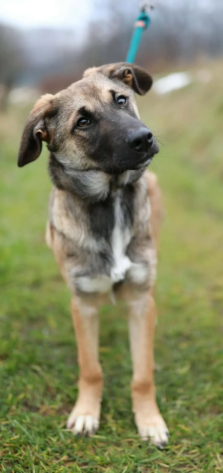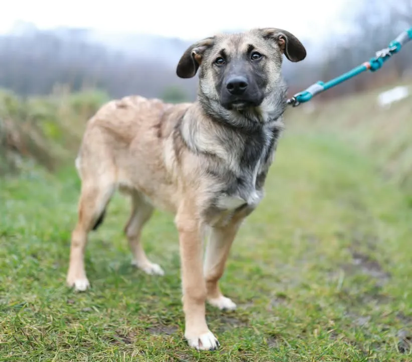 Mit aktuell rund 46 Zentimetern Schulterhöhe und etwa 15 Kilogramm Gewicht steckt Gonzo noch mitten im Wachstum. Sein Erscheinungsbild lässt vermuten, dass möglicherweise Anteile von Schäferhund oder Herdenschutzhund in ihm stecken — und damit auch ein wachsamer Charakter, der in die richtigen Bahnen gelenkt werden möchte.
