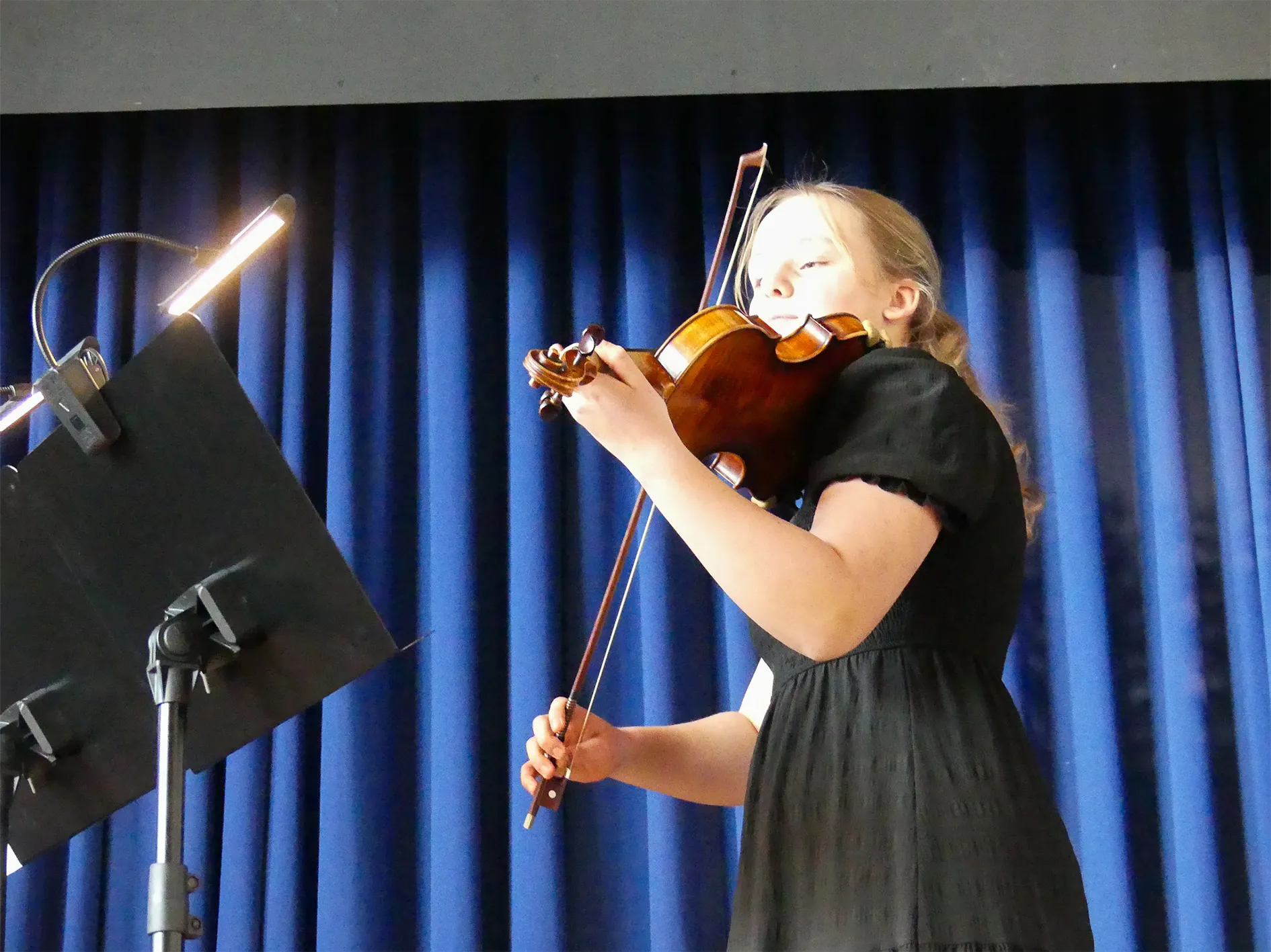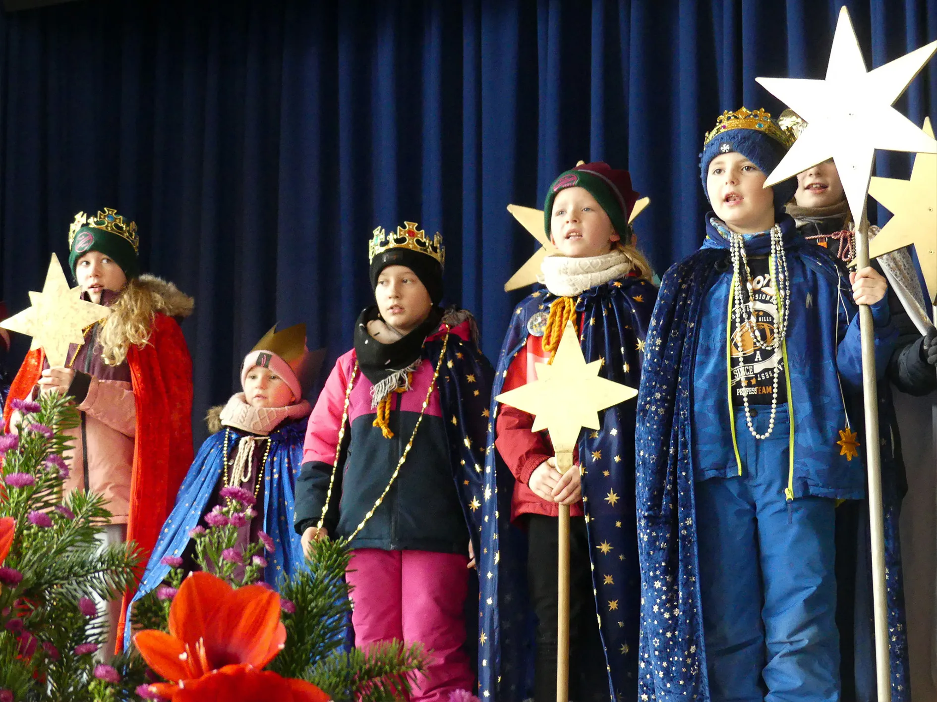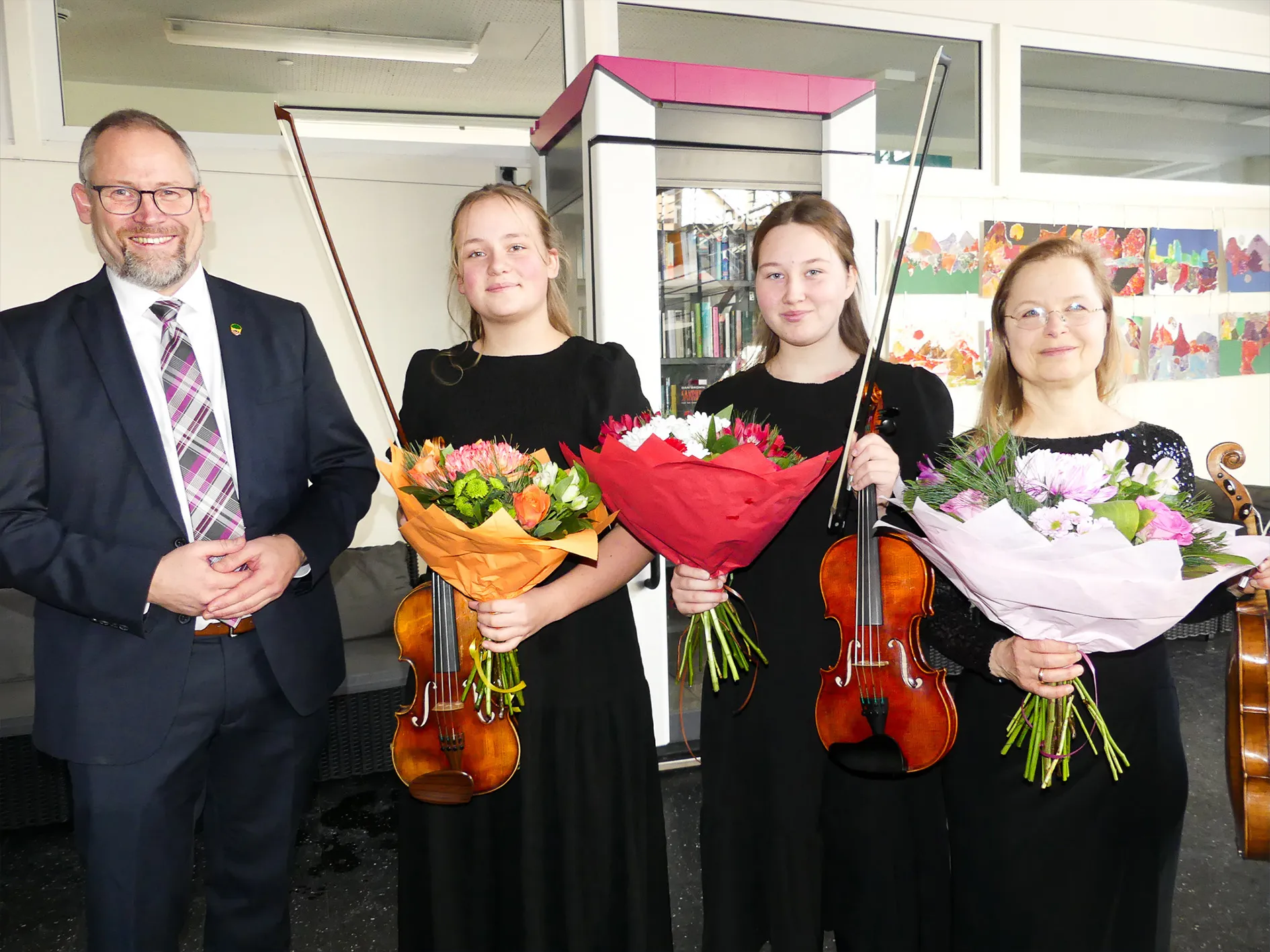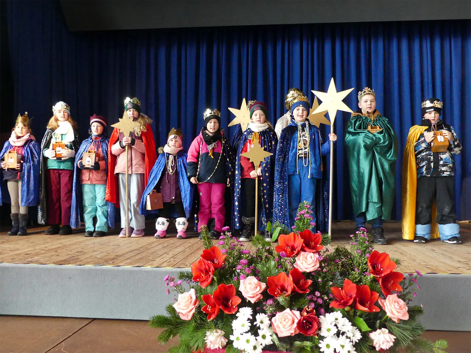 Der Fanfarencorps der Landsknechte Halver eröffnete die Veranstaltung. Abgerundet wurde das Rahmenprogramm durch die Sternsinger der katholischen Kirche sowie durch das Violinentrio der Musikschule Volmetal — bestehend aus Emily Giesler, Emily Reimer und Musikschulleiterin Cosima Breidenstein. Ein besonderer Höhepunkt war der von Andrea Reich zusammengestellte Bildrückblick auf das Jahr 2025. Auch Reiner Klausing, Schulleiter der Humboldtschule, begrüßte die Gäste mit einer kurzen Ansprache.