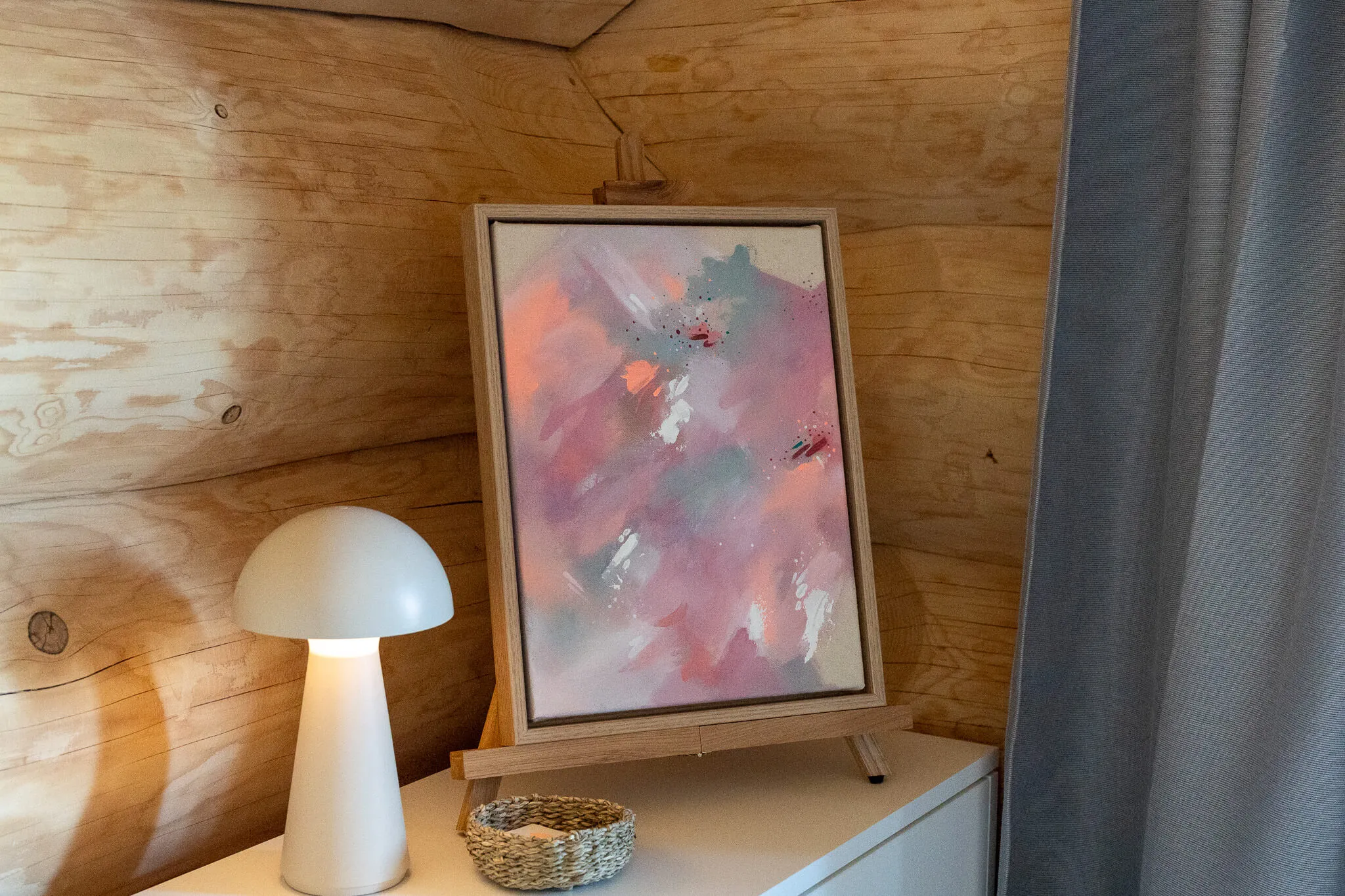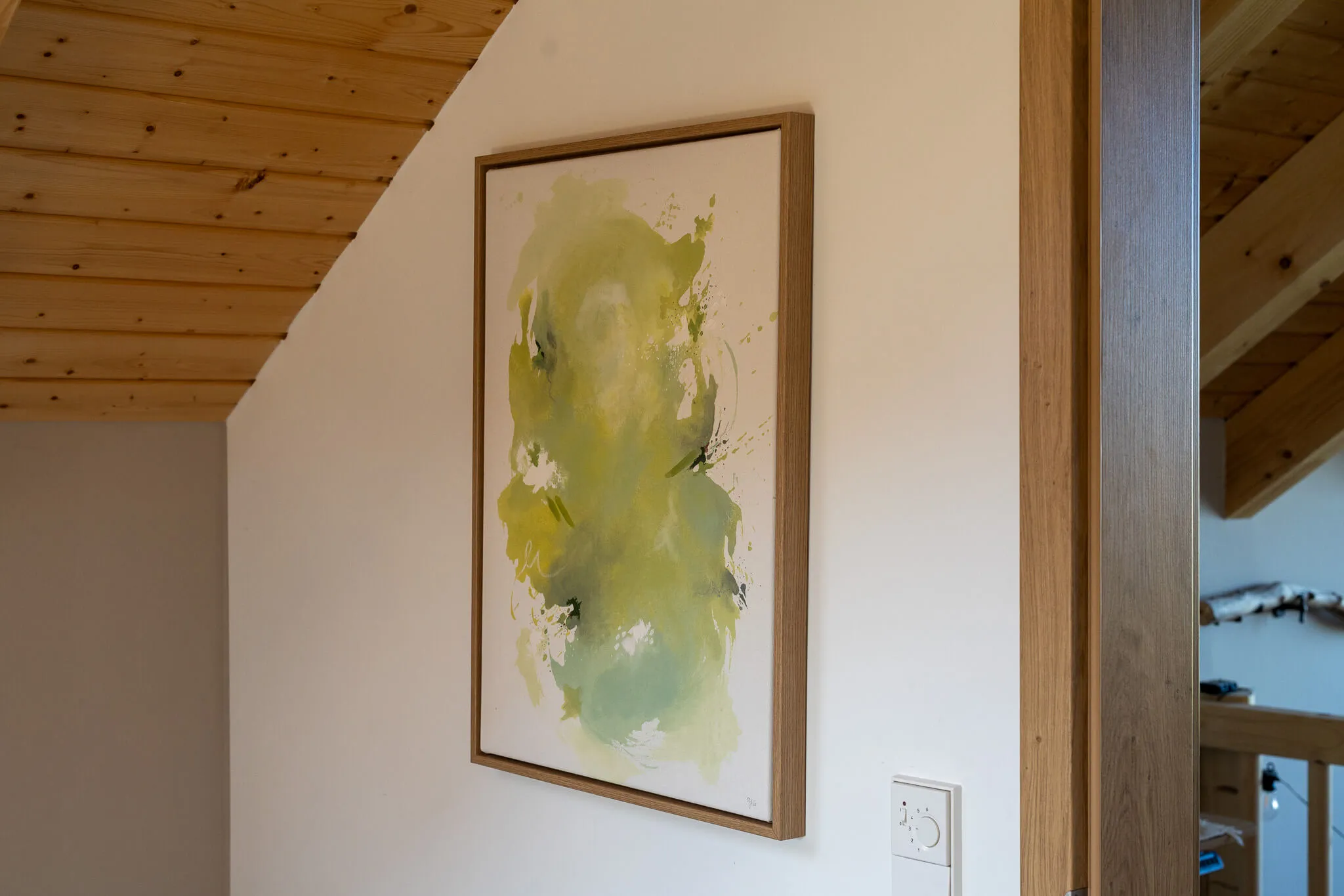 Auch unabhängig von den Workshops ist ihre Kunst vor Ort präsent: In den Räumen des Chalets hängen zahlreiche ihrer Werke, die Teil des Gesamtkonzepts sind – und bei Interesse auch erworben werden können.