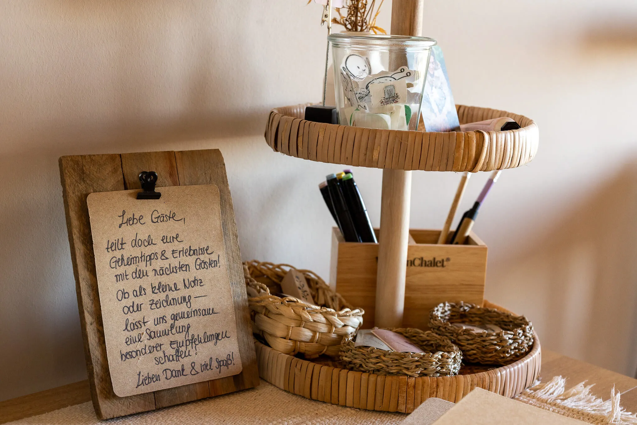 Gäste des Chalets können während ihres Aufenthalts an rund dreistündigen Kreativ-Workshops teilnehmen. Inhalte und Materialien bestimmen die Teilnehmer selbst: „Ob bemalte Leinwände oder Baumwollstoffe, entscheiden die Gäste“, erklärt Anca Schulte. Sie begleite den künstlerischen Prozess und vermittle verschiedene Techniken.