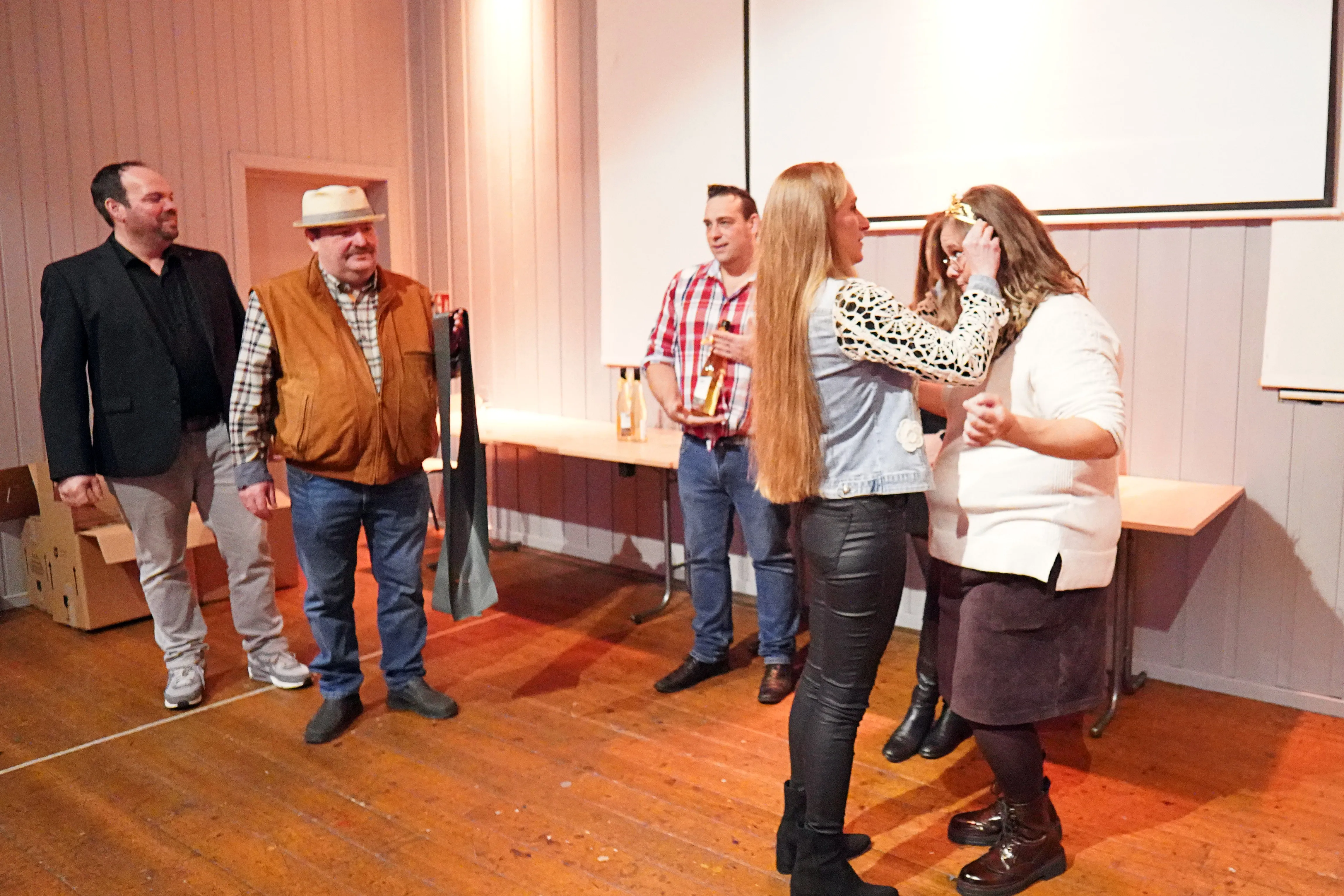 Bei Blindverkostung, Wissen zu Weinanbaugebieten und dem Falten von Weinkartons setzte sich knapp vor Anna Grelli zum Schluss Nina Trimpop durch und bekam so die Krone von Susanne Fellmer aufgesetzt. Man sah ihr die Freude und den Stolz über den Titel der Weinkönigin förmlich an. Seit Beginn dieser Veranstaltung vor drei Jahren war es ihr Wunsch, diesen Titel für ein Jahr führen zu dürfen. Zu den ersten Gratulanten gehörten Winzer Markus Fuhrmann, Vorsitzender des Schützenvereins Landemert Markus Laurenz und natürlich die Vorjahresweinkönigin Jana Bibos, die ihre Krone mit etwas Wehmut abgab.