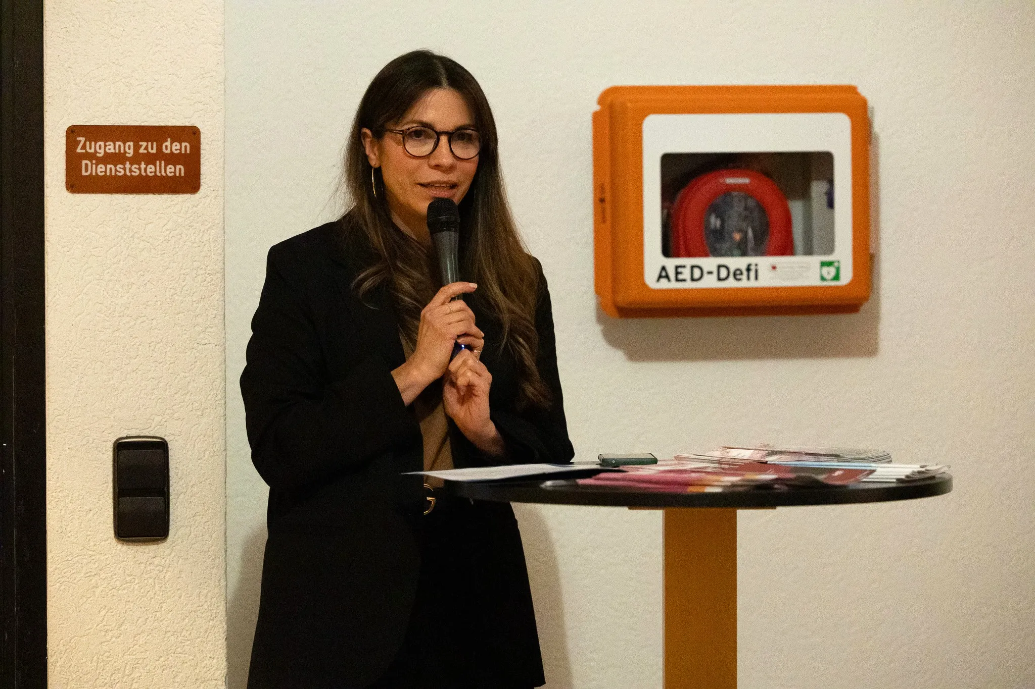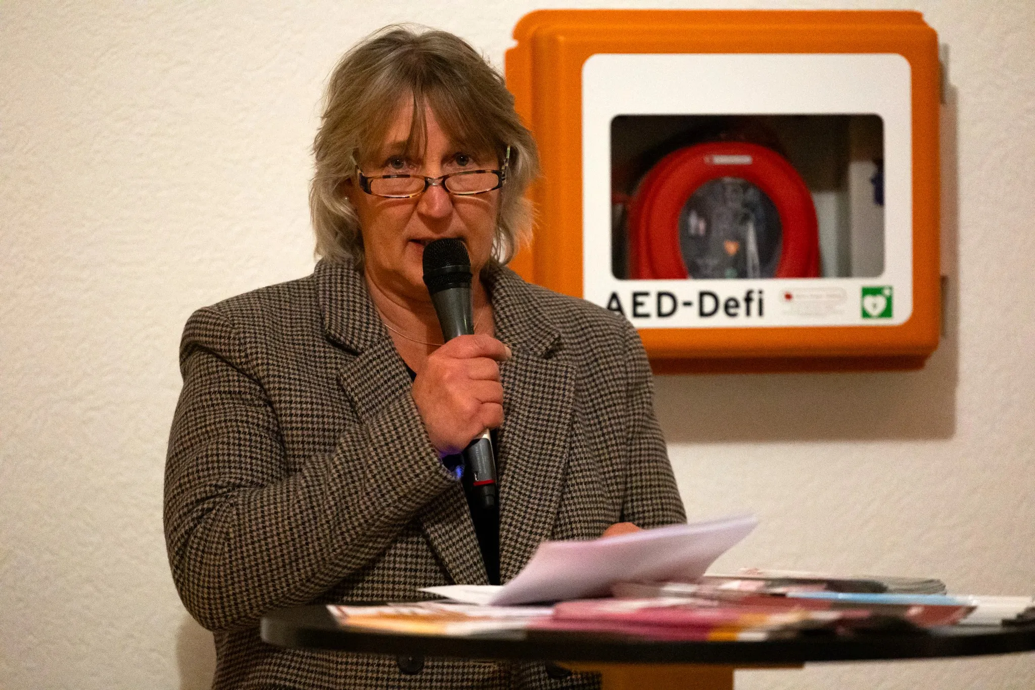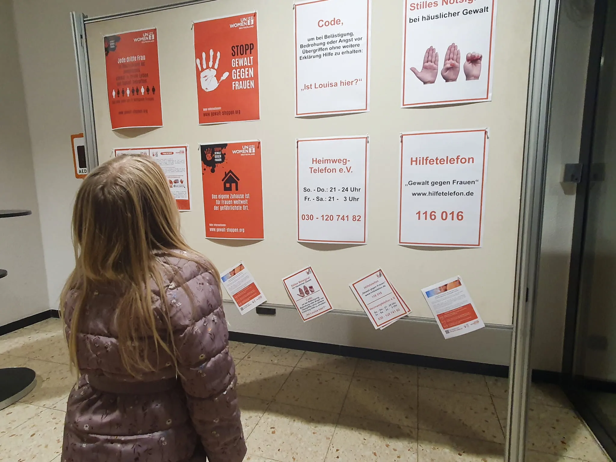 "Einfach mal mitmachen, trotz der kurzen Vorlaufzeit" — unter diesem Motto, erklärte Bürgermeister Christian Breddermann, habe man die Aktion sehr spontan ins Leben gerufen. Umso erfreuter zeigte er sich darüber, dass "trotz des schlechten Wetters und der kurzfristigen Ankündigung", rund 30 Interessierte den Weg ins Foyer des Rathauses fanden. Sein besonderer Dank gebührte der Gleichstellungsbeauftragten der Gemeinde, Sabrina Knappe, sowie Linda Weiland und Bernd-Martin Leonidas, die mit ihm gemeinsam die Aktion organiserten. "Tragen sie die Botschaft dieses Abends in die Welt nach draußen", appellierte Breddermann abschließend und übergab im Anschluss das Mikrofon an Maren Monsonis, die stellvertretende Gleichstellungsbeauftragte der Gemeinde.