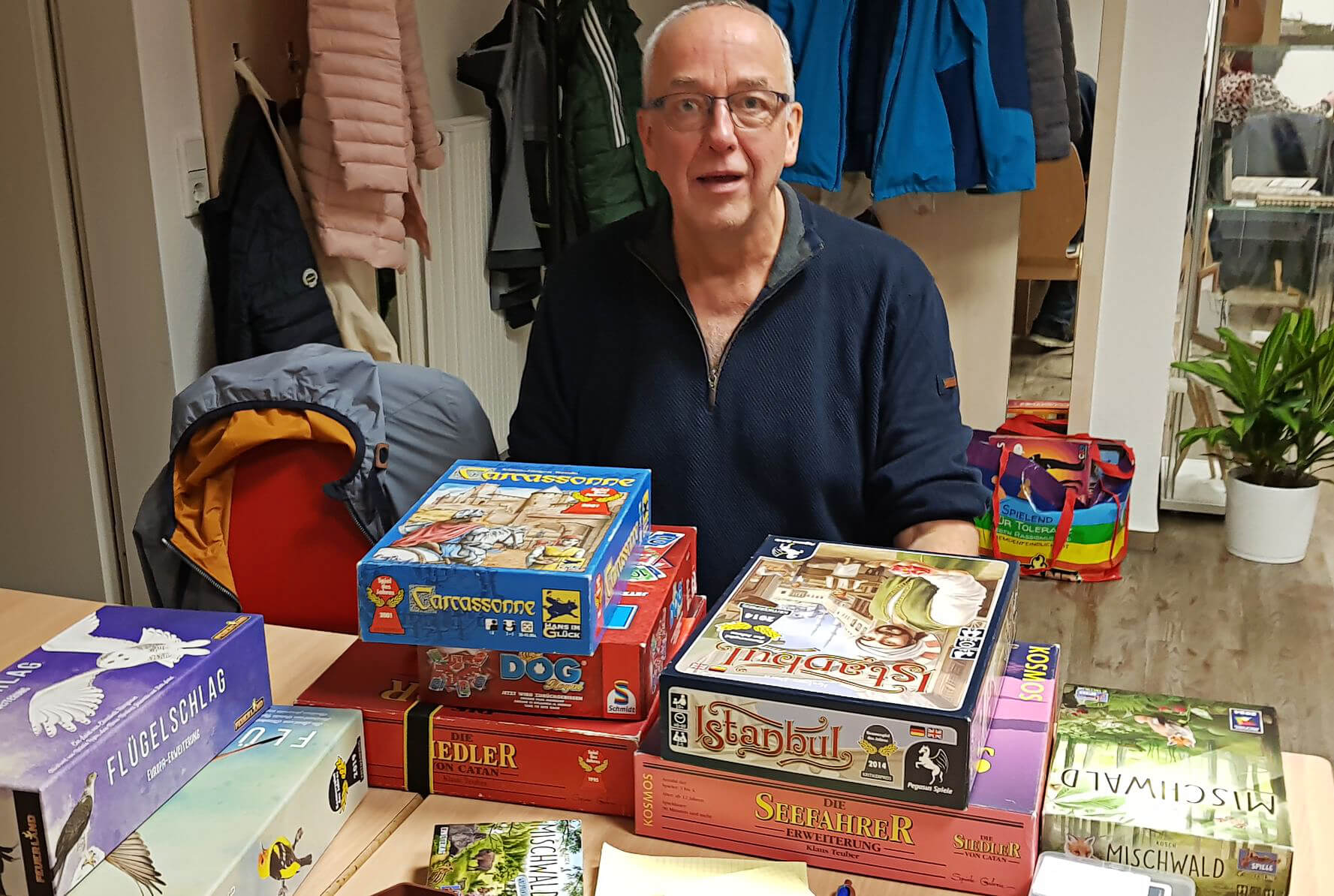 Ungezwungene Runde, ohne Vereinsbindung, oder Verpflichtung. Christoph Nowak (63) spielt gerne Brettspiele und wollte das Hobby „im Vorruhestand intensivieren“. Vor drei Jahren hatte er sich einer Spielegruppe in Halver angeschlossen und gedacht: „Das kann ich in Meinerzhagen auch machen.“ Er fragte sich durch, wo das machbar sei. In den neuen Räumen in der Meinerzhagener Fußgängerzone bot die AWO ihm die Möglichkeit. Zum Start, vor zwei Wochen, kamen schon mehr als 20 Spielefans. Am Freitagabend, 31. Oktober, waren es mehr als 30 Gäste, denen der Sinn eher nach Spaß als nach Halloween-Grusel stand.