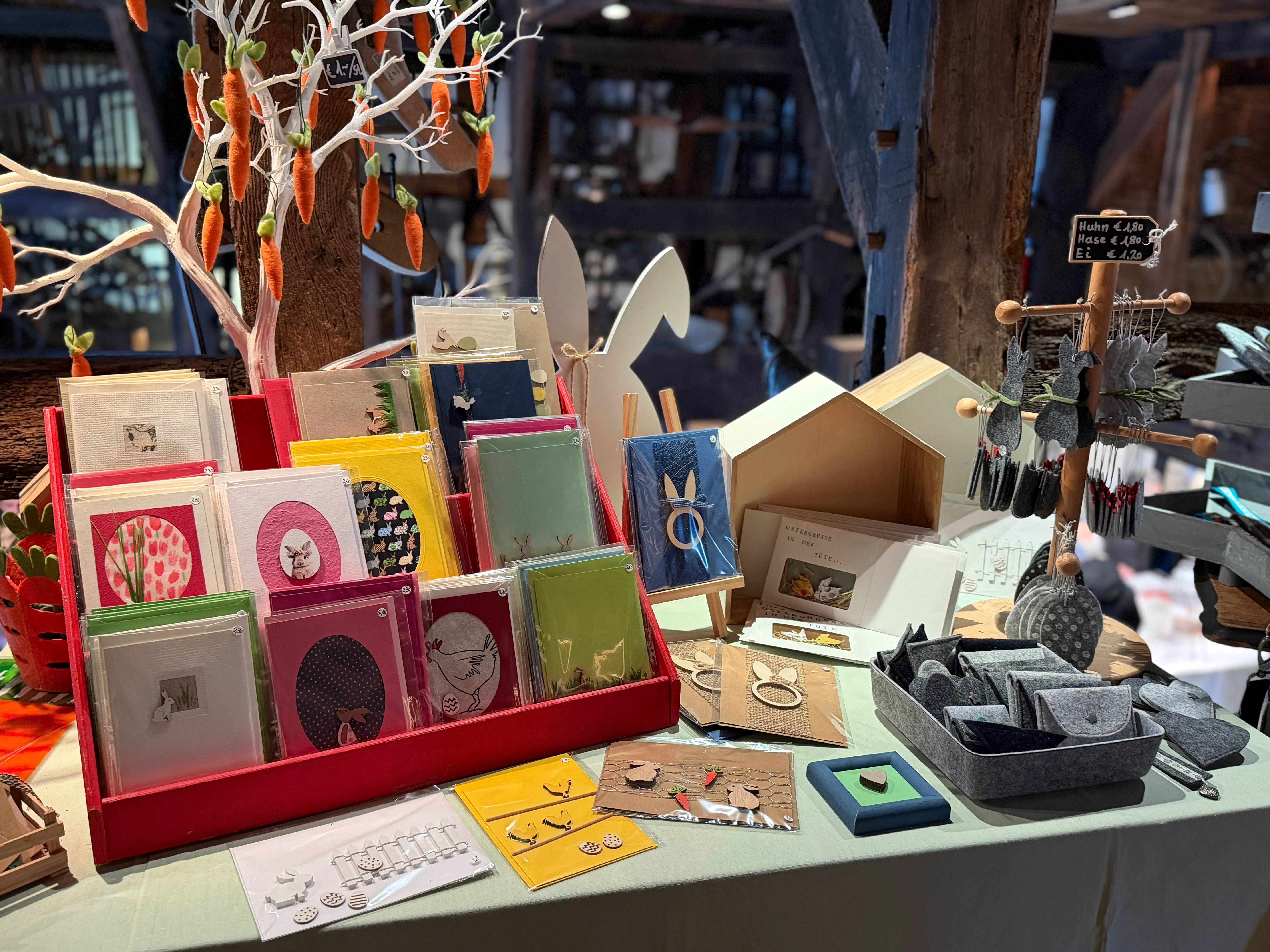 Mehreren hundert Besuchern wurde wieder einiges geboten. So reichte das Angebot von Osterdeko und Blumen von der Breckerfelder Floristin Andrea Breer-Rosin bis hin zu Handarbeiten im dänischen Kreuzstich von Hiltraud Hartmann aus Halver. Unter den Ausstellern war der Schalksmühler Imker Christian Conrad, der neben Honig anbot und über die Asiatische Hornisse informierte. Sybille Bürger war ebenfalls dabei. Unter dem Dach des Bauernhauses bot sie handgemachte Grußkarten, gestrickte Teddybären und Puppenkleidung an.