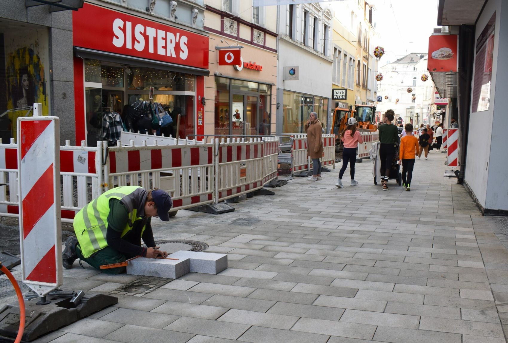 Für den Lieferverkehr bleibt die untere Wilhelmstraße zwischen Sternplatz und Jockuschstraße weiterhin gesperrt. Fußgänger kommen problemlos an der Baustelle vorbei und können alle Geschäfte erreichen.