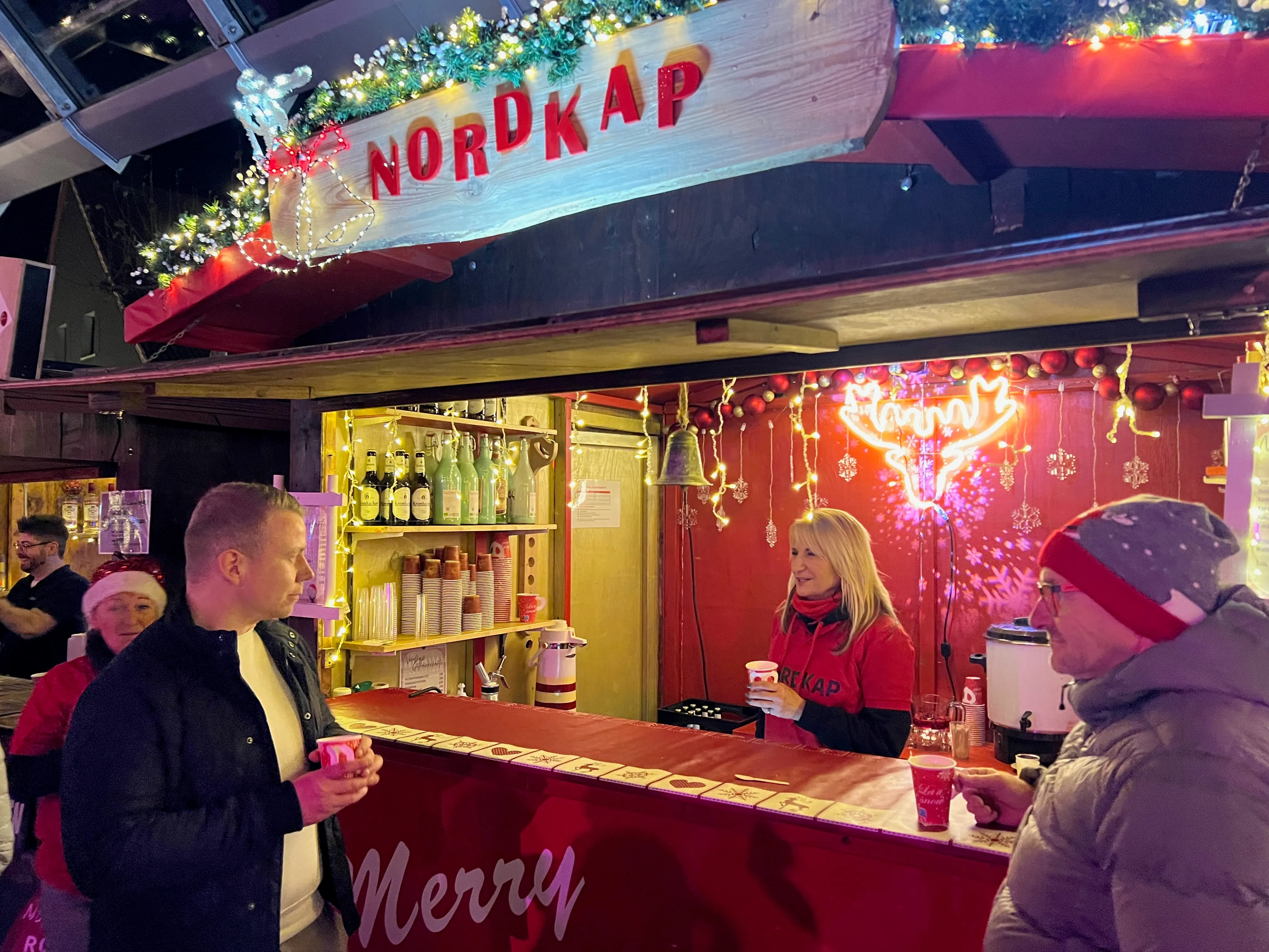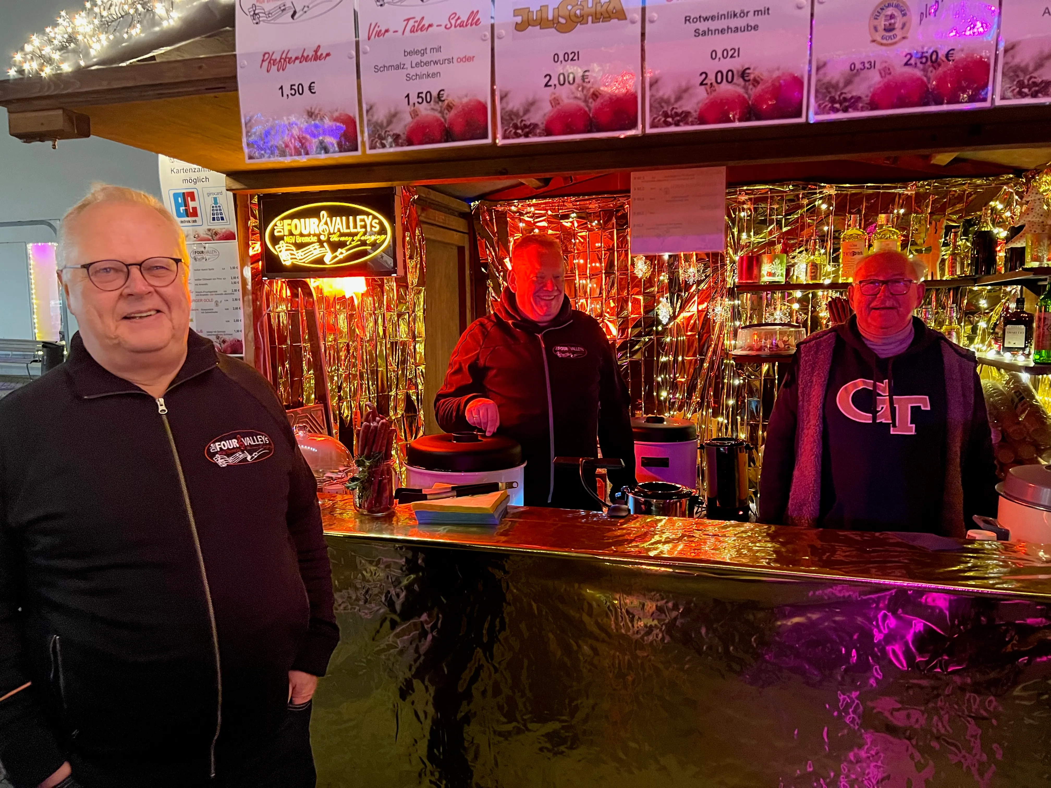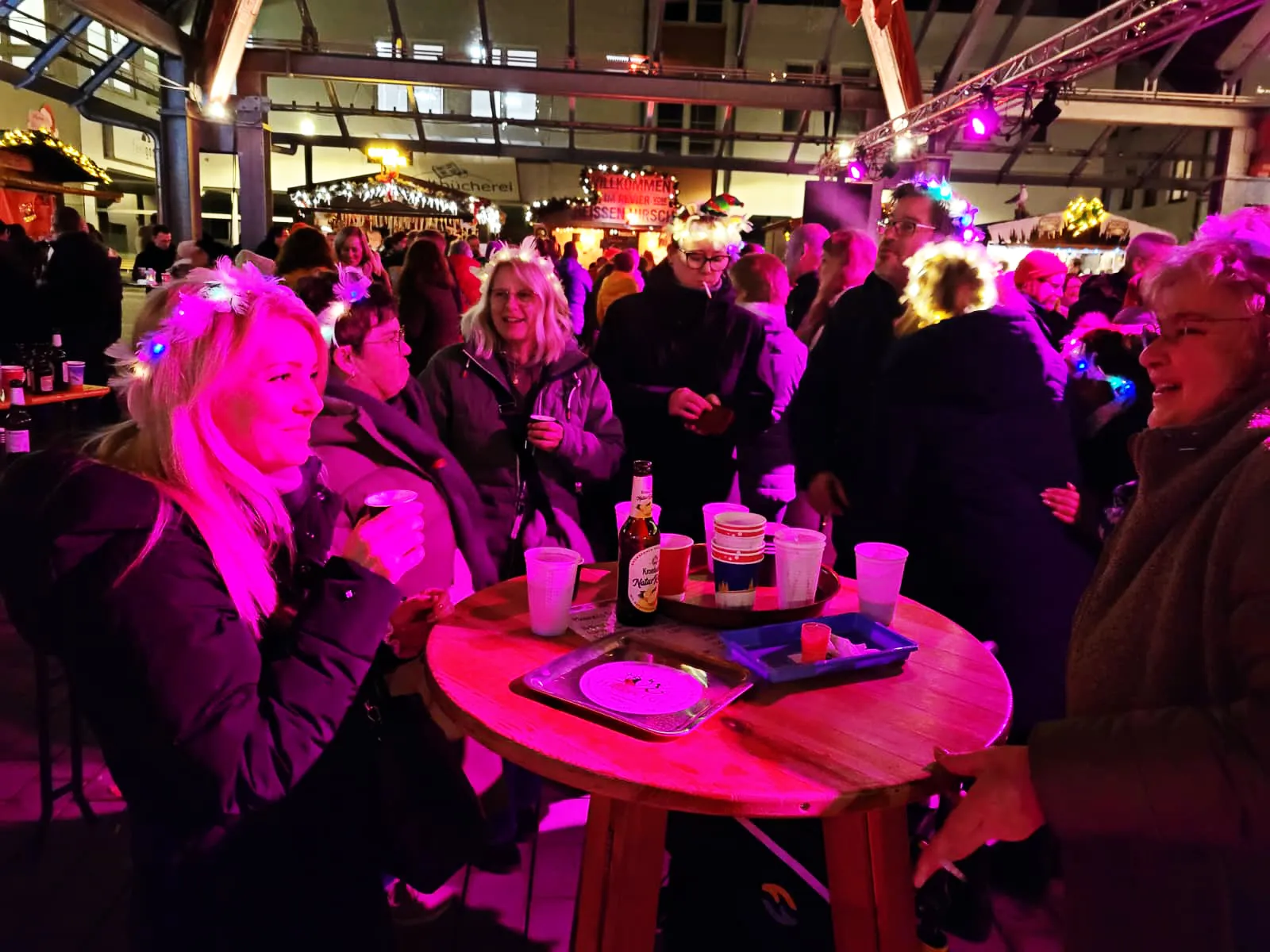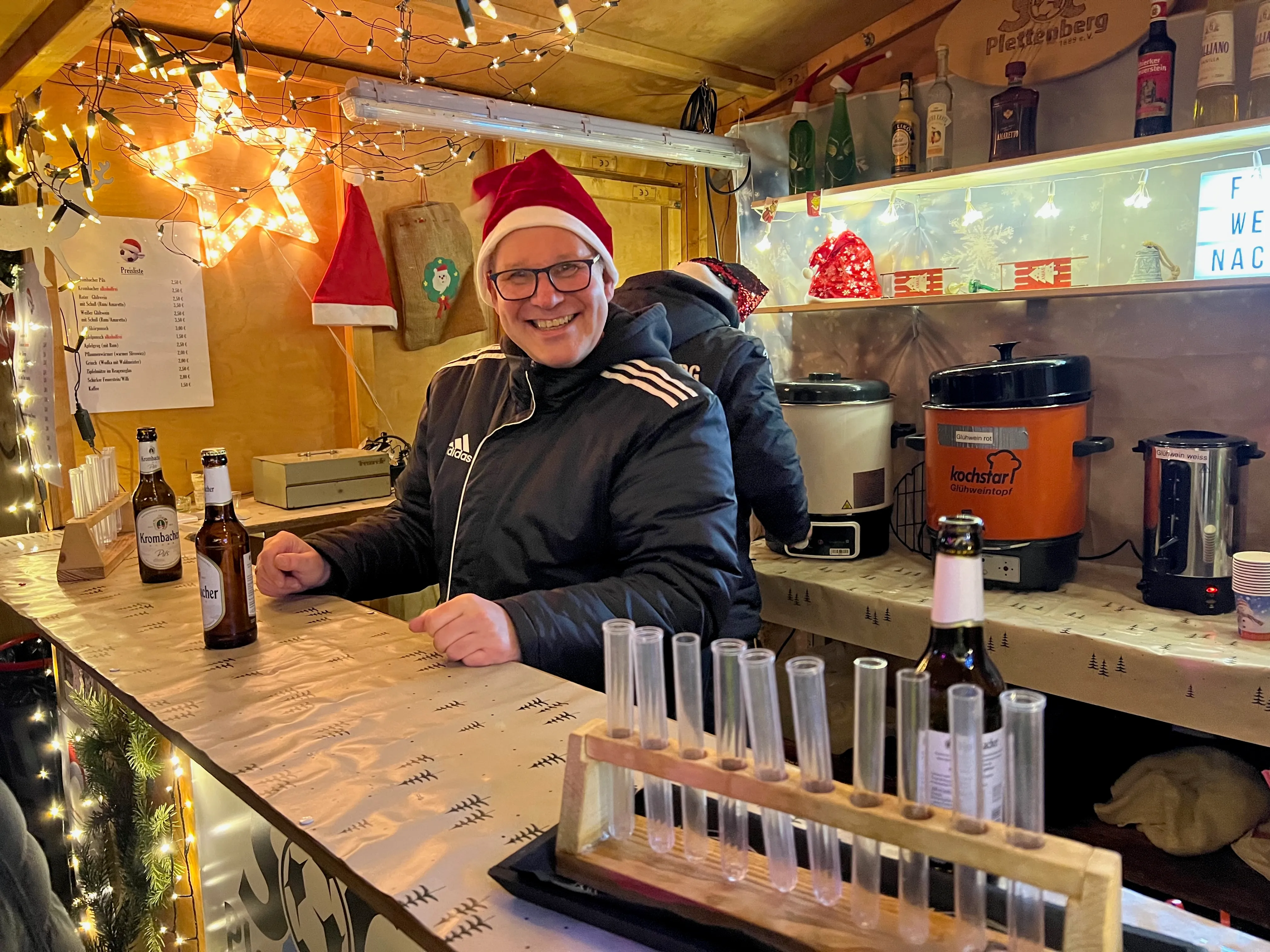 Nach einigen organisatorischen Problemen im Vorfeld konnte der Hüttenzauber planmäßig starten. Die Vereinigte Sparkasse im Märkischen Kreis hatte auf die Anforderung eines geeigneten Fluchtwegs flexibel reagiert und ihre Sterntaler-Klause wieder abgebaut. Es sind also nur noch 15 Hütten, in denen Vereine, Gruppen und heimische Geschäftsleute vor allem flüssige Spezialitäten anbieten.