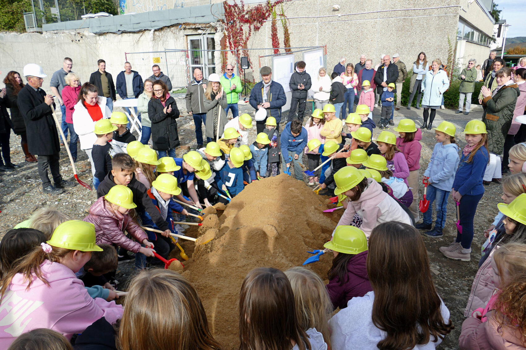 18. Oktober: Kinder geben Startsignal für Neubau der Grundschule Holthausen. „Wir bauen hier das modernste Schulgebäude in der Stadt, vielleicht sogar in der Region“, erklärte Bürgermeister Ulrich Schulte anlässlich des ersten Spatenstichs, dem offiziellen Startsignal für den Neubau der Grundschule Holthausen.