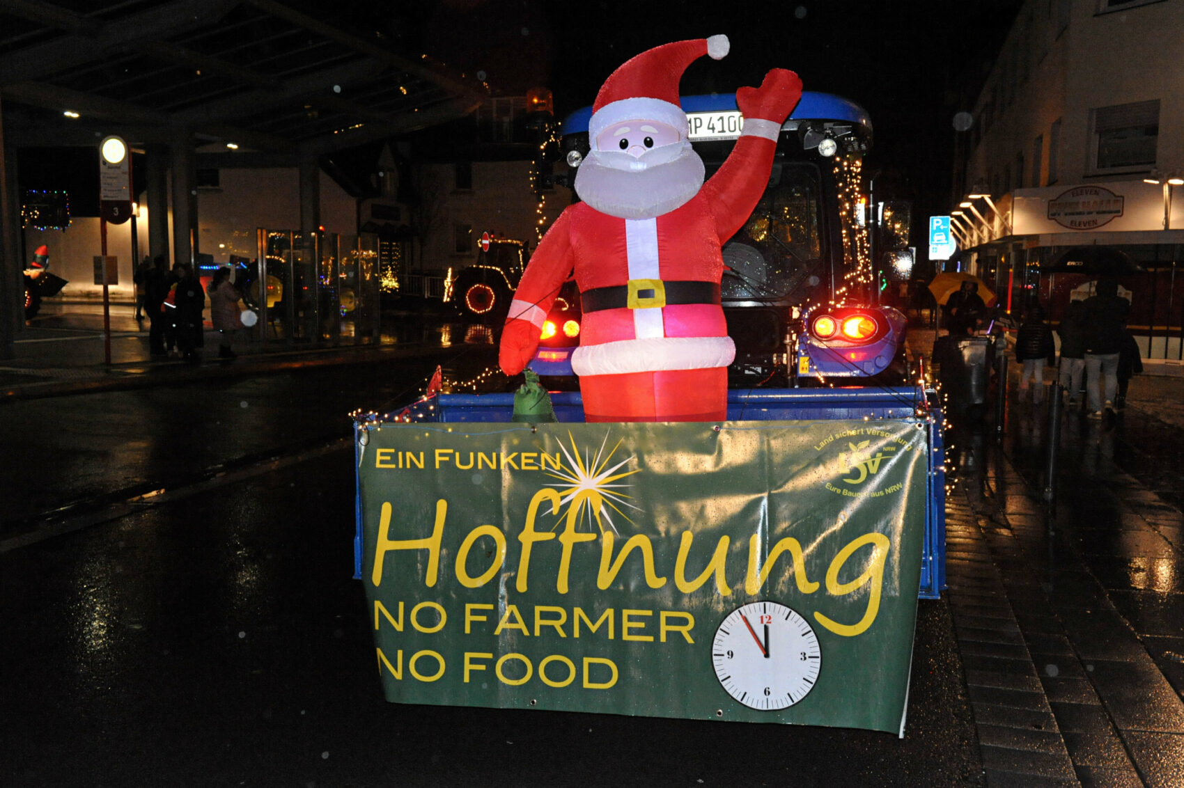 9. Dezember: Die Lichterfahrt der heimischen Landwirte sorgte erneut für viel Freude bei den Menschen, die trotz des sehr ungemütlichen Regenwetters die Straßen säumten. Die Fahrt sei als Appell an die Bürger zu verstehen, dass beim Kauf eben nicht nur auf den Preis, sondern auch auf die Herkunft der Produkte geachtet werden sollte, betonte Organisator Björn Kirchhoff.
