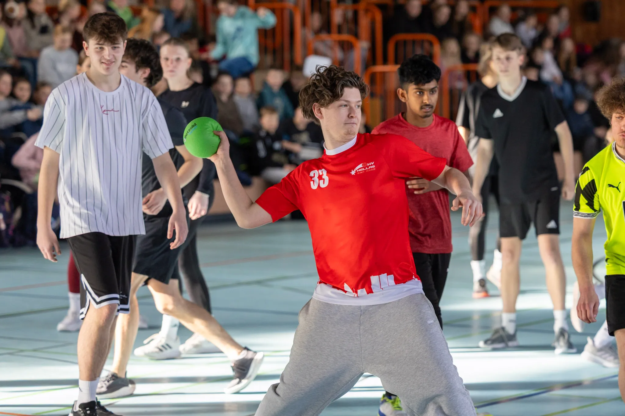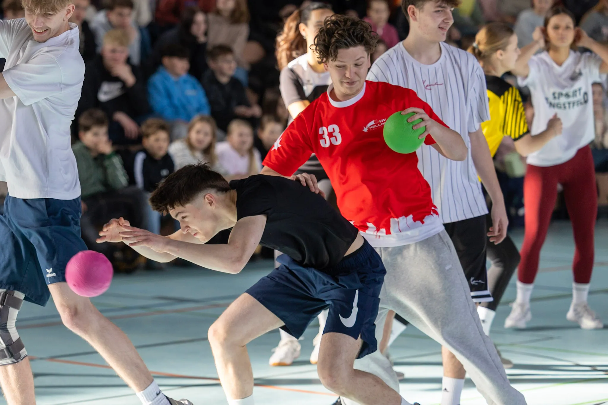 In der Turnhalle der ehemaligen Ganztagsschule, stand am Donnerstag, 5. Februar, etwas ganz Besonderes auf dem Stundenplan. Wie jedes Jahr, traf sich die gesamte Gemeinschaft des Anne-Frank-Gymnasiums, um das Kräftemessen zwischen den ältesten Schülern und ihren Lehrern zu bestaunen. Nach drei spannenden runden Völkerball, konnten sich wieder einmal die Schüler gegen ihre Lehrer durchsetzen.
