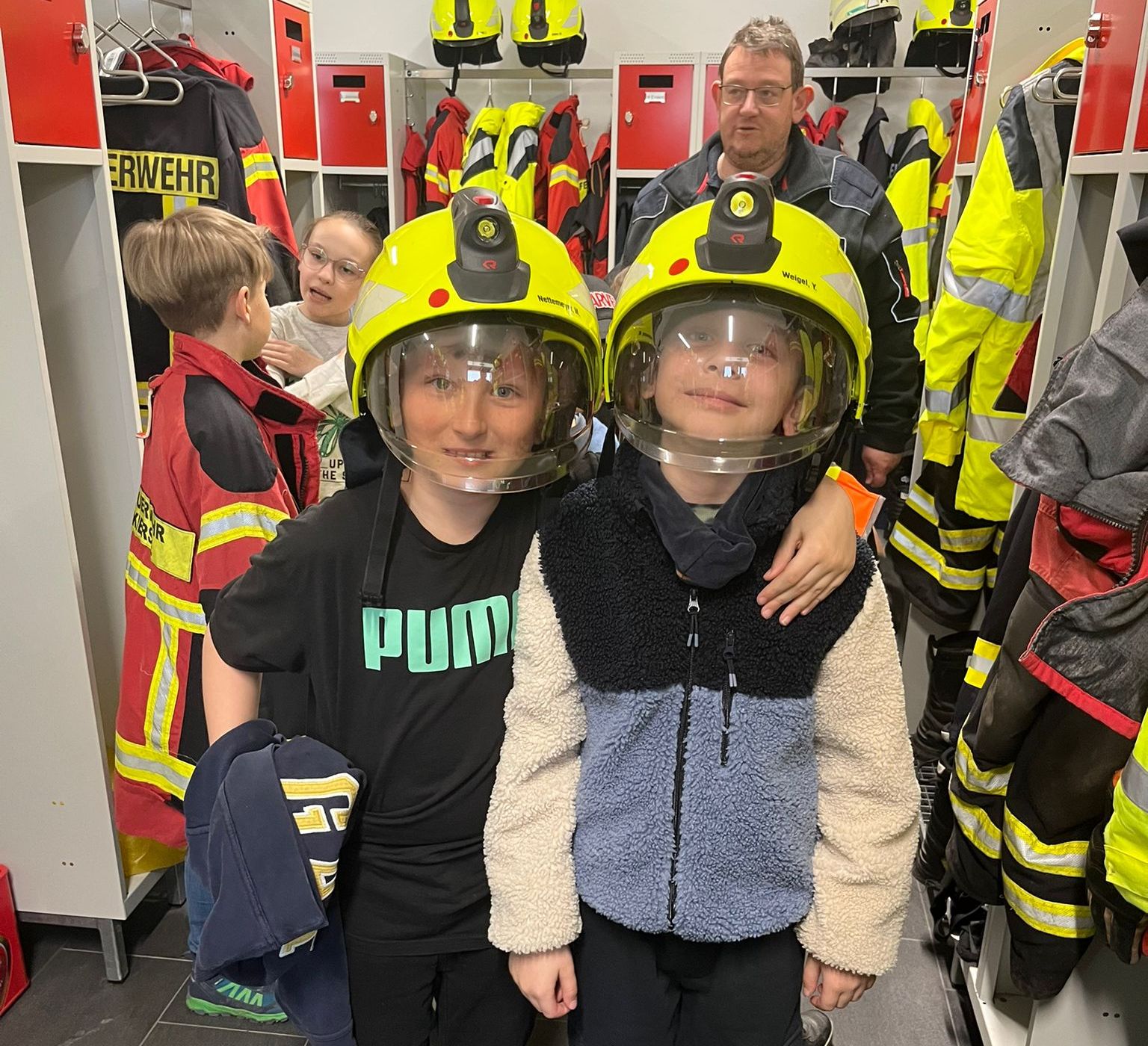 "Bei einem Rundgang wurden die Räumlichkeiten besichtigt und alles erklärt", macht Feuerwehr-Pressesprecher Christian Schwanke deutlich. Die Kinder konnten ein Löschfahrzeug "auf links drehen" und die Ausrüstungsgegenstände nicht nur anschauen, sondern auch praktisch ausprobieren. Schnell merkten sie, wie schwer zum Beispiel der hydraulische Spreizer ist, mit dem Feuerwehrleute Unfallopfer aus einem Wrack befreien. Zudem durften die Kinder Schutzkleidung wie Jacke und Helm anprobieren und in dem Löschfahrzeug Probesitzen.