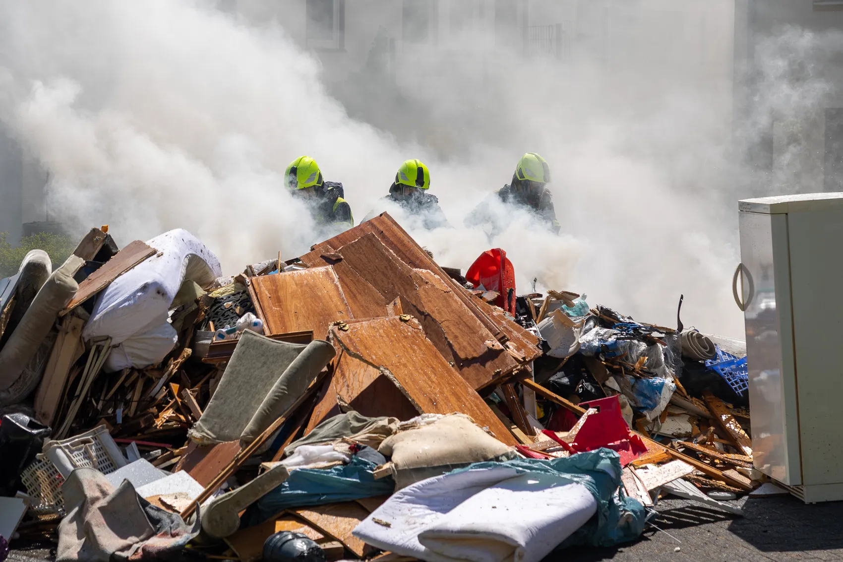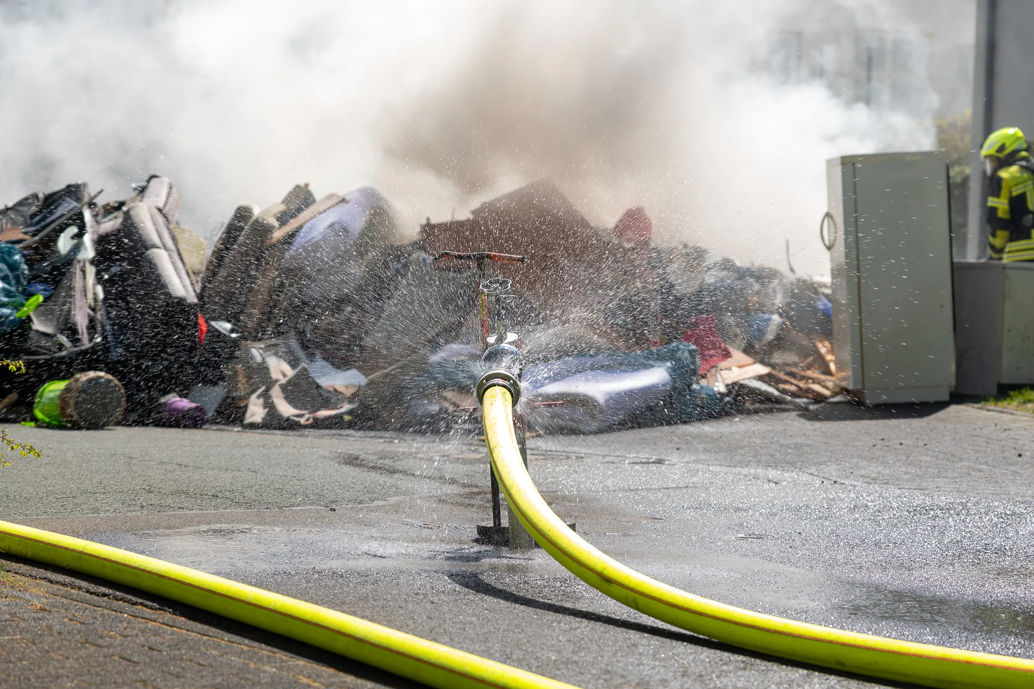 Ein Mitarbeiter des Entsorgungsunternehmens bemerkte beim Einladen eine Rauchentwicklung, berichtet Lukas Borowski von der Polizei des Märkischen Kreises weiter. Vermutlich sei der Rauch durch ein Elektrogerät verursacht worden. Ein offenes Feuer habe es offenbar nicht gegeben.