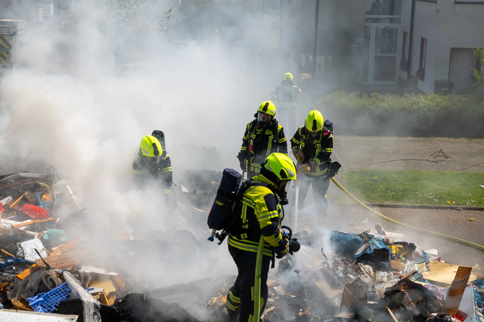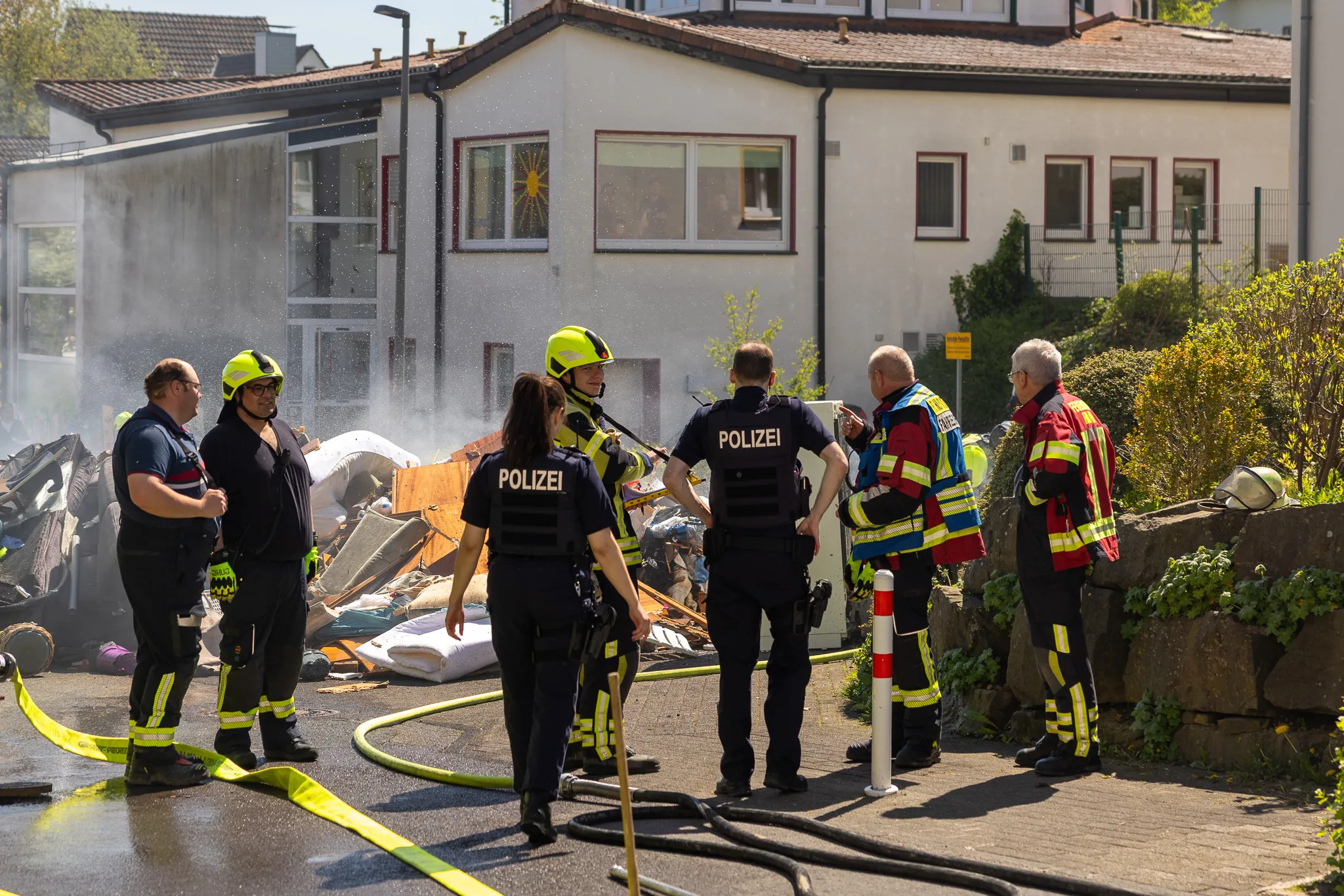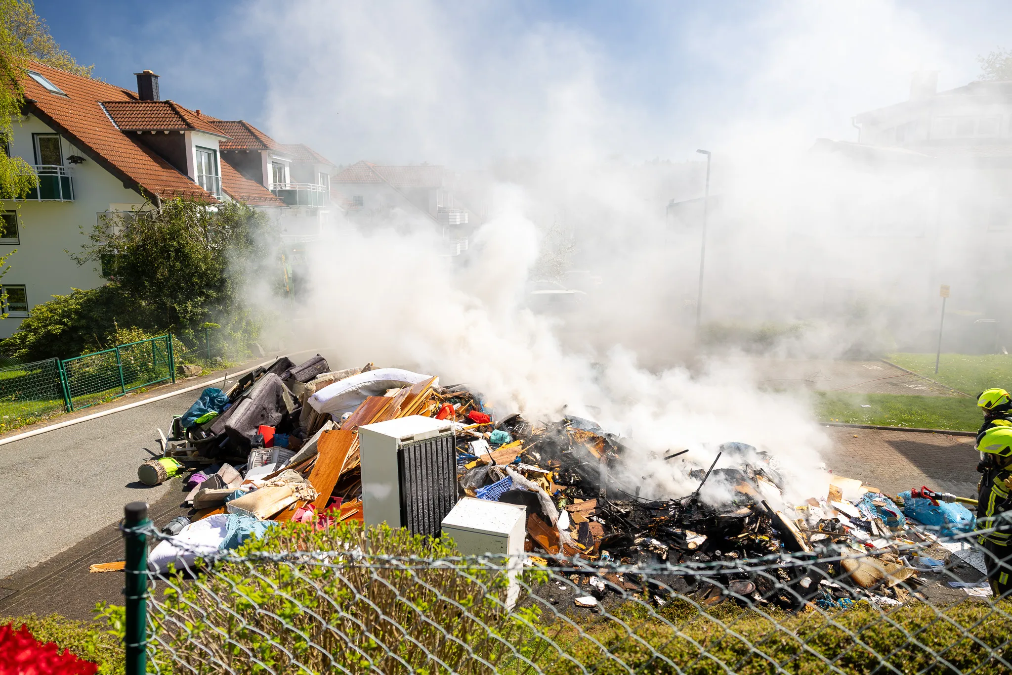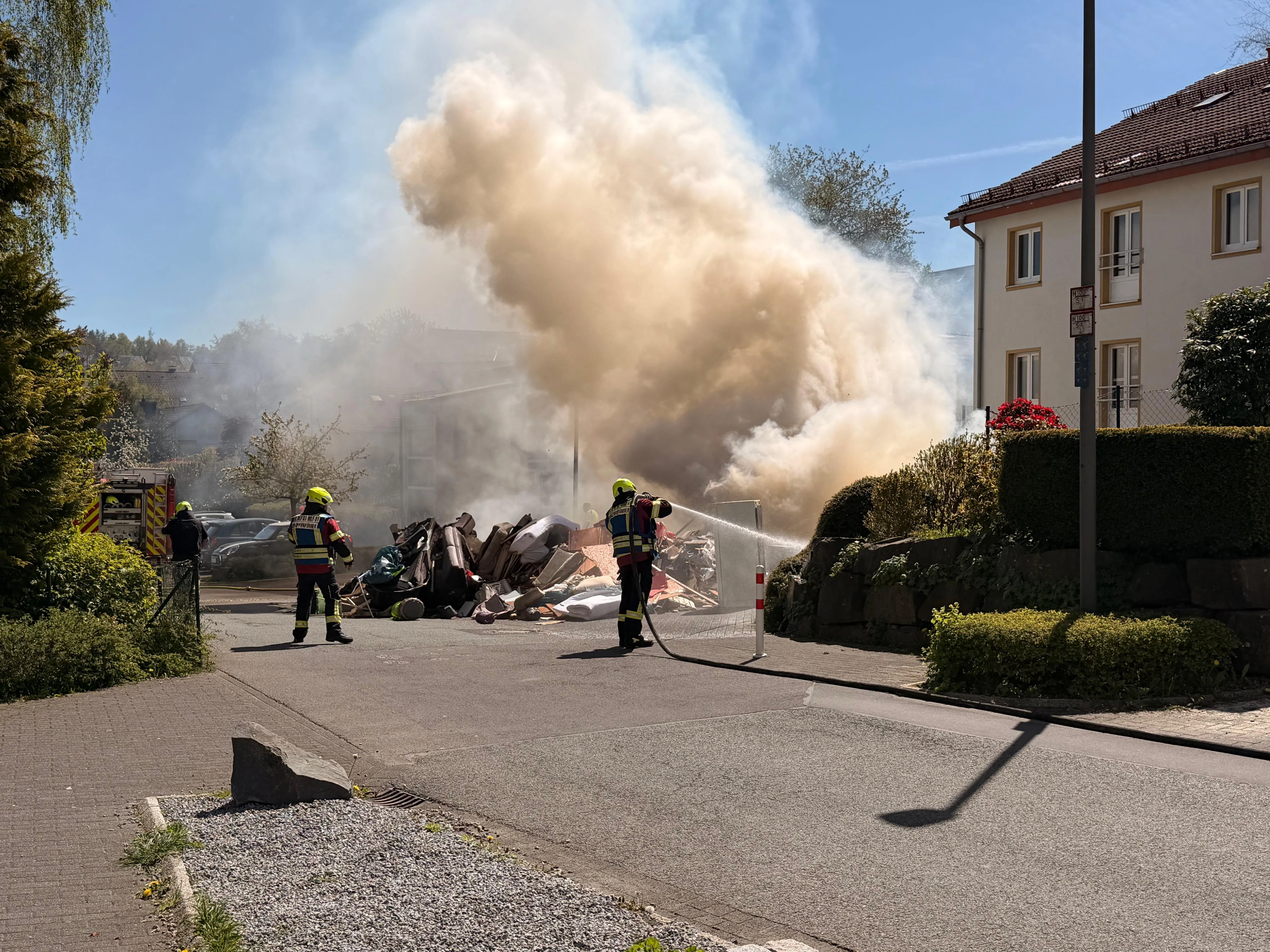 Die Straße wird voraussichtlich noch für einige Zeit gesperrt bleiben, erklärt der Pressesprecher der Feuerwehr, Jörn Maximowitz, auf Nachfrage von LokalDirekt. Im weiteren Verlauf wird ein Radlader des Bauhofs den verbrannten Müll aufnehmen und auf einen Lkw verladen. „Das dauert hier noch ein bisschen", so Maximowitz.