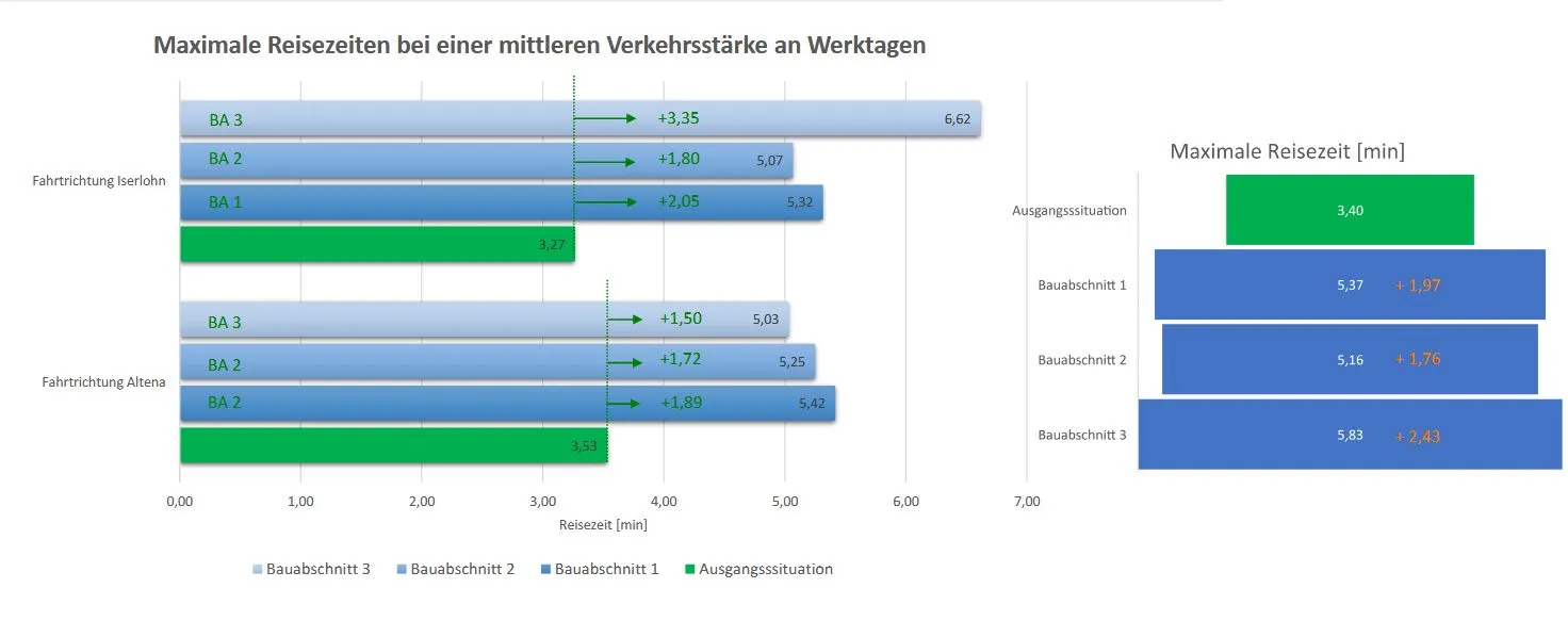 Die Verkehrsanalyse einer Studentin prognostiziert eine durchschnittliche Reisezeiten von etwas mehr als drei Minuten Richtung Iserlohn und knapp vier Minuten Richtung Altena. Während des Baus könnten diese Werte auf maximal rund sechseinhalb Minuten ansteigen – Zahlen, die im Sitzungssaal eher Fassungslosigkeit als Vertrauen auslösten.
