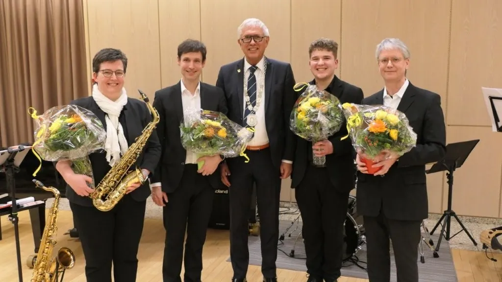Den Auftakt und die weitere musikalische Begleitung des Abends lag in den Händen der Jazzcombo der Musikschule Lennetal. Die Mitglieder der Combo, Sandra Fricke (Alt- und Tenorsaxophon), Björn Heimann (Klavier), Sebastian Hoffmann (Kontrabass) und einer ihrer Schüler, Benedikt Wilmes (Schlagzeug), überzeugten mit ihren dargebotenen Musikstücken.