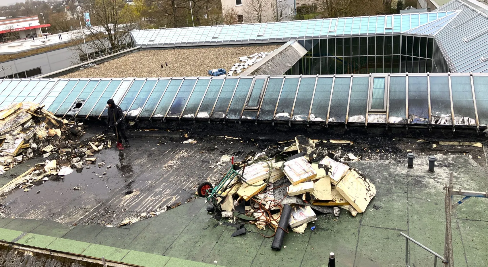 Nach dem Brand bei Dacharbeiten am Berufskolleg für Technik am 31. März in Lüdenscheid laufen die Reinigungsarbeiten auf Hochtouren. Zum Schulbeginn am kommenden Montag, 13. April, werden die Schüler jedoch noch nicht alle Räume wieder nutzen können.