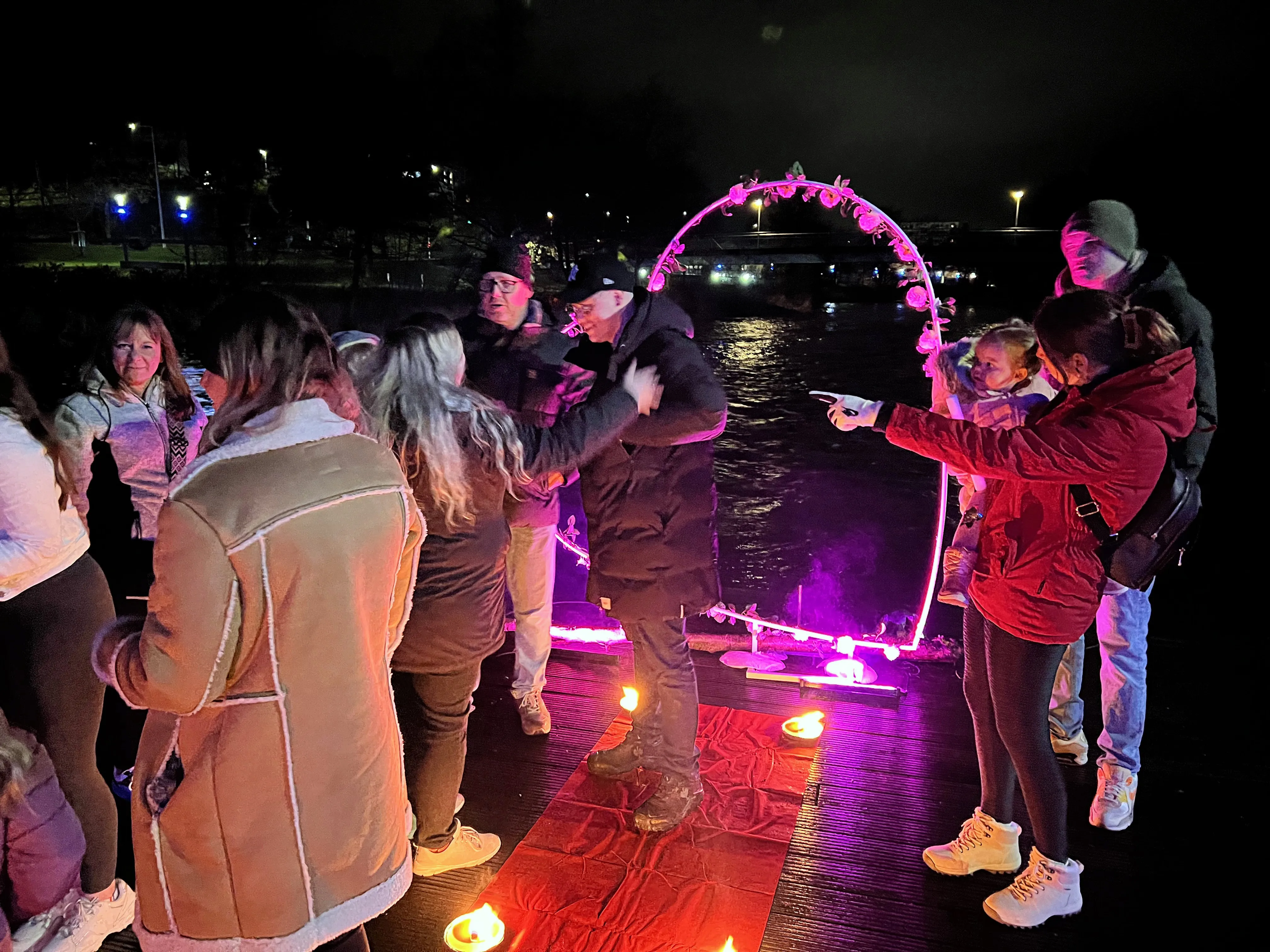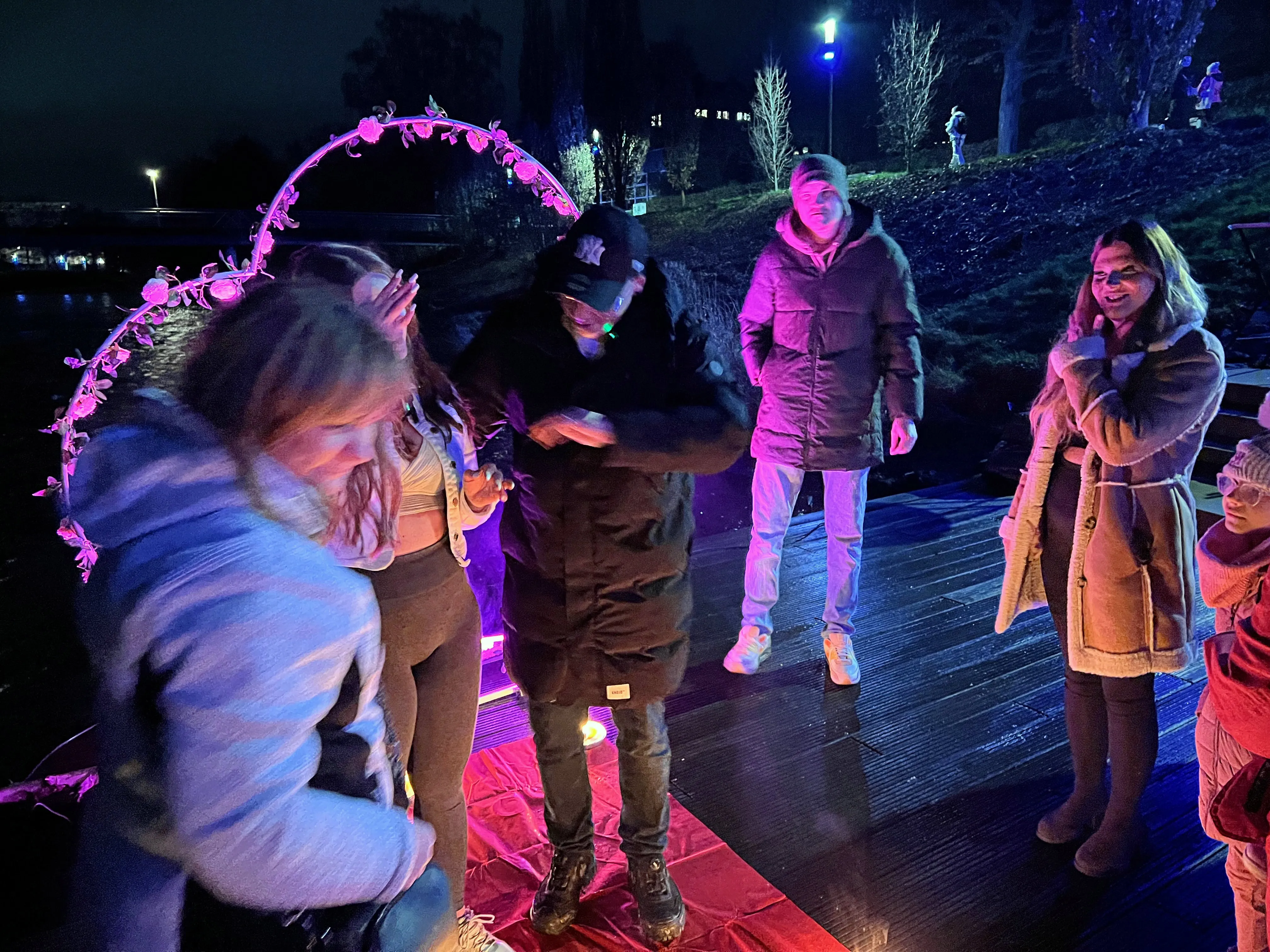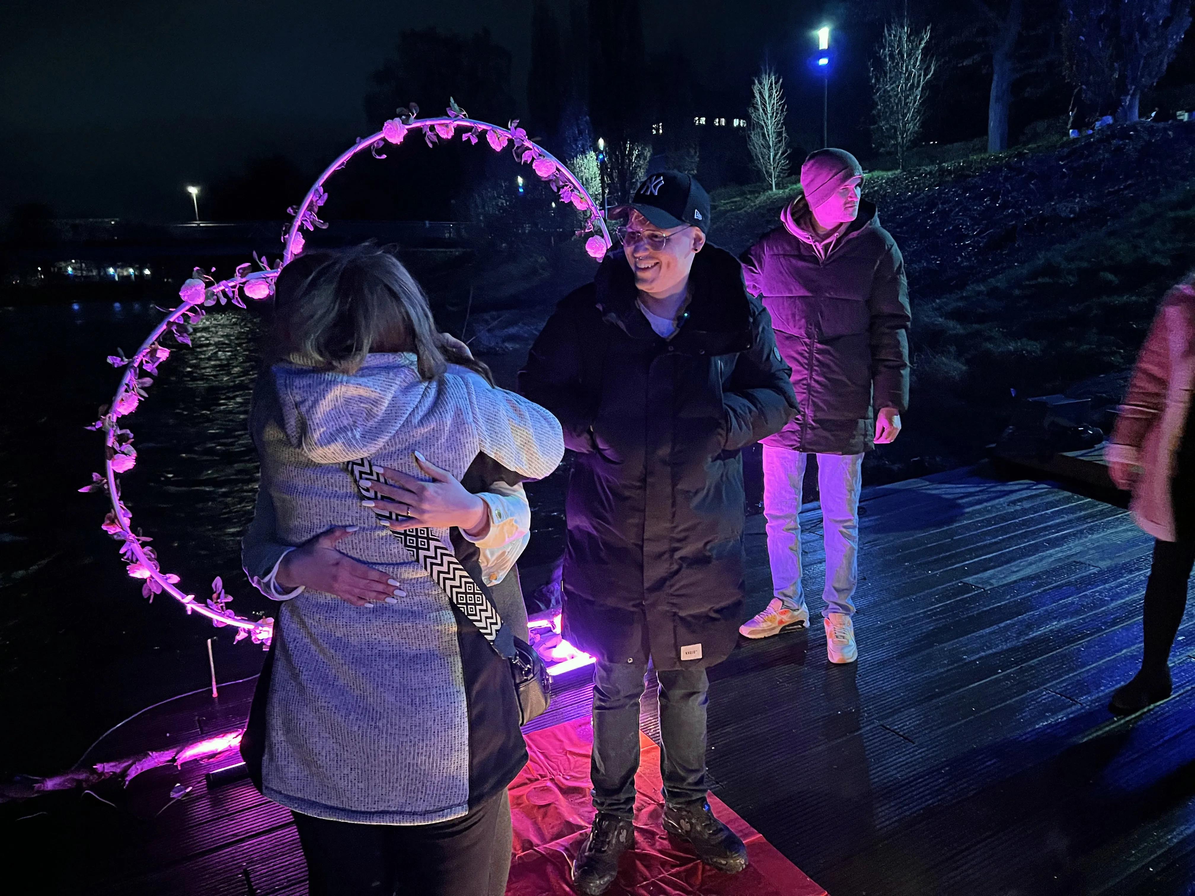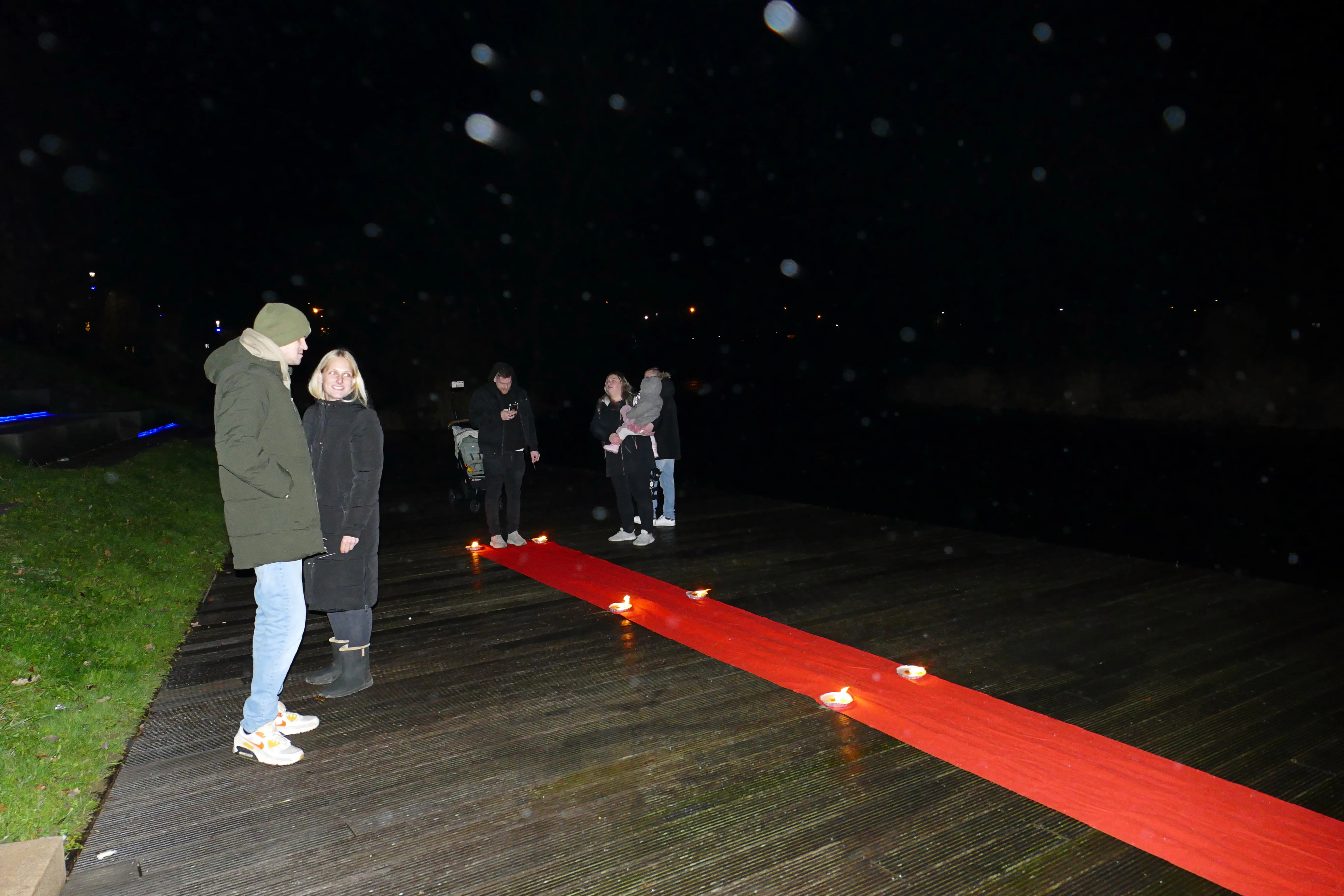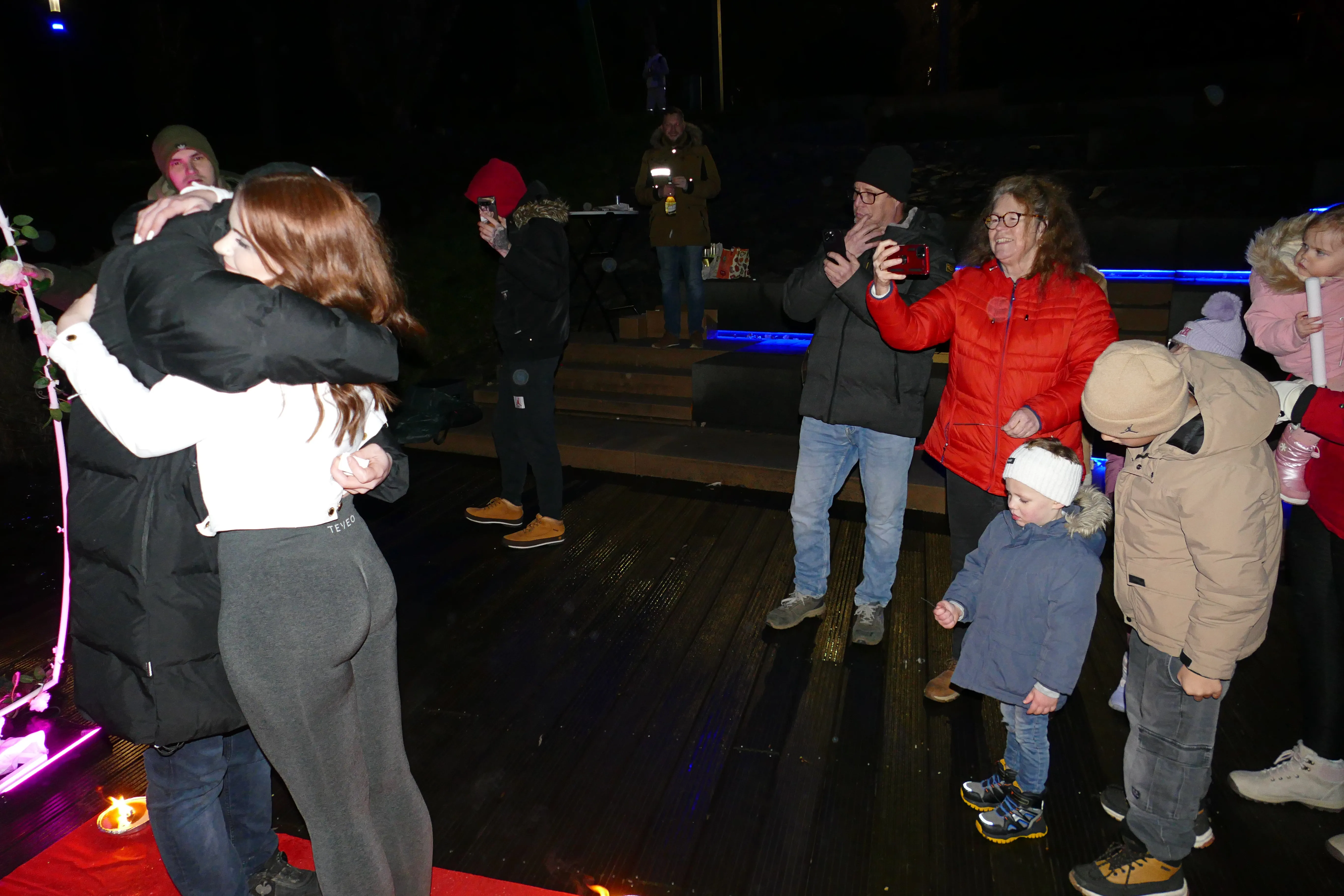 Romantische Musik, roter Teppich, Wunderkerzen und ein illuminiertes Herz – Jonathan Schweitzer hatte am Freitag, 28. November, für ein besonderes Ambiente an der Lenne-Waterkant gesorgt. Das hatte einen guten Grund: Der 29-Jährige machte seiner Freundin Vanessa Wenger den Heiratsantrag.