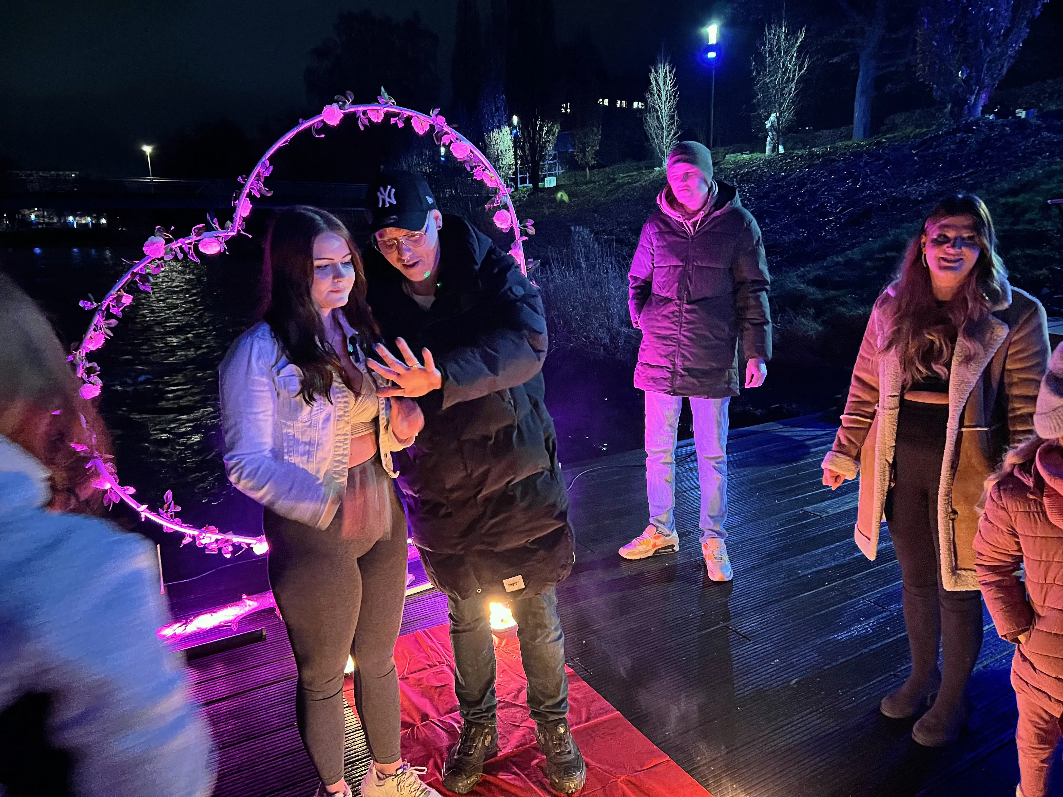 Es war eine komplette Überraschung für Vanessa. Sie hatte am dritten Jahrestag ihrer Beziehung mit Jonathan mit einem gemütlichen Abendessen im Restaurant gerechnet. Doch dann rief ihr Freund an, er habe eine Autopanne und sie müsse zum Einkaufszentrum an der Bredde kommen. „Sie ist jetzt gerade stocksauer“, berichtete Jonathan den mit ihm an der Waterkant harrenden Verwandten und Freunden.
